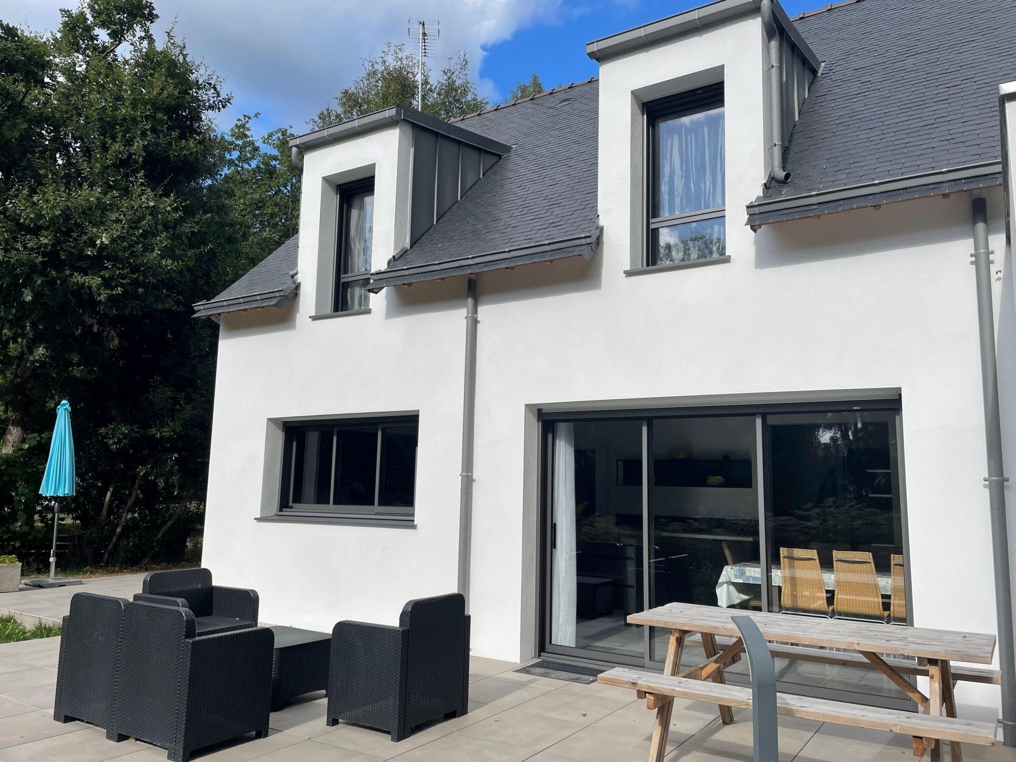 5-room house 170 m2 on 2 levels. Spacious, beautiful furnishings: large living/dining room with TV (flat screen). Exit to the garden, to the terrace. 1 room with 1 french bed (1 x 160 cm, length 200 cm), hand-basin and shower. Exit to the garden. Open kitchen (oven, dishwasher, 3 induction hot plates, toaster, kettle, microwave, freezer, electric coffee machine, Capsules for coffee machine (Nespresso) extra) with dining nook. Exit to the terrace. Sep. WC. Upper floor: 1 room with 1 french bed (1 x 160 cm, length 200 cm). 2 rooms, each room with 2 beds (80 cm, length 200 cm). Bathroom, shower, sep. WC. Electric heating. Terrace 40 m2. Terrace furniture, barbecue, deck chairs (4). View of the garden. Facilities: washing machine, dryer, baby cot, hair dryer. Internet (WiFi, free). Parking, garage (2 cars). Please note: non-smoking house. Maximum 1 pet/ dog allowed. Smoke alarm. Garage for boat shelter available, central vacuum, quality service. Garden in progress. Offer by a private individual according to Art. 155, IV of CGI. 56258000160LT