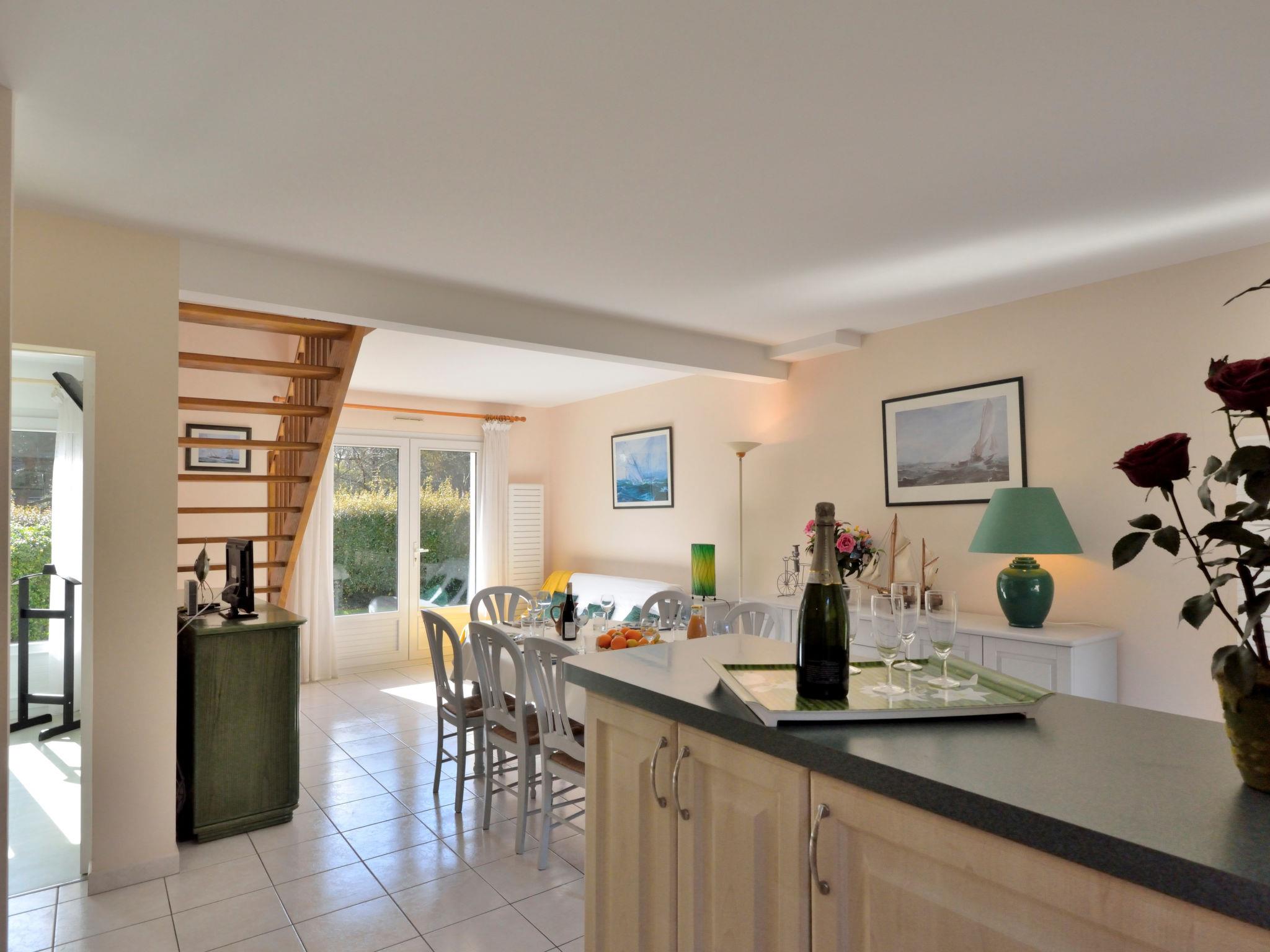 Single-family house "Les Chênes Verts". 2 km from the centre of La Turballe, 8.4 km from the centre of Guérande, in the residential district, 600 m from the sea. Private: garden 1'000 m2 (fenced) with lawn and trees, parking on the premises. Supermarket 800 m, restaurant 2 km, bus stop 2 km, sandy beach 600 m, indoor swimming pool 5 km. Sailing school 2.5 km. Nearby attractions: Port de pêche 2 km, Marais Salants 4 km, Parc naturel régional de Brière 8 km, Nantes 90 km.