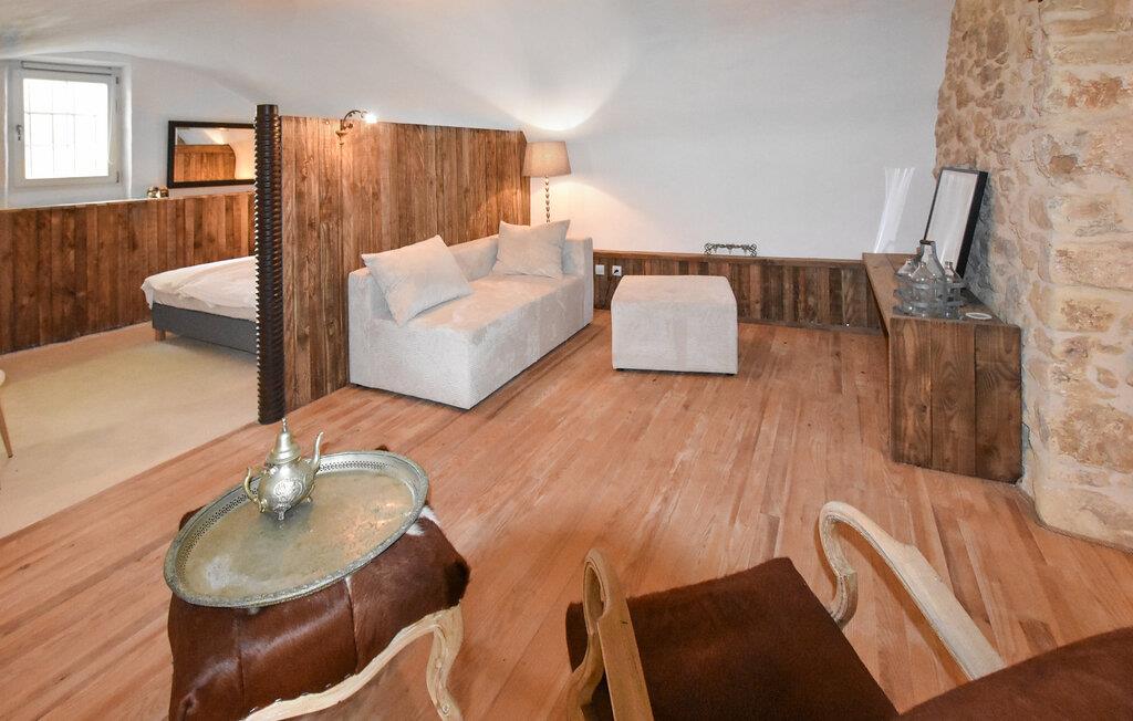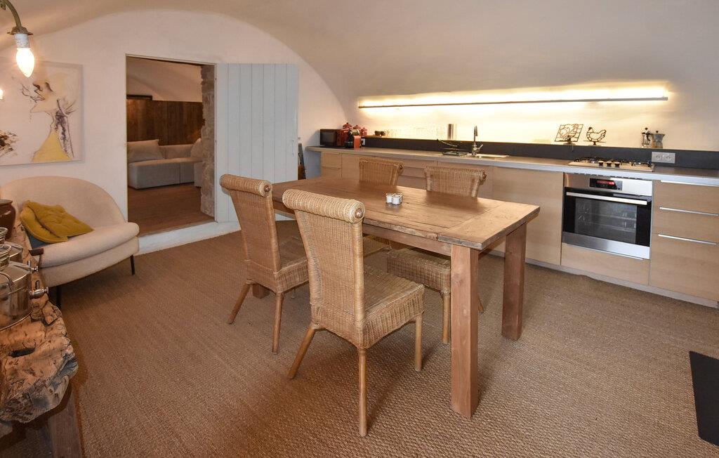 Oplev en afslappende ferie i dette smagfuldt renoverede landsted. Omgivet af natur og gamle stenmure vil I tilbringe jeres tid i charmerende og rolige omgivelser. Husets interiør er flot indrettet og kombinerer moderne bekvemmeligheder med historiske elementer. Det smukke køkken giver mulighed for at tilberede måltider sammen, og den tilstødende spisestue lægger op til hyggestunder. I opholdsstuen skaber varme farver og naturskønne materialer en hyggelig atmosfære. Nyd de rummelige værelser og træk jer tilbage til et af de komfortable siddeområder.