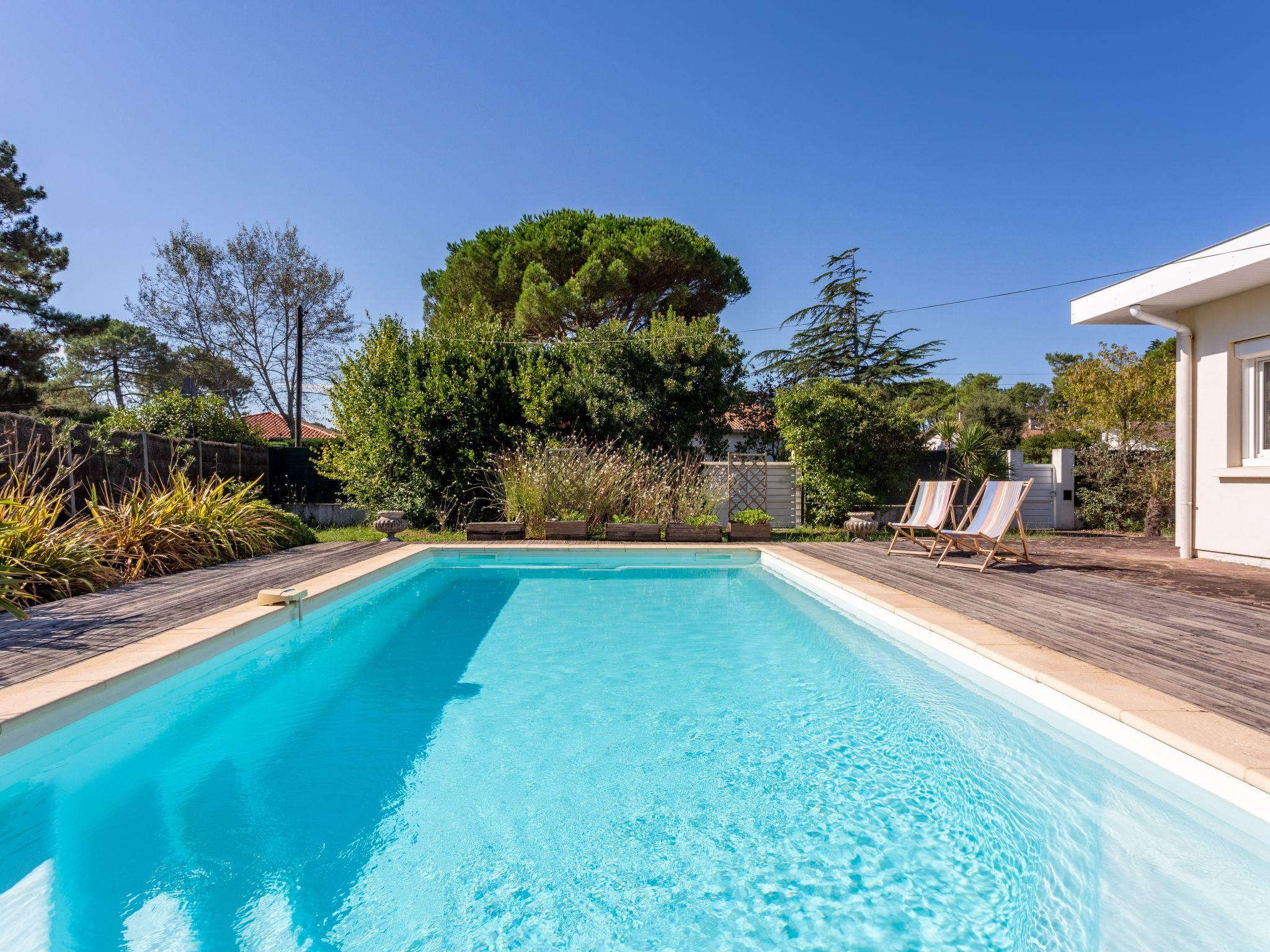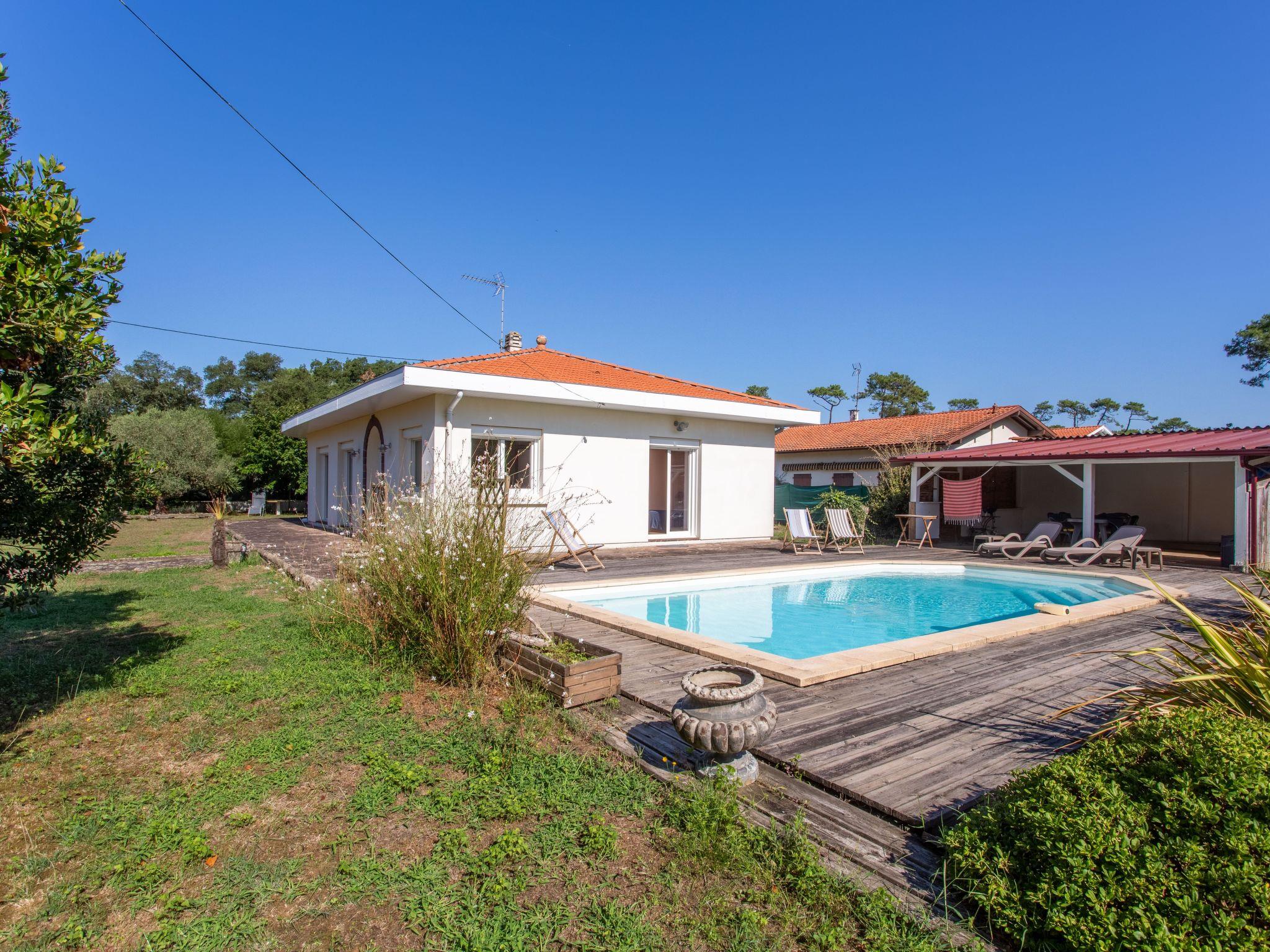 Labenne Océan 10 km from Hossegor: Single-family house "Ile de France". 500 m from the centre of Labenne, in a quiet position, 600 m from the sea. Private: property 1'000 m2 (fenced), swimming pool angular (4 x 8 m, depth 150 - 150 cm, seasonal availability: 15.Jun.). Shop, grocery, restaurant, bakery, café 500 m, bus stop 3 km. Nearby attractions: Aquatic Landes 1.2 km, zoo 2.2 km. Please note: suitable for families. Groups of teenagers on request only.
