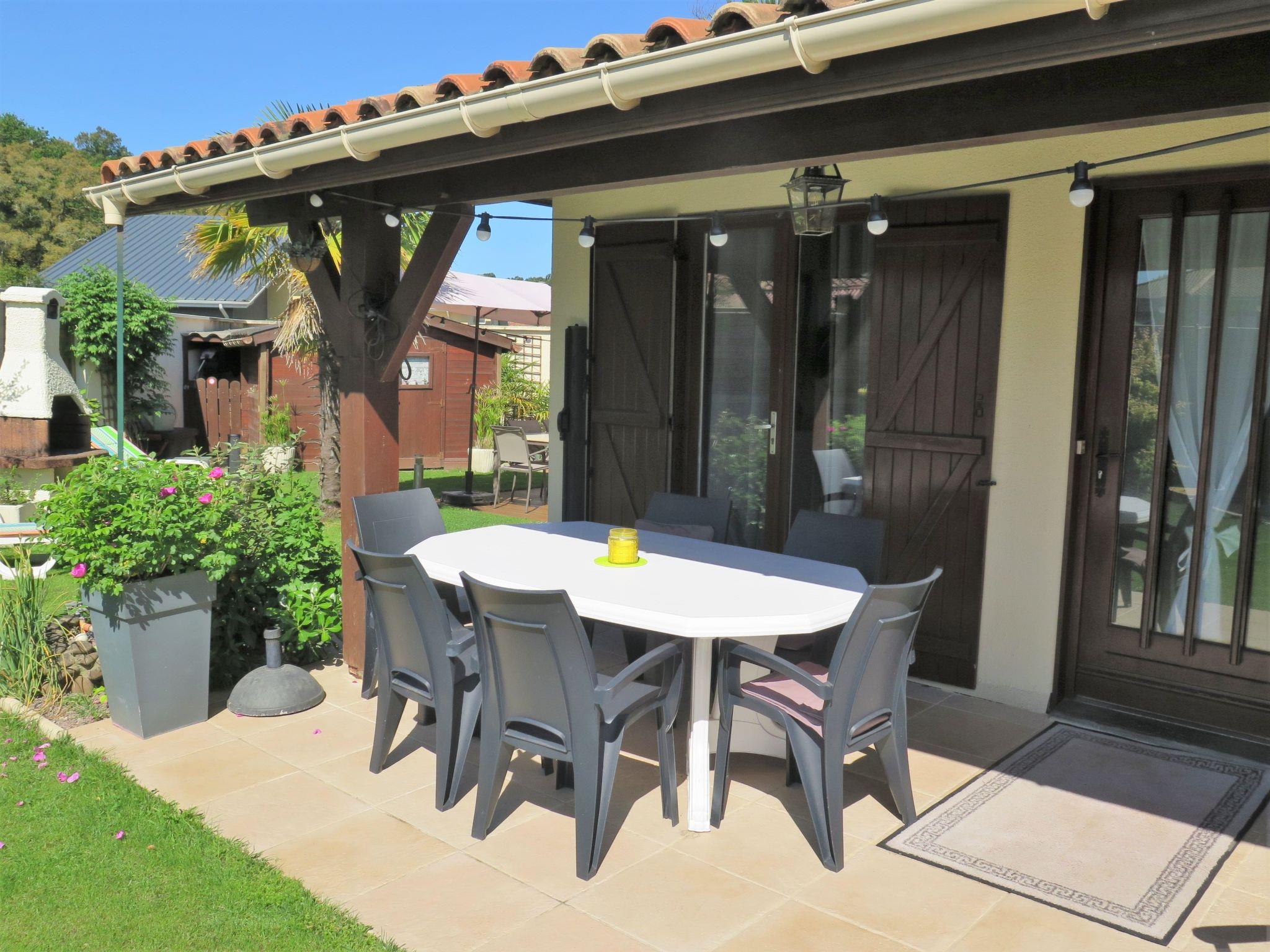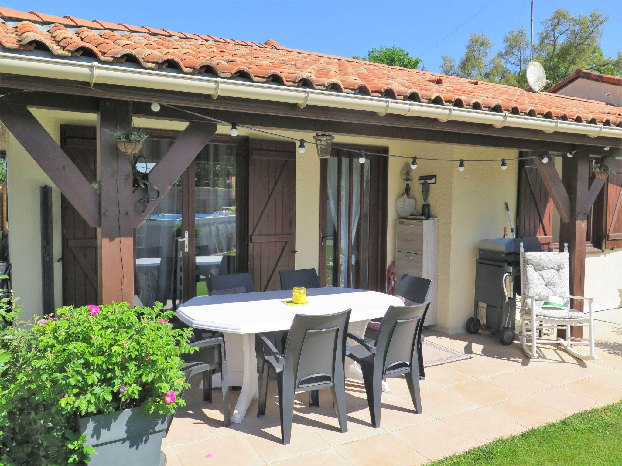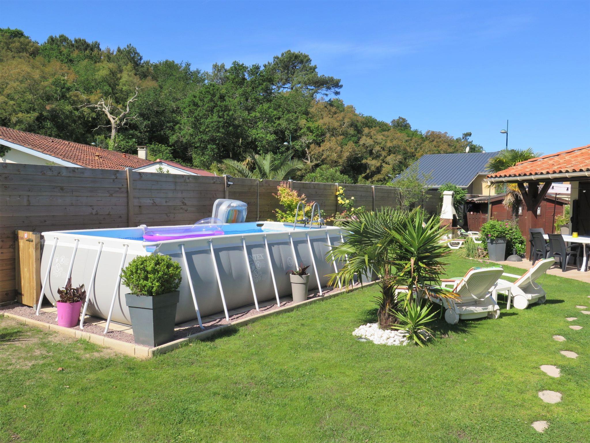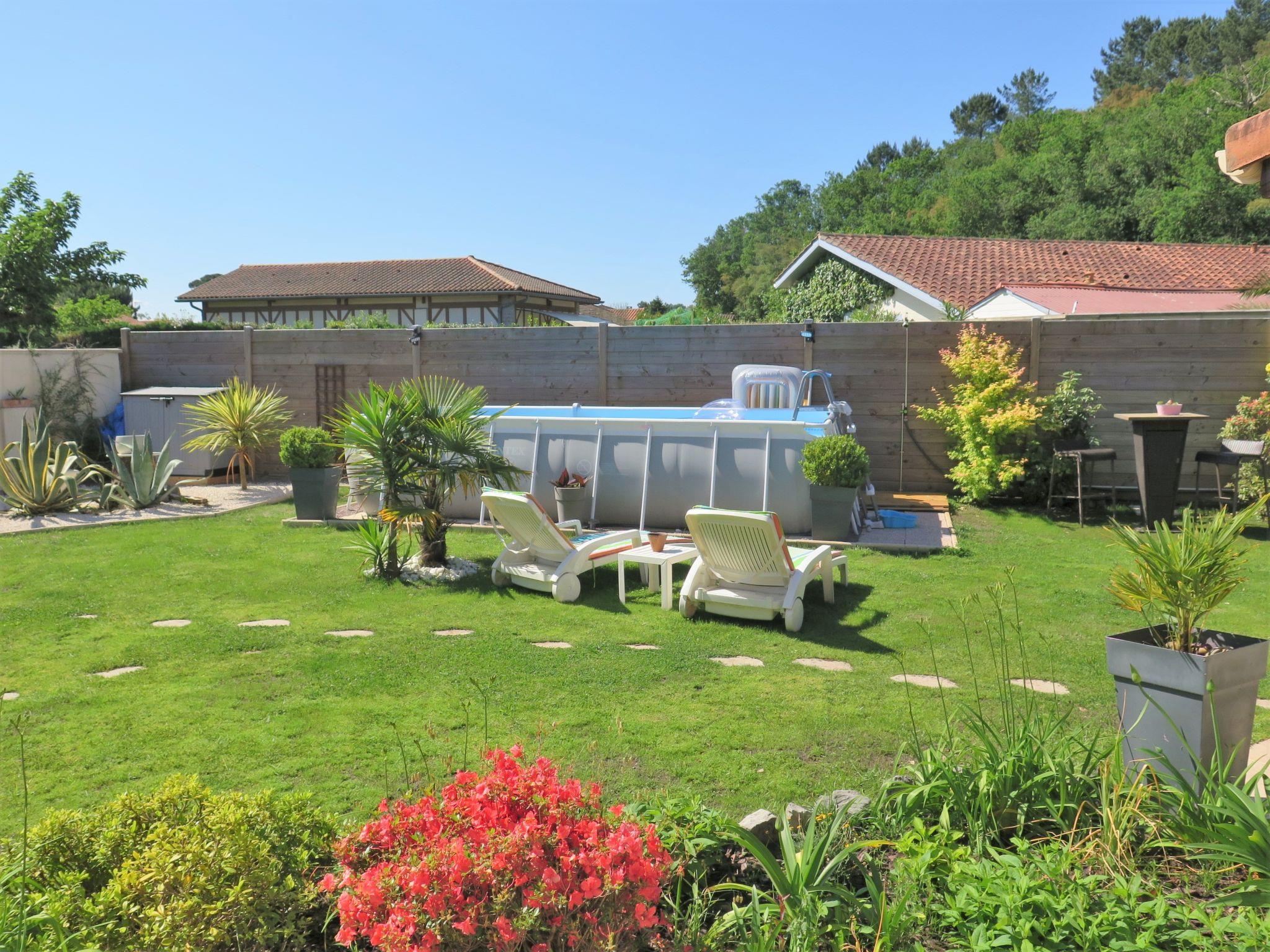 Single-family house "Les Camélias". 800 m from the centre of Labenne, 11 km from the centre of Hossegor, 19 km from the centre of Biarritz, in the residential district, 4 km from the sea, 10 km from the lake. Private: property 400 m2 (fenced), well-kept garden with lawn and wildlife garden, swimming pool (above ground) angular (5 x 2 m, depth 107 cm, seasonal availability: 11.May. - 21.Sep.). Parking (for 2 cars) at the house on the premises. Supermarket, restaurant 800 m, bus stop "Labenne-Charles de Gaulle" 750 m, sandy beach "Labenne" 4 km, bathing lake "Hossegor" 10 km. Golf course (18 hole) 8 km, tennis 4 km, riding stable 4 km. Please note: the owner lives on the same property.