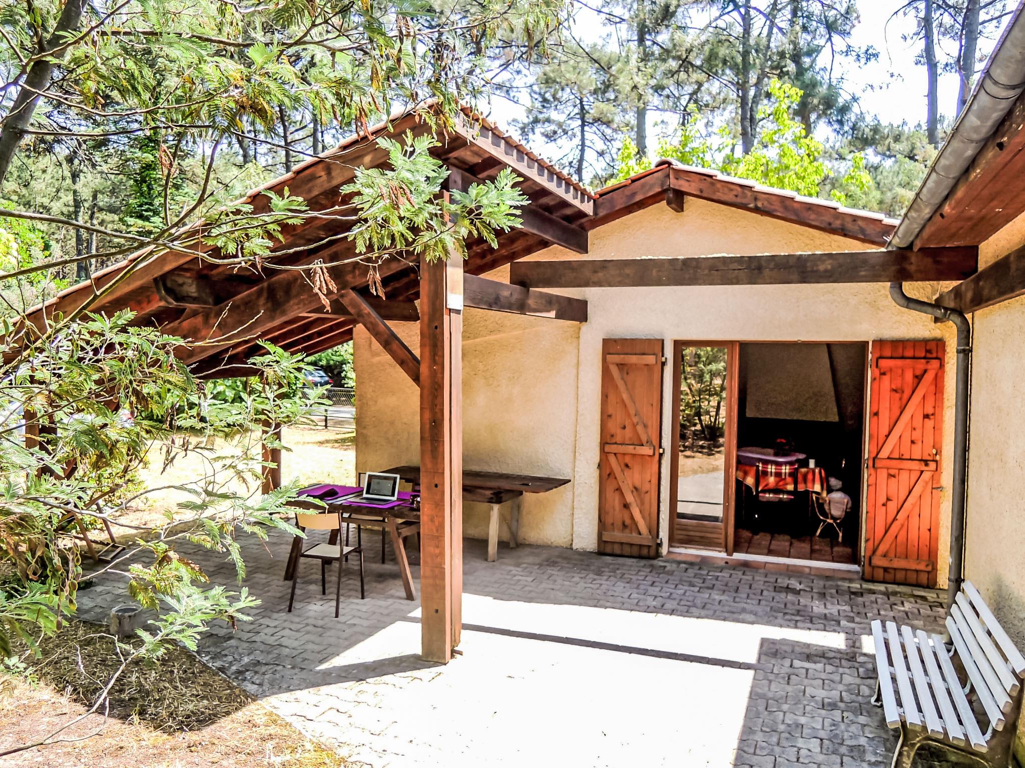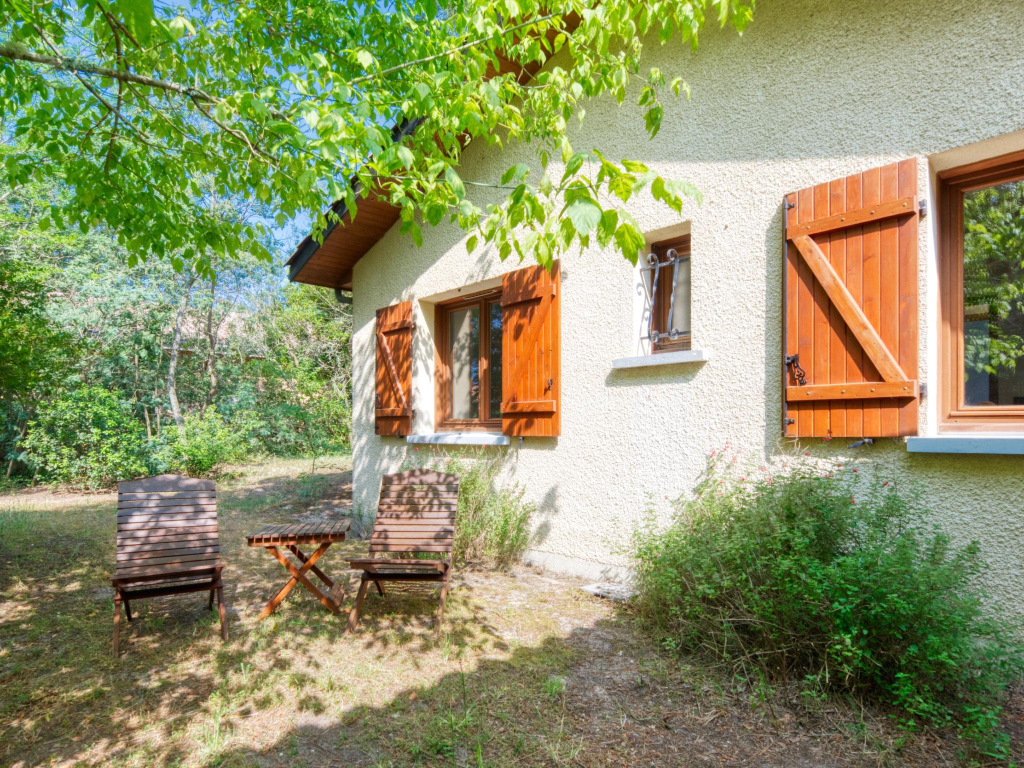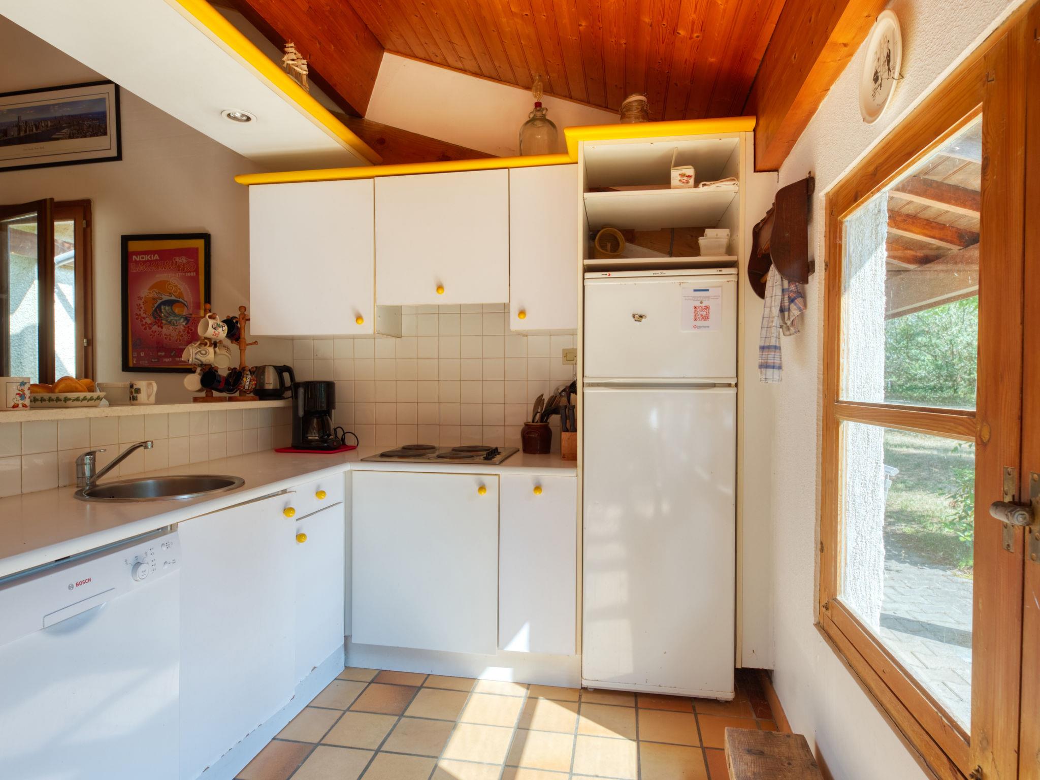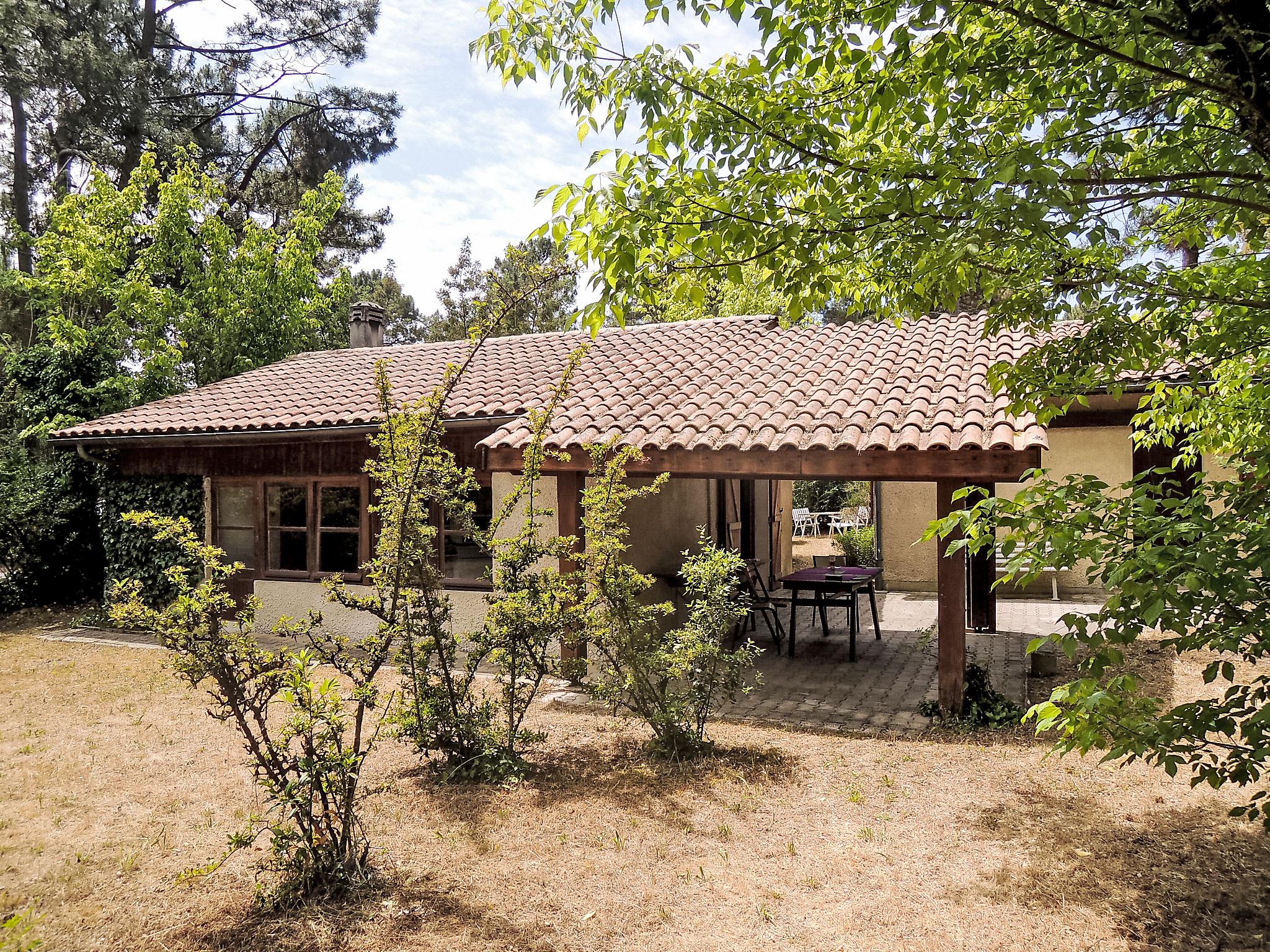 La Grande Escoure 6 km from Lacanau-Océan: Single-family house "Club de la Voile". In a quiet position, 6 km from the sea, 50 m from the lake. Private: natural state property 900 m2 (fenced), parking on the premises. Supermarket 7 km, restaurant 3 km, bus stop "La grande Escoure" 300 m, sandy beach "Lacanau Océan" 9 km, bathing lake "Lac de Lacanau" 100 m. Golf course (18 hole) 4 km, surf school 8 km, tennis 4 km. Nearby attractions: Dune du Pilat 90 m, Bordeaux 60 m, Saint Emilion 98 m, Cap Ferret 48 m. Well-known lakes can easily be reached: Moutchic 100 m, Maubuisson 13 km. Hiking paths: Vélodyssée 5 km. Please note: car recommended. The keys‘ handover takes place by the agency Interhome in Lacanau, 8 km.