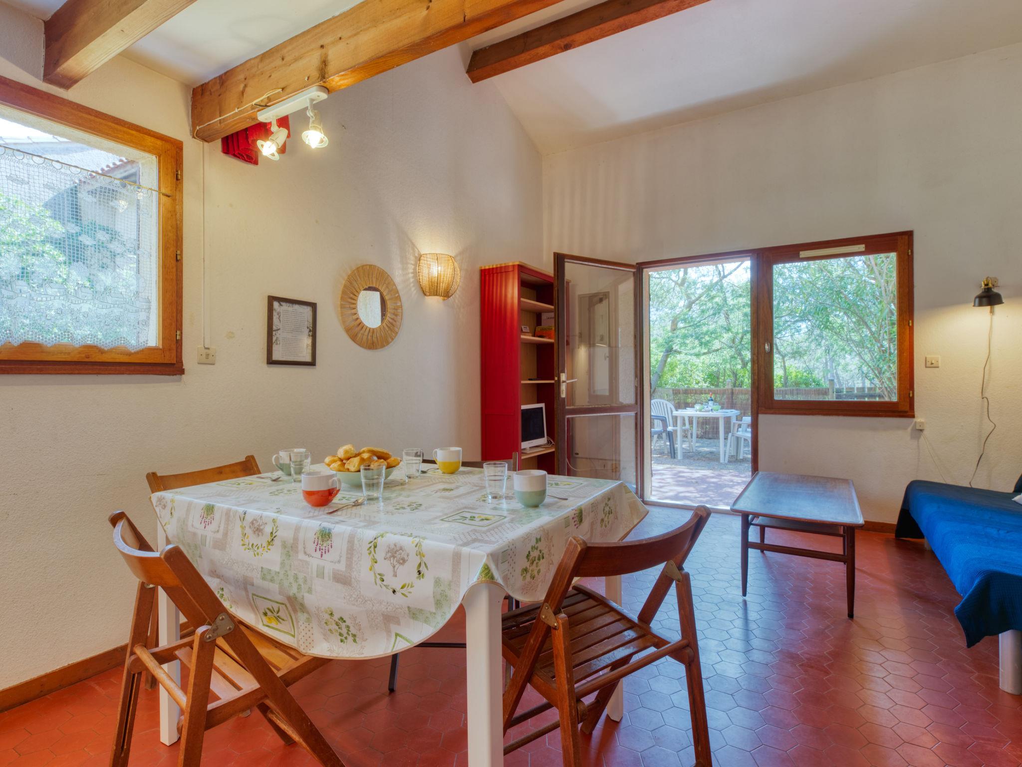 1-room terraced house 38 m2 on 2 levels. Living/dining room with 1 double sofabed and TV. Kitchenette (2 hot plates, oven, microwave, electric coffee machine). Bath/WC. Electric heating. Upper floor: gallery with 1 french bed (160 cm, length 200 cm). Terrace 12 m2. Terrace furniture, deck chairs. Facilities: iron. Internet (WiFi, extra). Please note: non-smokers only. Maximum 1 pet/ dog allowed. Smoke alarm. Instead of an enclosed bedroom, some sleeping areas are located in an open-plan area (gallery, alcove, etc.). 92109824000010