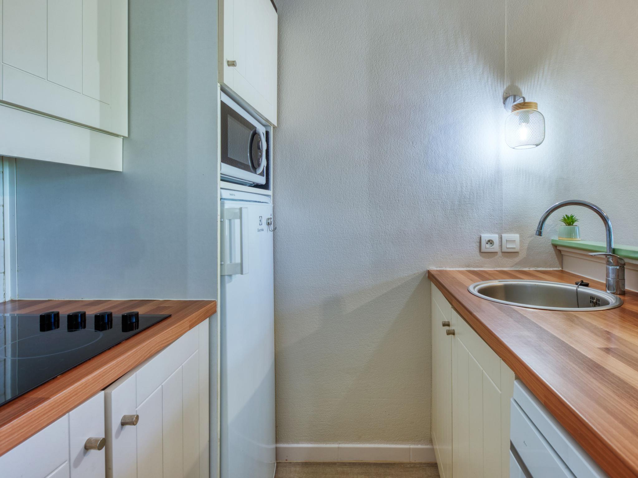 4-room terraced house 62 m2 on 2 levels. Comfortable furnishings: living/dining room with TV. Exit to the terrace. Kitchenette (dishwasher, 4 ceramic glass hob hotplates, electric coffee machine, Capsules for coffee machine (Nespresso), combination microwave). Bath/shower/WC. Electric heating. Upper floor: 1 room with 1 french bed (140 cm, length 190 cm), TV (flat screen). Exit to the balcony. 1 room with 2 beds (90 cm, length 190 cm). 1 small room with 1 x 2 bunk beds (90 cm, length 190 cm). Bathroom, sep. WC. Terrace, east facing position, patio. Terrace furniture. View of golf course. Facilities: Internet (WiFi, free). Parking. Please note: non-smokers only. Smoke alarm. -