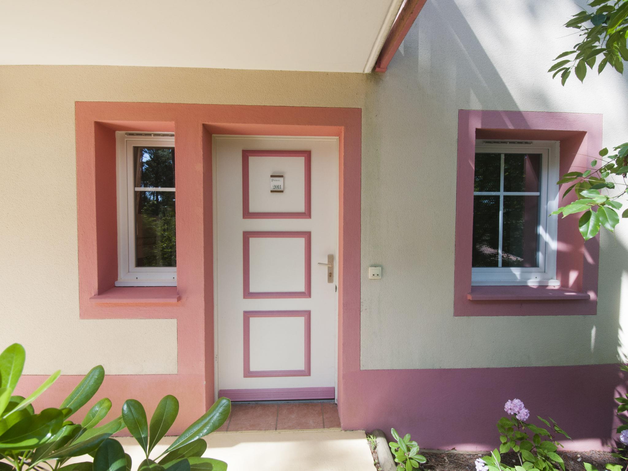 Holiday village "Domaine Golf Resort". In the resort, 2 km from the centre, 2 km from the sea, 3 km from the lake, 2 km from the beach, on the golf course. For shared use: garden (fenced), swimming pool fenced (400 m2, seasonal availability: 15.May. - 15.Sep. pool opening hours: 10:00-19:45). Children's pool, children's playground. In the complex: washing machine (for shared use, extra). Parking on the premises. Shop 2 km, supermarket 2 km, bus stop "Marie Curie" 1.7 km. Golf course (18 hole) 500 m, tennis 1 km, riding stable 15 km.