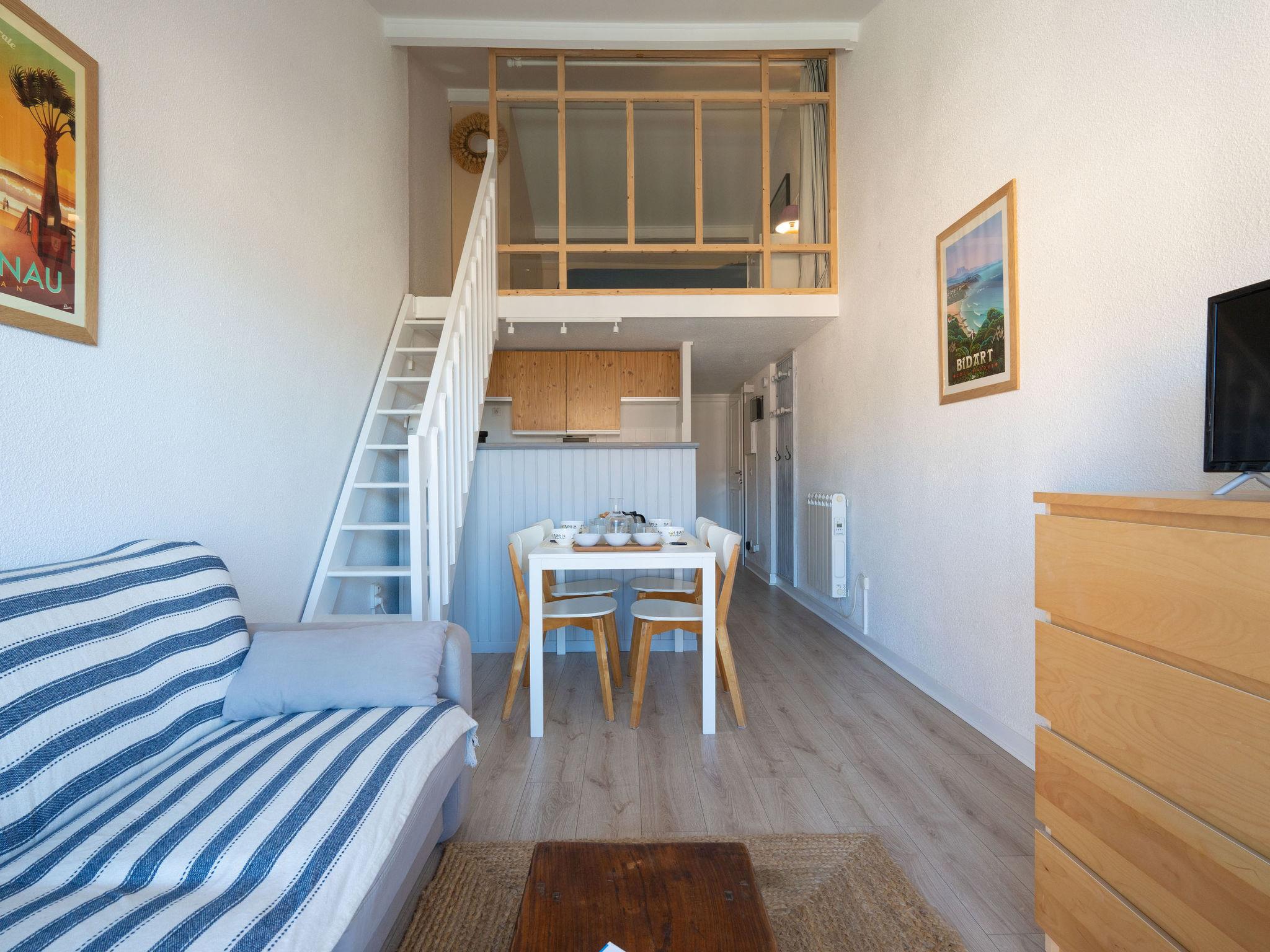 Apartment block "Les Maisons de l'Océan", 3 storeys. 500 m from the centre, 45 m from the sea, 45 m from the beach. Parking space or garage only for small to medium-sized cars. Shop 500 m, supermarket 600 m, restaurant, bakery, bicycle rental 500 m, bus stop "Salle l'Escoure Océan" 900 m. Golf course (18 hole) 4 km, surf school 100 m, tennis 2 km, riding stable 15 km. Please note: Additional accommodations can be booked.