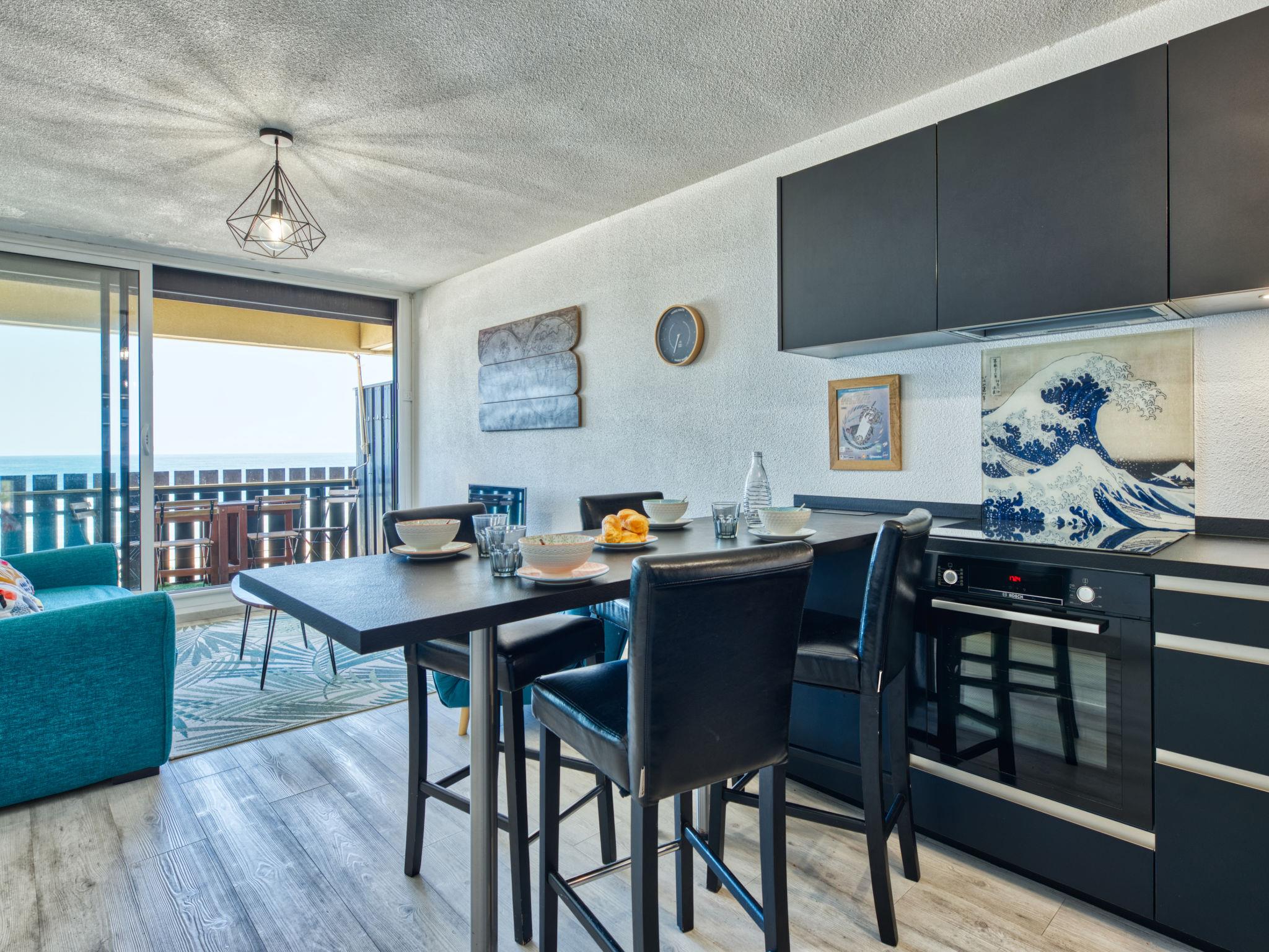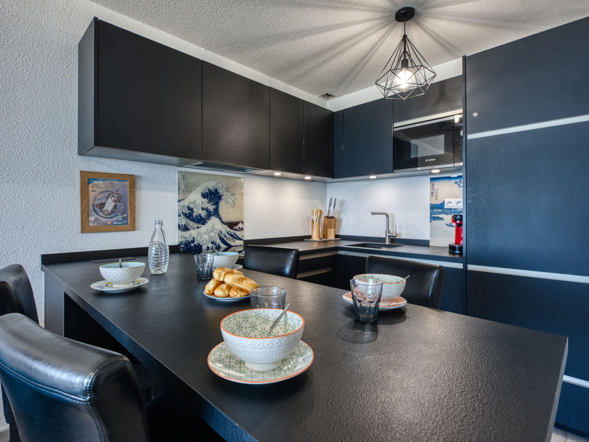 3-room apartment 51 m2 on 3 levels on 3rd floor, west facing position. Comfortable furnishings: living/dining room with 1 double sofabed (140 cm, length 190 cm), TV. Exit to the balcony. Open kitchen (oven, dishwasher, 3 induction hot plates, microwave, electric coffee machine, Capsules for coffee machine (Senseo) extra). Sep. WC. On the lower ground floor: 1 room with 1 french bed (140 cm, length 200 cm). Shower. Electric heating. Upper floor: 1 room with 1 x 2 bunk beds (90 cm, length 200 cm). Balcony, west facing position. Balcony furniture. Marvellous view of the sea. Facilities: washing machine, iron, baby cot for up to 2 year olds, hair dryer. Internet (WiFi, free). Parking space n 772. Please note: non-smokers only. Smoke alarm.