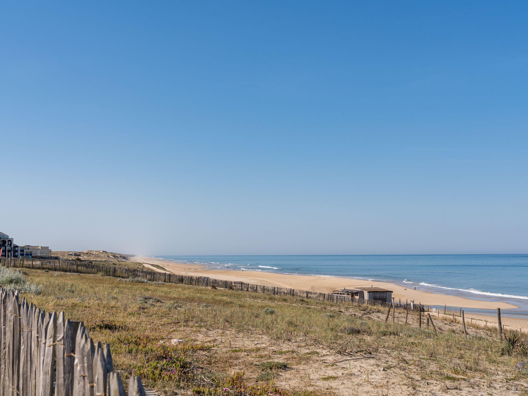 Lacanau-Ocean: Residence "Les Océanides", 4 storeys. 300 m from the centre, 20 m from the sea, 6 km from the lake, 20 m from the beach, direct access to the beach. Shop 300 m, grocery 50 m, supermarket 300 m, restaurant 50 m, bar 200 m, bakery 100 m, pedestrian zone 200 m, bicycle rental 500 m, bus stop "Salle l'Escoure Océan" 700 m, sandy beach "Plage sud" 20 m, bathing lake "Moutchic" 6 km. Golf course (18 hole) 4 km, sailing school 10 km, tennis 2 km, riding stable 15 km. Nearby attractions: Bordeaux 60 km, Dune du Pilat 80 km, Arcachon 80 km, Saint Emilion 80 km, Lacanau Ville 10 km. Well-known lakes can easily be reached: Lac du moutchic 10 km, Lac de Maubuisson 20 km. Hiking paths: Chemin de Saint Jacques de Compostelle 500 m. Please note: no lift.