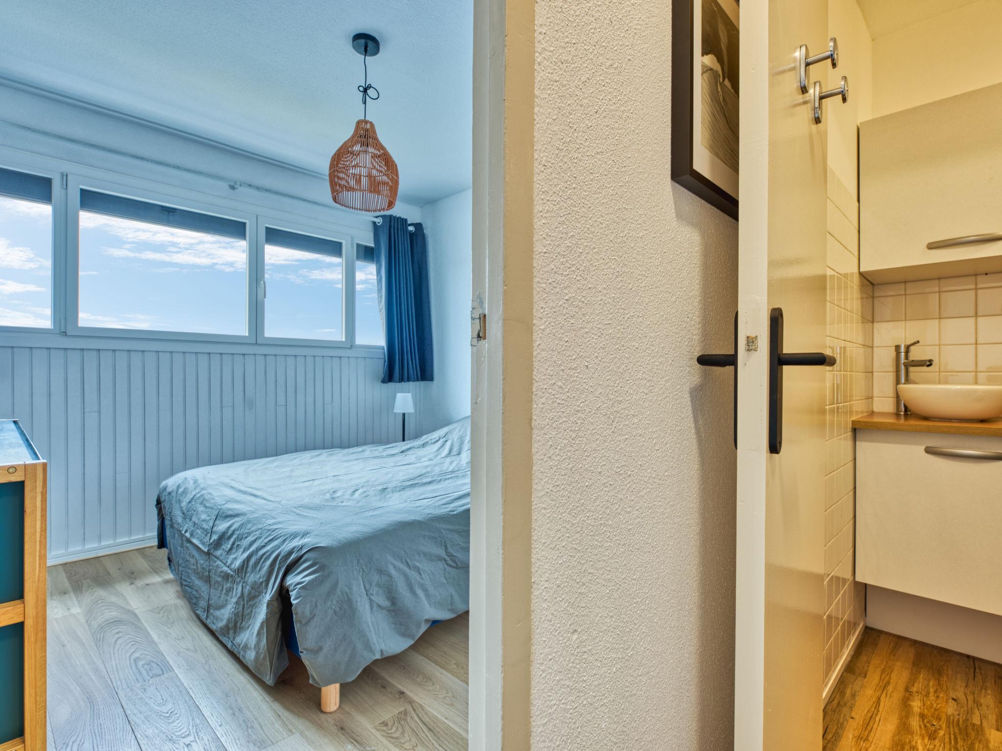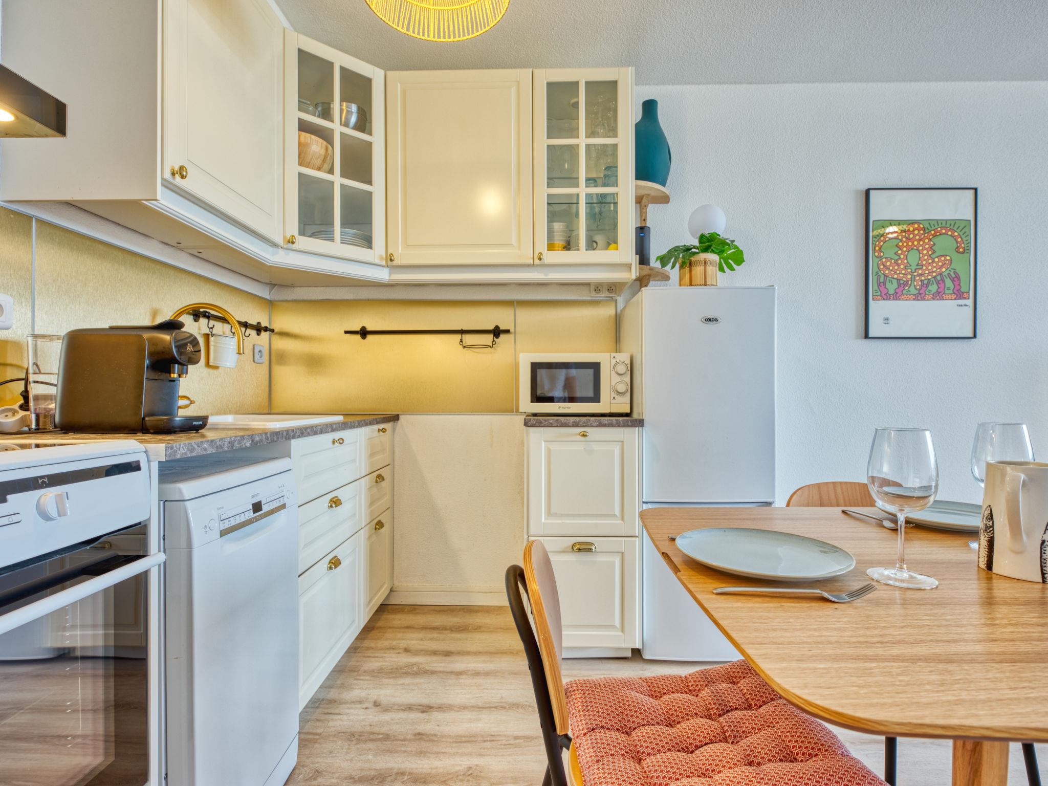 3-room apartment 51 m2 on 3 levels on 3rd floor, west facing position. Renovated in 2024, comfortable furnishings: living/dining room with 1 double sofabed (140 cm, length 190 cm), dining table and TV. Exit to the balcony. Open kitchen (oven, dishwasher, 3 ceramic glass hob hotplates, toaster, kettle, microwave, electric coffee machine). Sep. WC. On the lower ground floor: 1 room with 1 pull-out bed (2 x 90 cm, length 190 cm). Shower. Electric heating. Upper floor: 1 room with 1 french bed (160 cm, length 190 cm). Balcony, west facing position. Balcony furniture. Marvellous view of the sea. Facilities: washing machine, iron, hair dryer. Internet (WiFi, free). Parking space n 442. Please note: non-smokers only. Smoke alarm. Offer by a private individual according to Art. 155, IV of CGI.