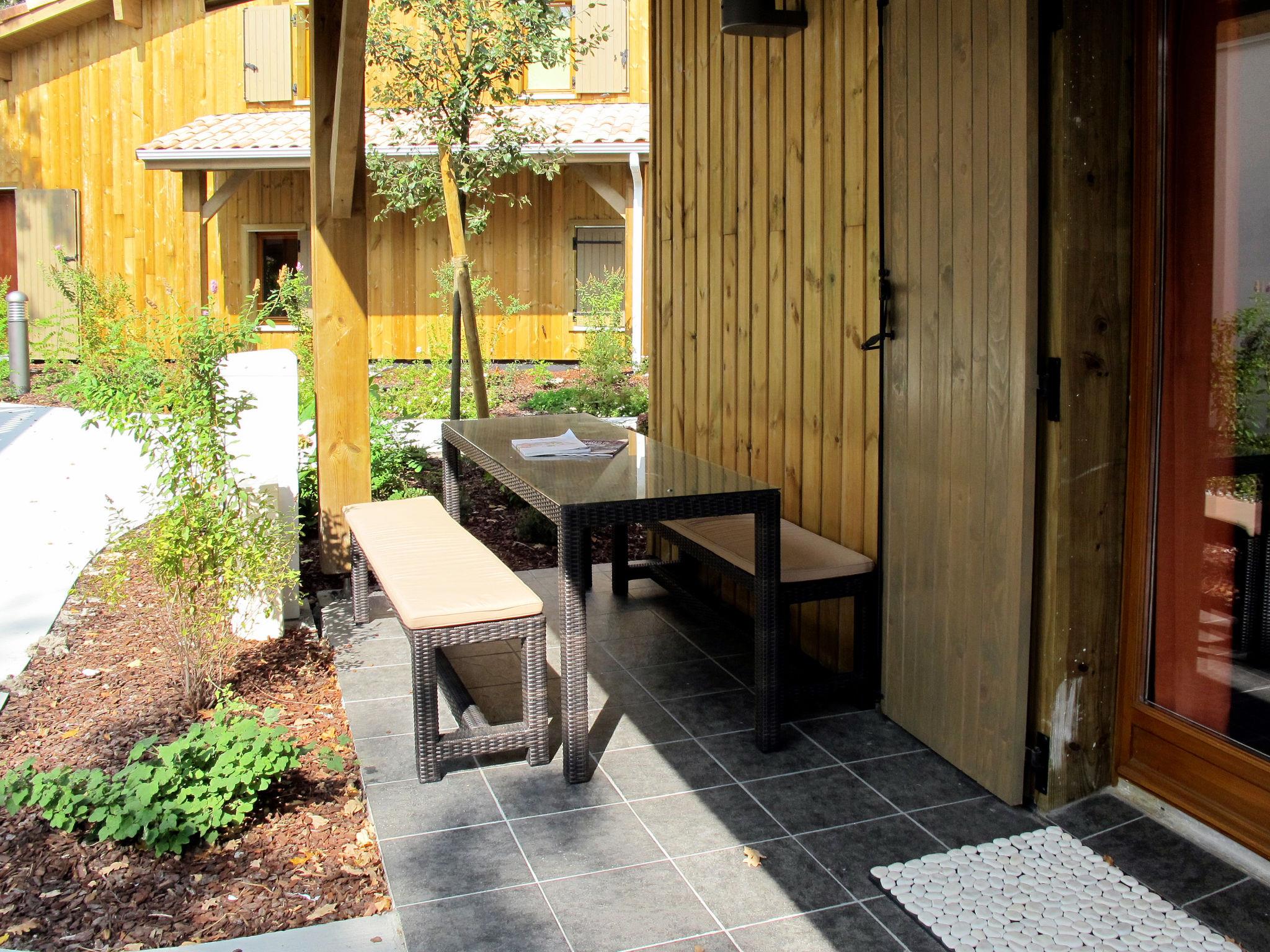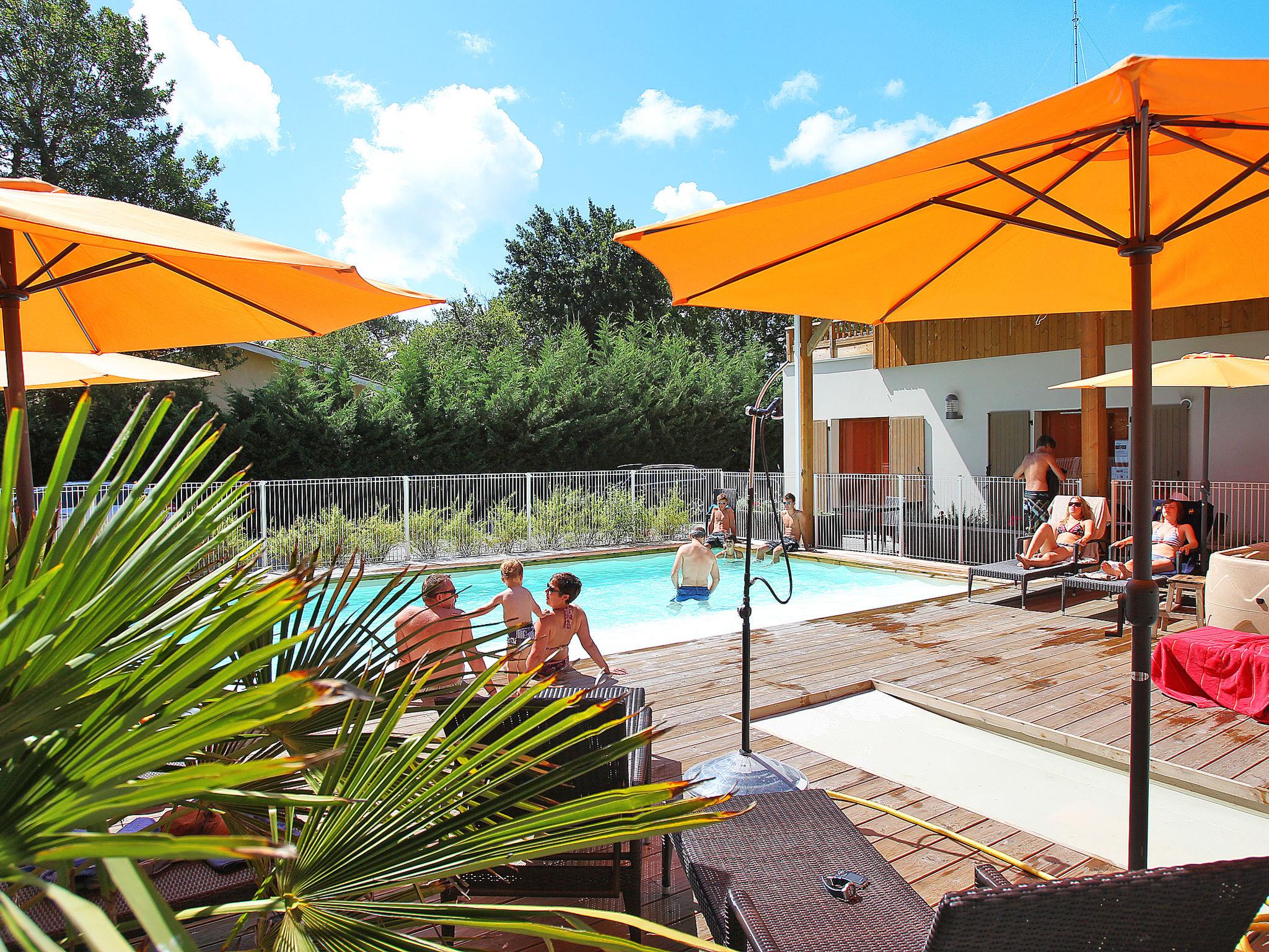 Resort "Les Rives du Lac". 11 houses in the residence. 37 apartments in the residence. 6 km from the centre of Lacanau, 6 km from the centre of Lacanau-Océan, 55 km from the centre of Bordeaux, 7 km from the sea, 150 m from the lake. For shared use: property with plants and trees, swimming pool heated (9 x 6 m, depth 120 cm, seasonal availability: 01.Jun. - 30.Sep.). Boccia, terrace. In the complex: reception, WiFi, sauna, steam room, washing machine (extra), tumble dryer (for shared use, extra). Parking (limited number of spaces). Supermarket 6 km, restaurant 200 m, sandy beach "Lac de Lacanau/Plage Le Moutchic" 400 m. Golf course (18 hole) 4 km, riding stable 4 km. Please note: the photograph shows a typical example. The holiday properties may differ in living space, floorplan, equipment and furnishing. Access to the sauna, steam bath permitted from age 18 only.