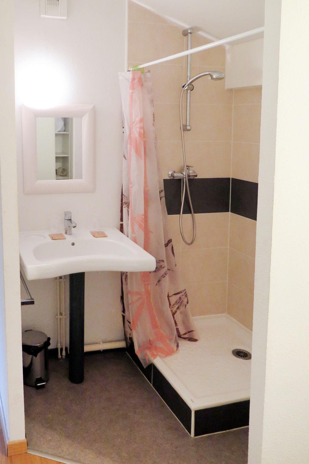 "Les Rives du Lac", 4-room apartment 49 m2. Object suitable for 6 adults. Practical and modern furnishings: living/sleeping room with 1 double sofabed (135 cm), dining table and satellite TV. 1 room with 1 french bed. 1 room with 2 beds (80 cm). 1 room with 1 french bed and shower. Small, open kitchen (dishwasher, 4 ceramic glass hob hotplates, toaster, kettle, microwave, freezer, electric coffee machine). Shower, sep. WC. Electric heating. Balcony or terrace. Terrace furniture, balcony furniture. Facilities: Internet (WiFi, free). Please note: non-smokers only. Maximum 1 pet/ dog allowed. Smoke alarm. The flats can be located on the ground floor or upper floor (access via external staircase). In addition, this type of flat can also be on 2 or 3 levels.