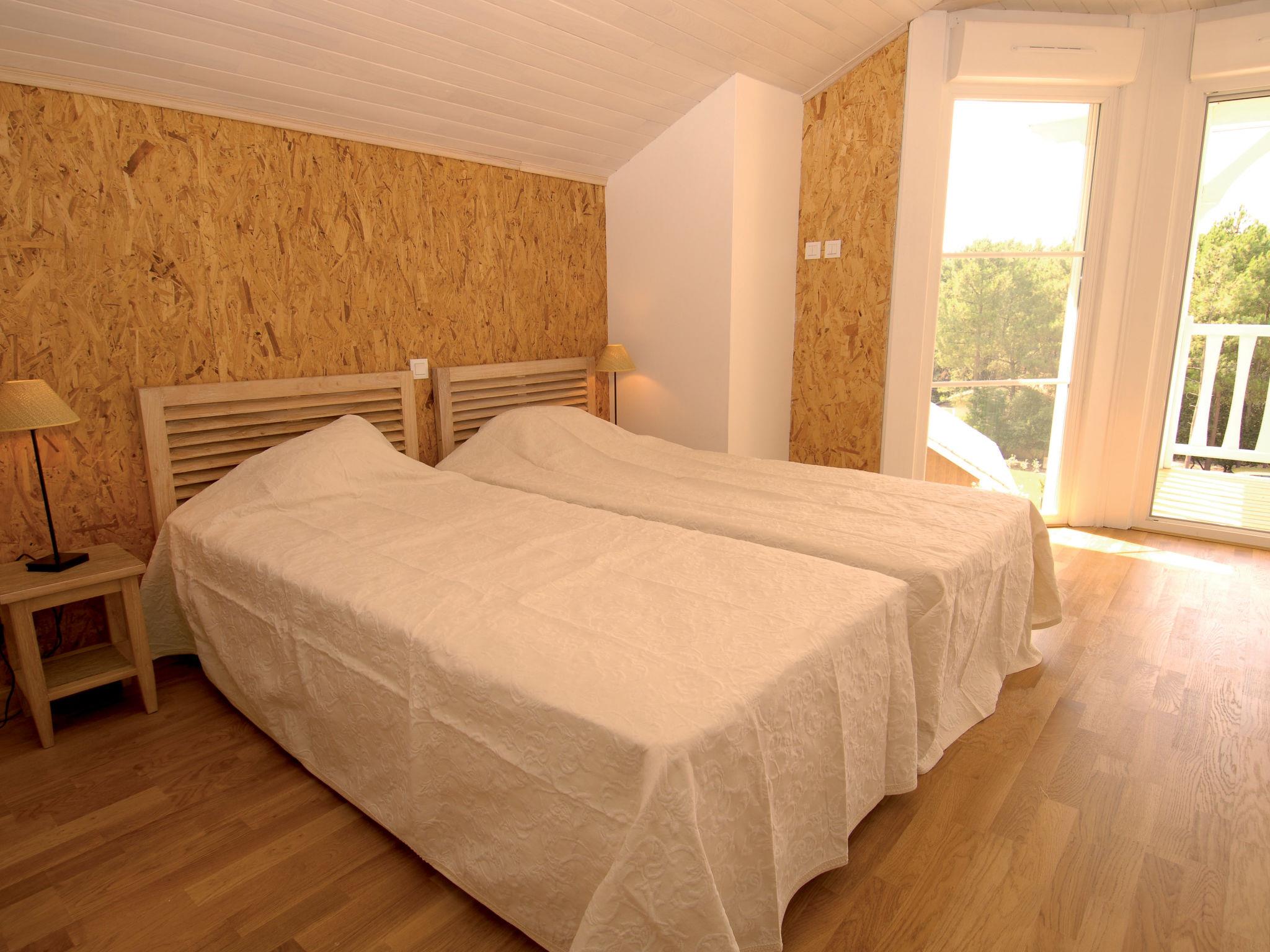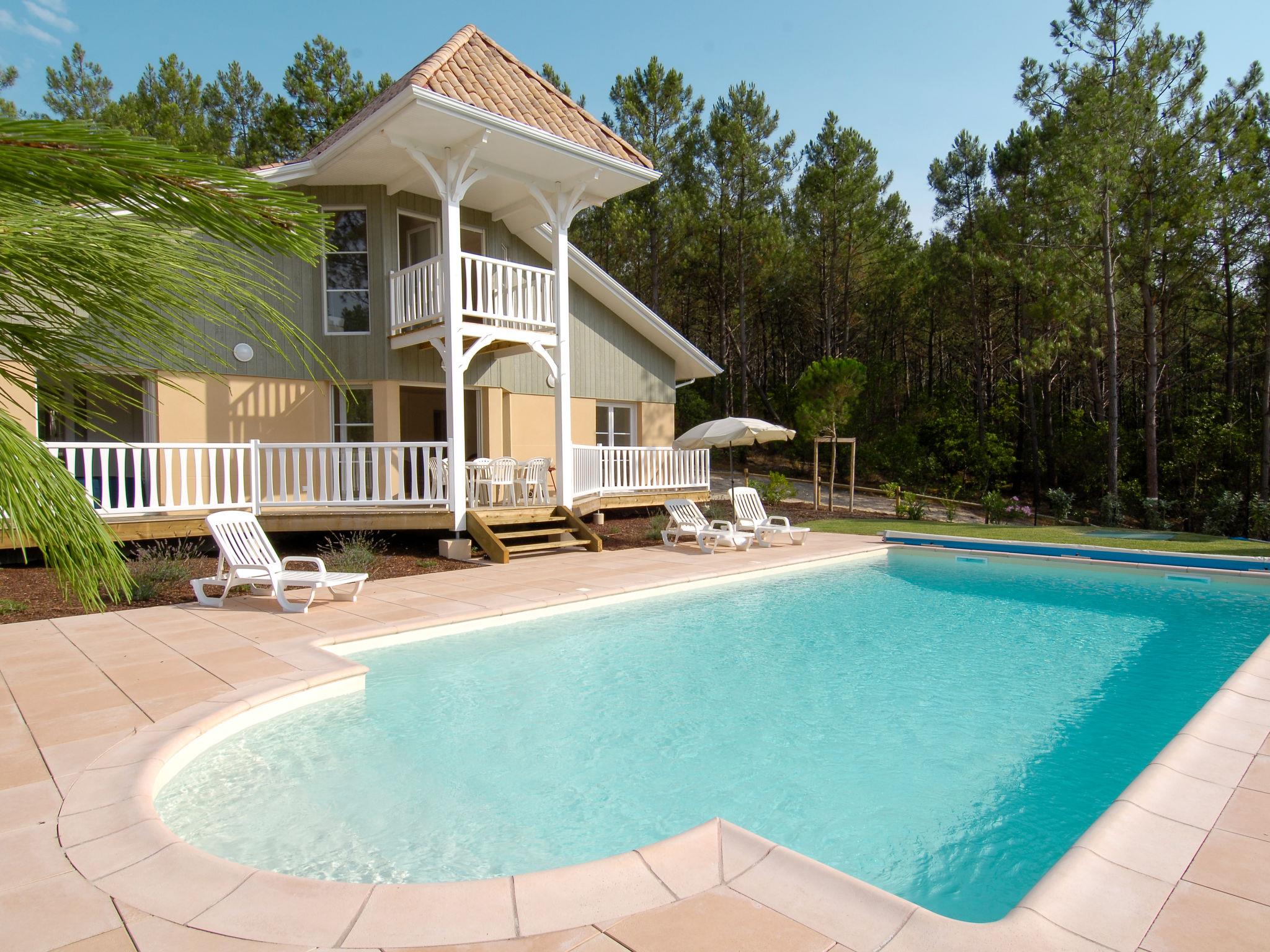 Resort "Eden Club". 20 houses in the resort. 2.5 km from the centre of Lacanau-Océan, 12 km from the centre of Lacanau, 58 km from the centre of Bordeaux, 2.5 km from the sea. For shared use: property 2 ha with trees. Private: natural state property 500 m2, swimming pool (8 x 4 m, seasonal availability: 15.Apr. - 15.Oct.) with internal staircase. Terrace. 20 m long bumpy motor access to the house (via unmade road). Parking (for 2 cars). Shop 2.5 km, bus stop "Marie Curie" 2.6 km, sandy beach 2.5 km. Golf course (18 hole) 200 m, riding stable 50 m. Please note: the photograph shows a typical example. The holiday properties may differ in living space, floorplan, equipment and furnishing. Rental of a mobile WIFI hotspot.