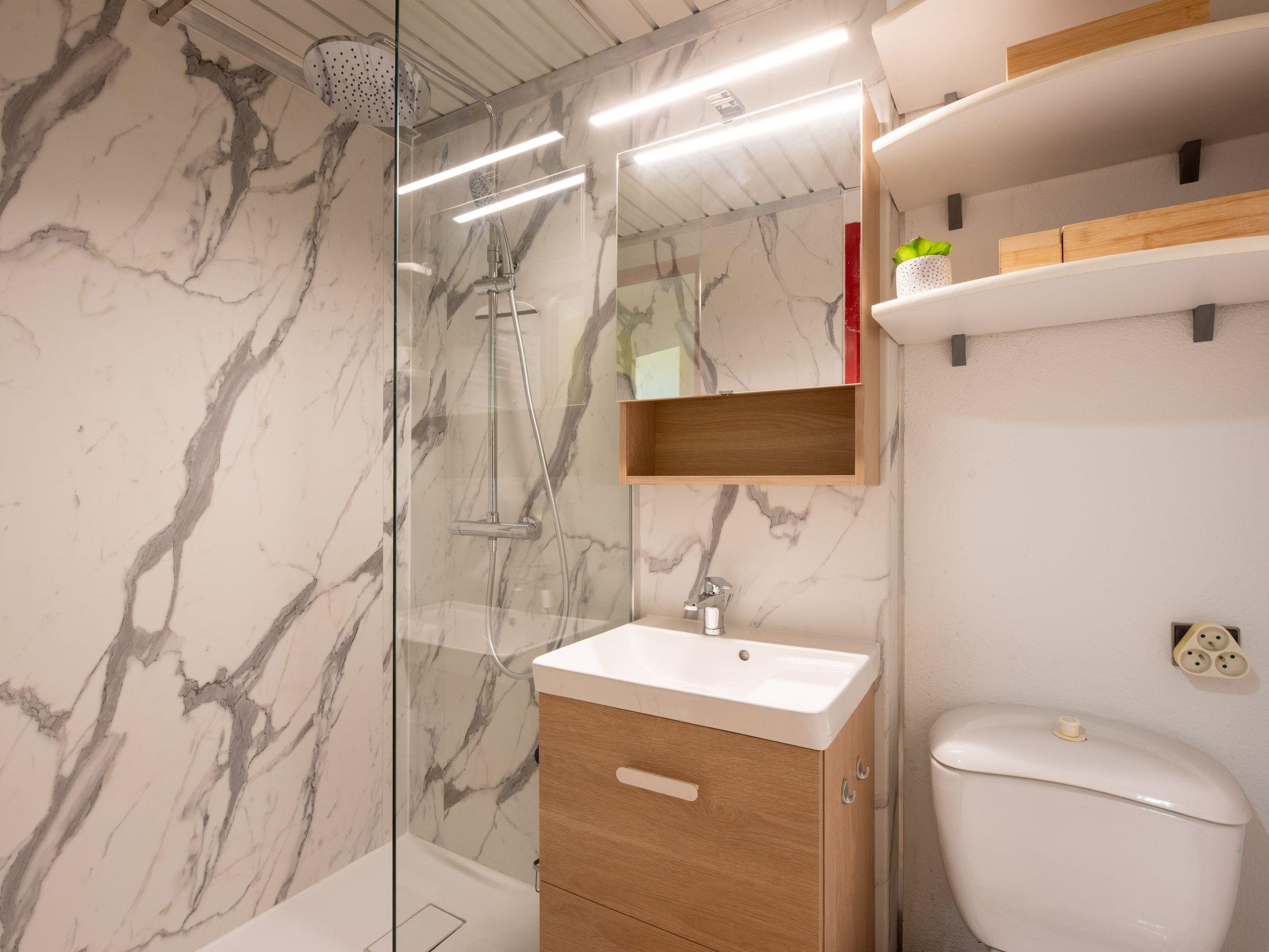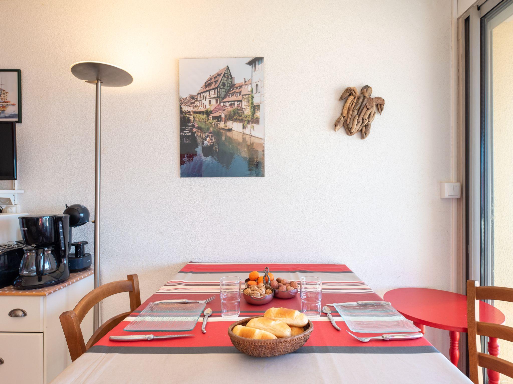 2-room apartment 25 m2 on 3rd floor, west facing position. Comfortable furnishings: living/dining room with dining table and TV (flat screen). Exit to the terrace. Alcove with 1 french bed (140 cm, length 190 cm). Open kitchen (2 ceramic glass hob hotplates, toaster, kettle, electric coffee machine, Capsules for coffee machine (dolce gusto) extra, combination microwave). Bath/WC. Heating, electric heating. Small terrace 6 m2, west facing position. Terrace furniture. Very beautiful view of the ocean. Facilities: iron, hair dryer. Internet (WiFi, extra). Parking space n 32. Please note: non-smokers only. TV only FR. Smoke alarm. Instead of an enclosed bedroom, some sleeping areas are located in an open-plan area (gallery, alcove, etc.).