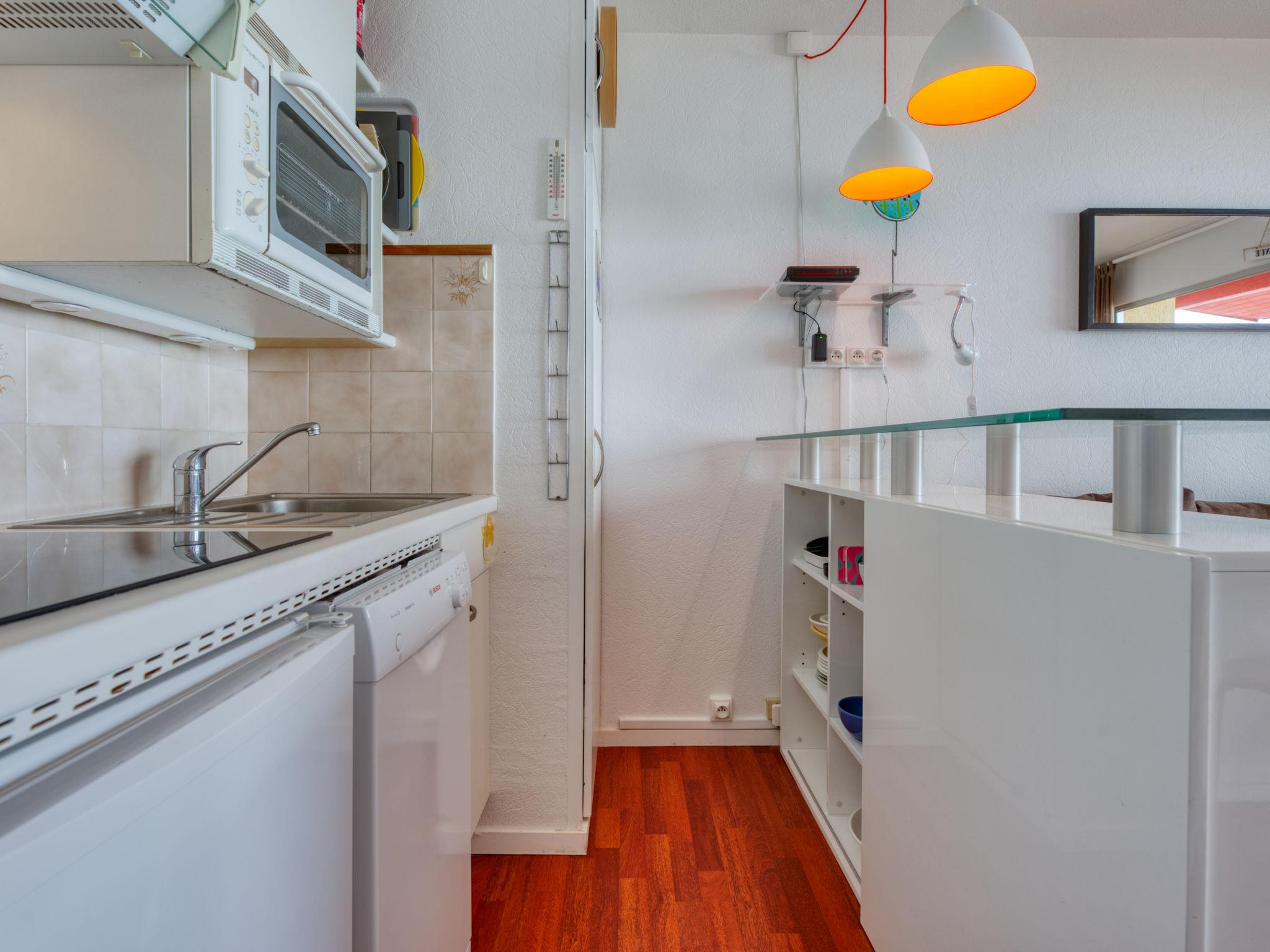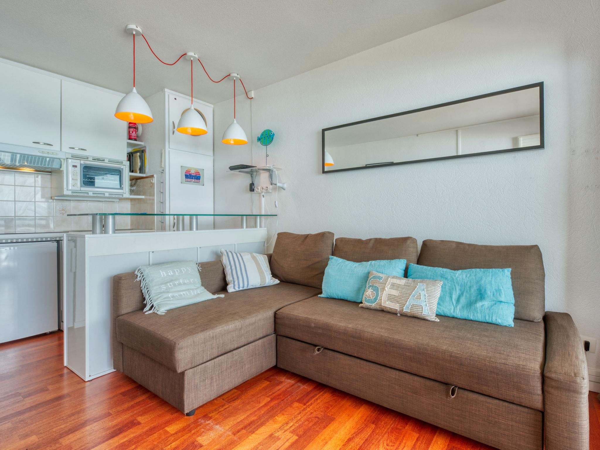 2-room apartment 21 m2 on 3rd floor, west facing position. Beautiful furnishings: living/dining room with 1 double sofabed and TV (flat screen). Exit to the balcony. 1 small room with 1 french bed (140 cm, length 190 cm). Kitchenette (mini-oven, dishwasher, 3 induction hot plates, electric coffee machine, Capsules for coffee machine (Dolce Gusto) extra). Shower/WC. Electric heating. Balcony 6 m2, west facing position. Balcony furniture. Marvellous view of the ocean. Facilities: Internet (WiFi, free). Parking space n 35 (1 car). Please note: non-smokers only. Smoke alarm.