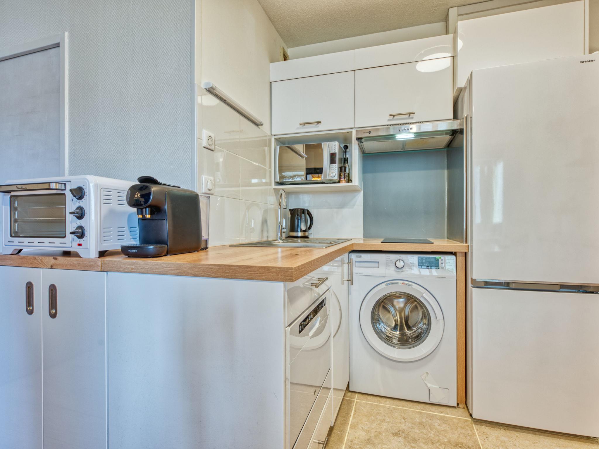 2-room apartment 30 m2, on the ground floor. Living/dining room with 1 double sofabed (140 cm, length 200 cm). Exit to the loggia. 1 room with 1 double bed (140 cm, length 190 cm). Kitchenette (4 hot plates, oven, toaster, kettle, microwave, electric coffee machine). Shower/WC. Heating. Balcony furniture, covered balcony. Partial view of the ocean. Facilities: washing machine. Internet (WiFi, extra). Parking space n 62. Please note: non-smokers only. Maximum 1 pet/ dog allowed. Smoke alarm. Offer by a private individual according to Art. 155, IV of CGI.