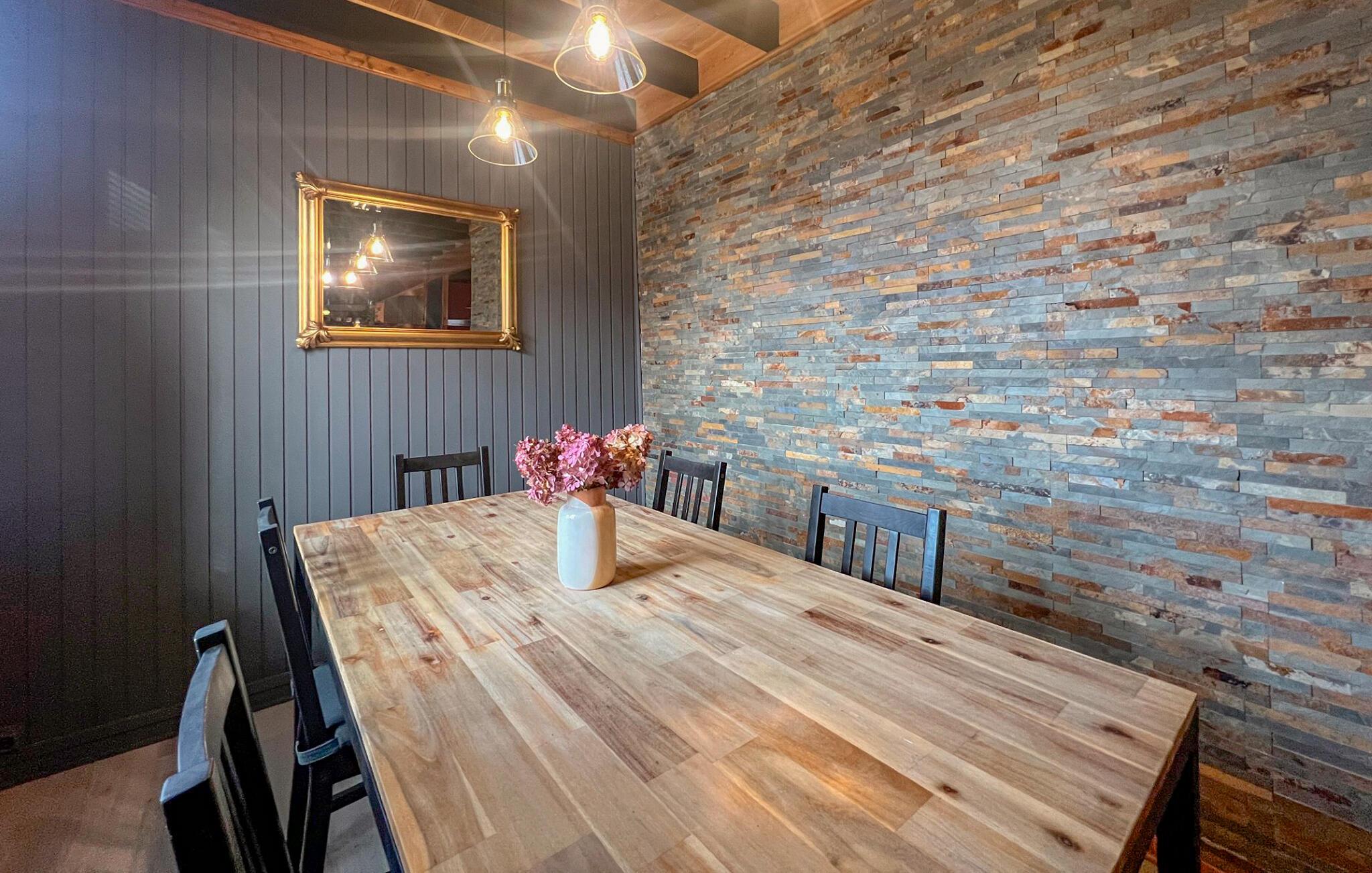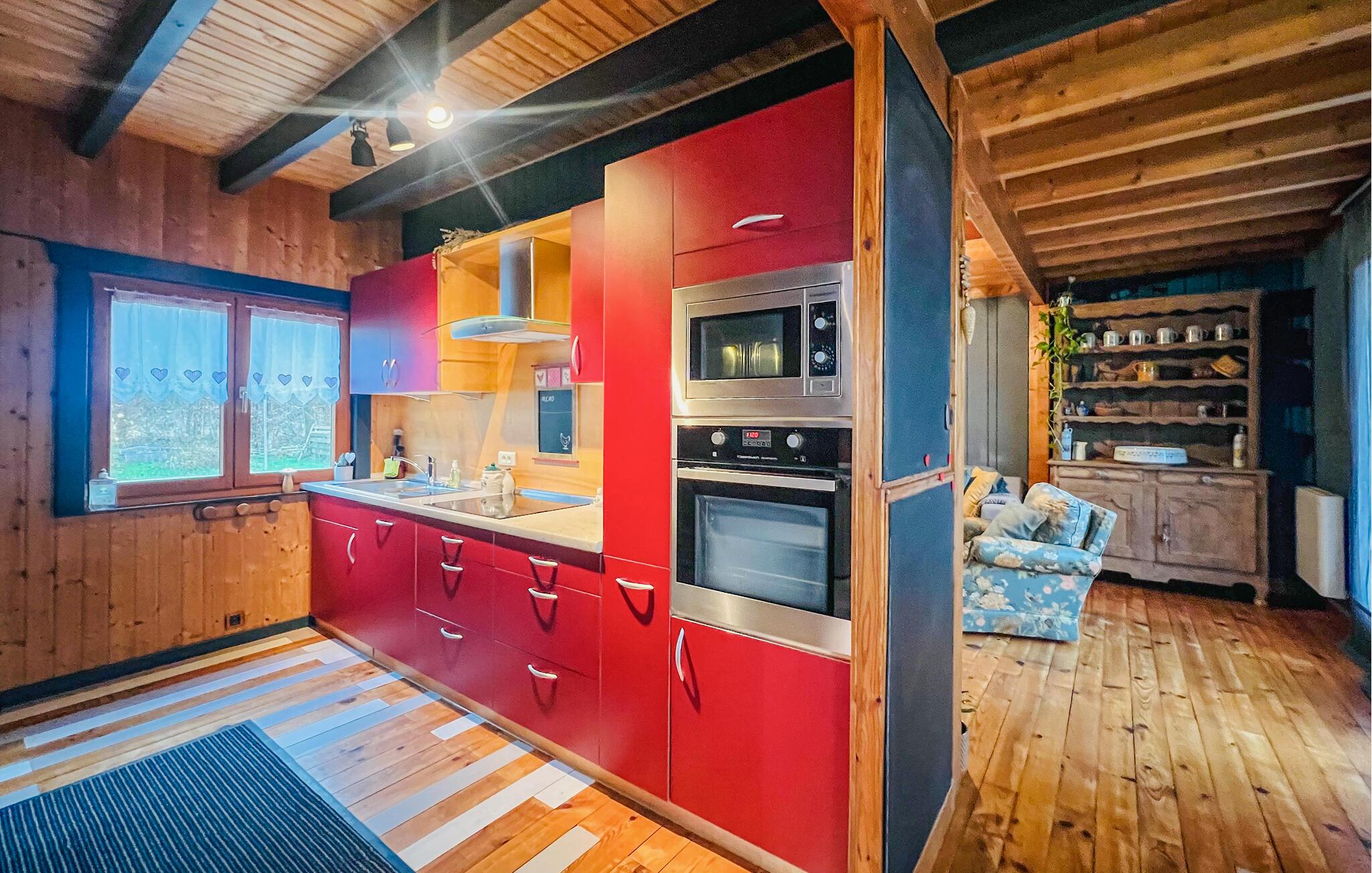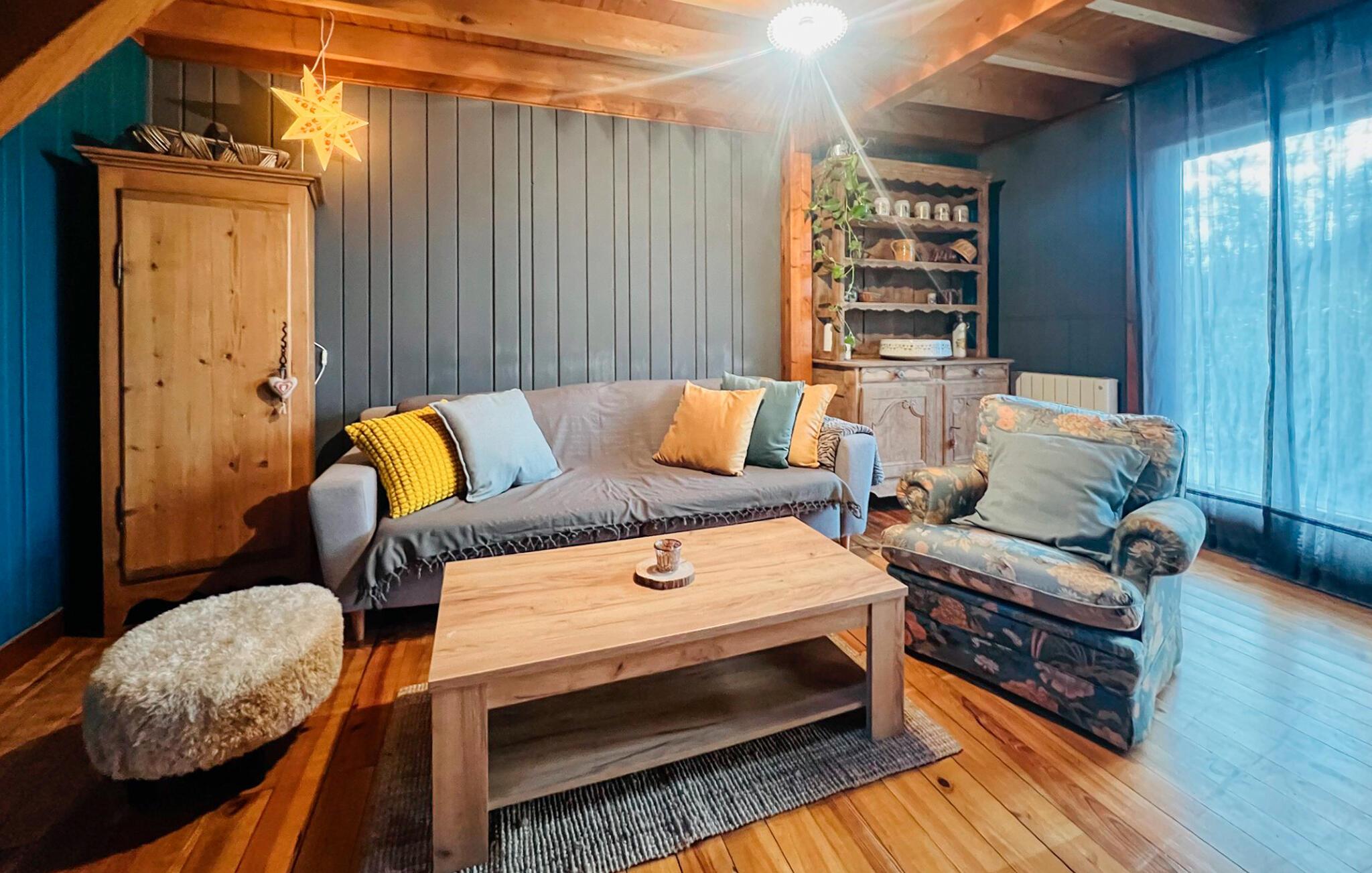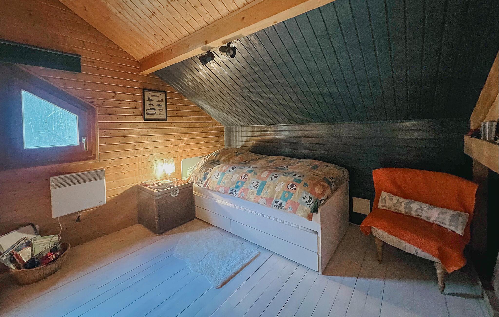 Tilbring en uforglemmelig tid i dette charmerende feriehus, som er noget særligt med sit hyggelige trælook og moderne accenter. Eksperimenter med urter og regionale produkter i det moderne, veludstyrede køkken og fejr jeres måltider i den hyggelige spiseplads. Glæd jer til afslappende timer i den hyggelige stue og tag jer tid til en god bog eller en hyggelig spilleaften med familien.