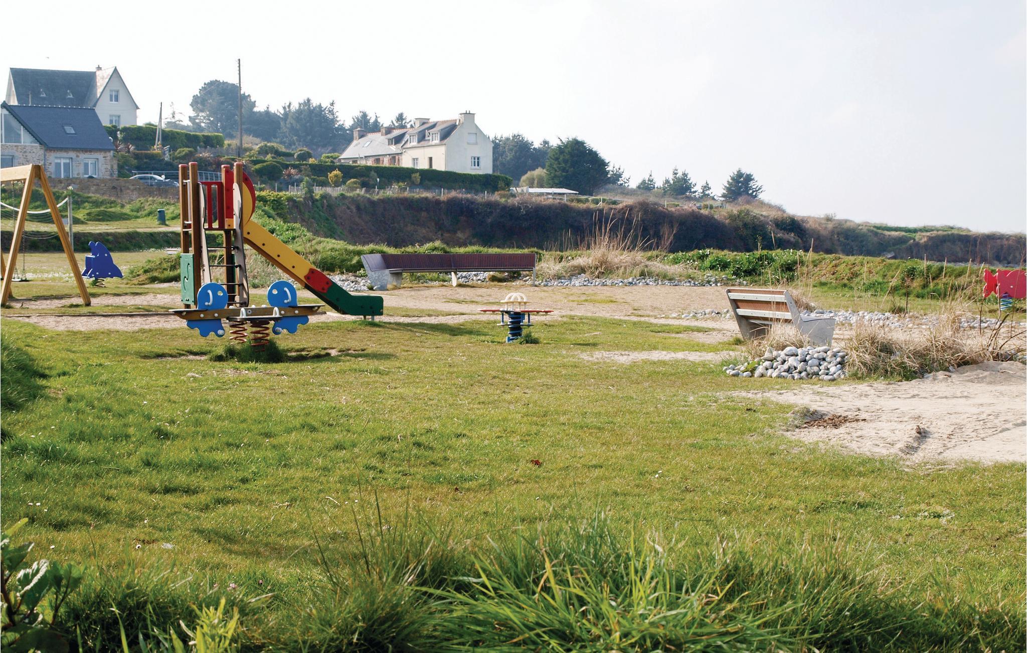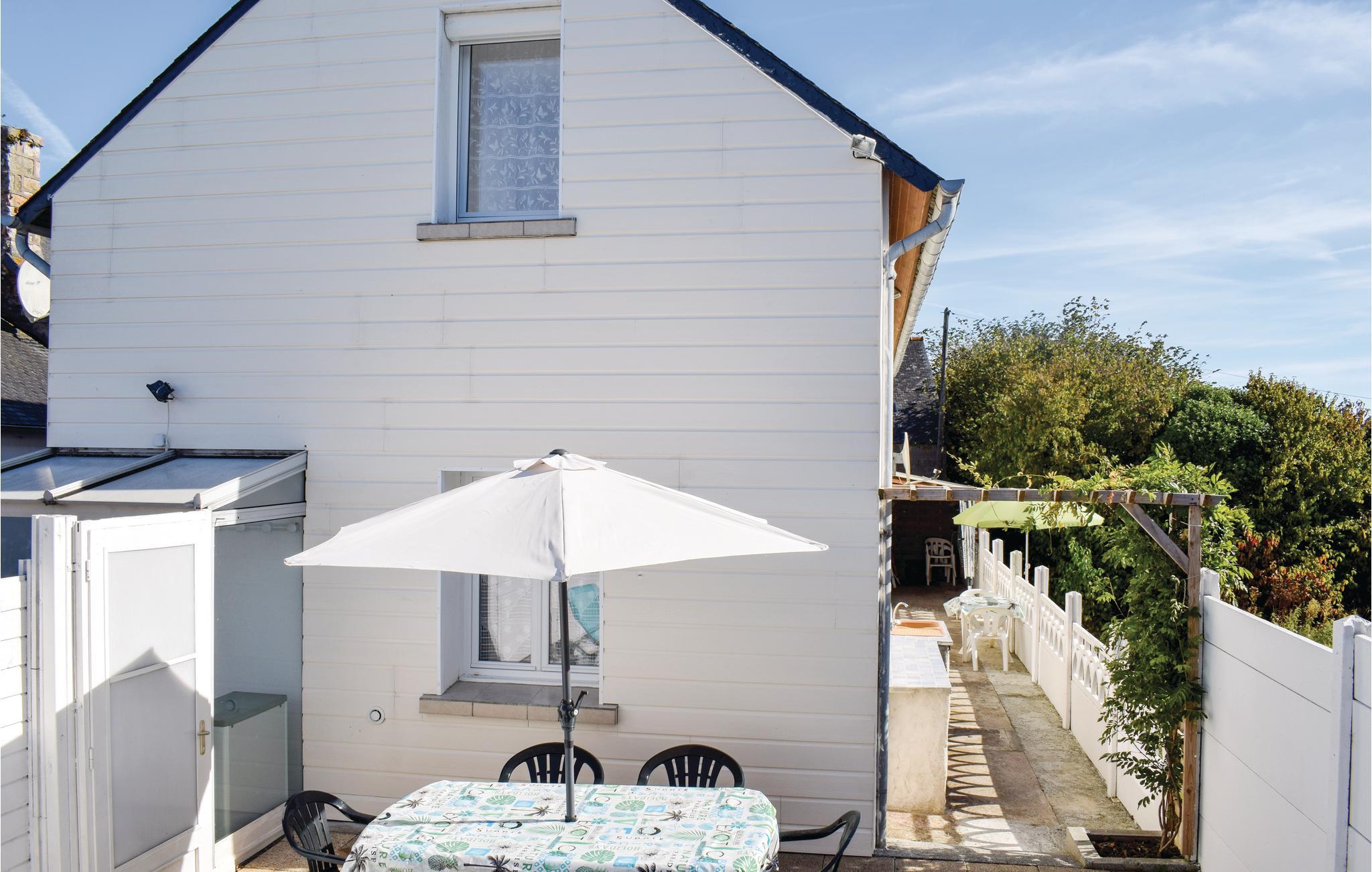 Der er adgang igennem en fælles port til grunden, som dette indbydende feriehus ligger på. Fælles indgangsområde i huset. Her nyder I godt af en rolig beliggenhed på en hovedsageligt uberørt halvø. Mod syd er der landligt område, og ved gavlen er der en græsplæne samt en møbleret terrasse med balustrade, der videre forløber ind i huset. Boligen byder på hyggelig indretning, og en gammel brødovn pynter stuen. I Pors-Guyon (2 km) med lille, uberørt strand bliver der avlet østers, der er den ideelle lejlighed til at smage dem helt frisk. Lige i nærheden ligger Sillon de Talbert. Denne 3,5 km lange odde, der er enestående i hele Europa, byder på herlige gåture i det fineste sand. Ved vandet venter en masse små, familievenlige strande som Pors Rand ved Kermagen. Fjernvandringsruten GR34 tager jer forbi mange dejlige klippebugter igennem kystområdet. Der er kun få kilometer til den historiske by Tréguier med dejlig katedral, og i Paimpol, også kaldet for islændingenes by, sker der noget året rundt: Musikfestivallen Chants des Marins, museer, regattaer, kammuslingens fest samt Fête des Vieux Gréements med koncerter, udstillinger, underholdning og loppemarkeder. I kan sejle til Bréhat-øen fra Arcouest på et kvarter. Tilbring en dejlig dag på øen, der også bliver kaldt blomsterøen grundet sin mangfoldige vegetation.