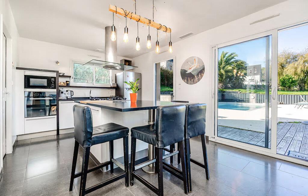 Beliggende i den storslåede naturpark på halvøen Crozon, er dette moderne og rummelige feriehus perfekt til en afslappende ferie med den udvidede familie eller nære venner. Tilbered lækre måltider, nyd hyggelige sammenkomster omkring det lange spisebord, og snak om svundne tider over et glas vin om aftenen eller find sammen til sjove spilleaftener på den behagelige sofa.