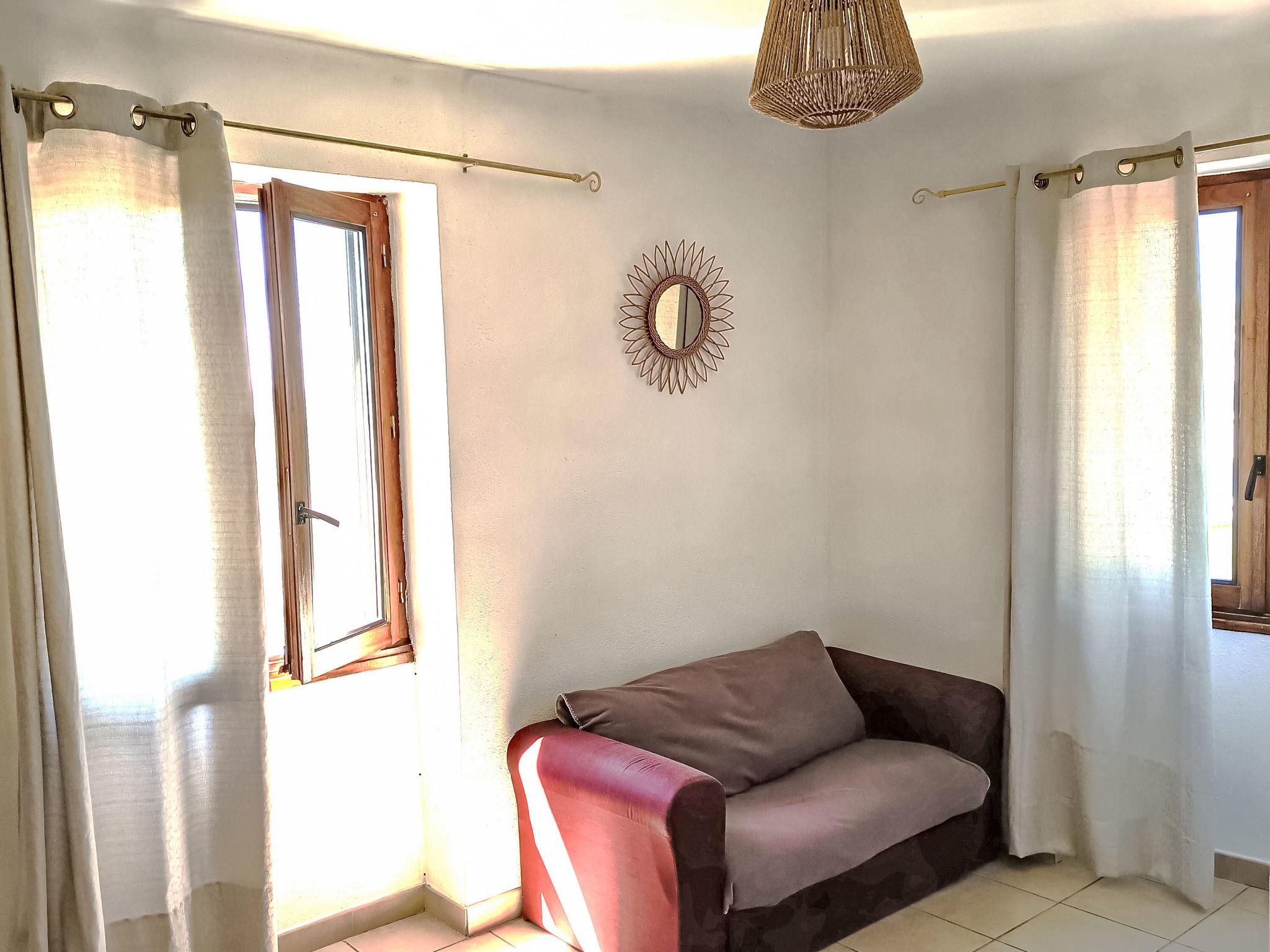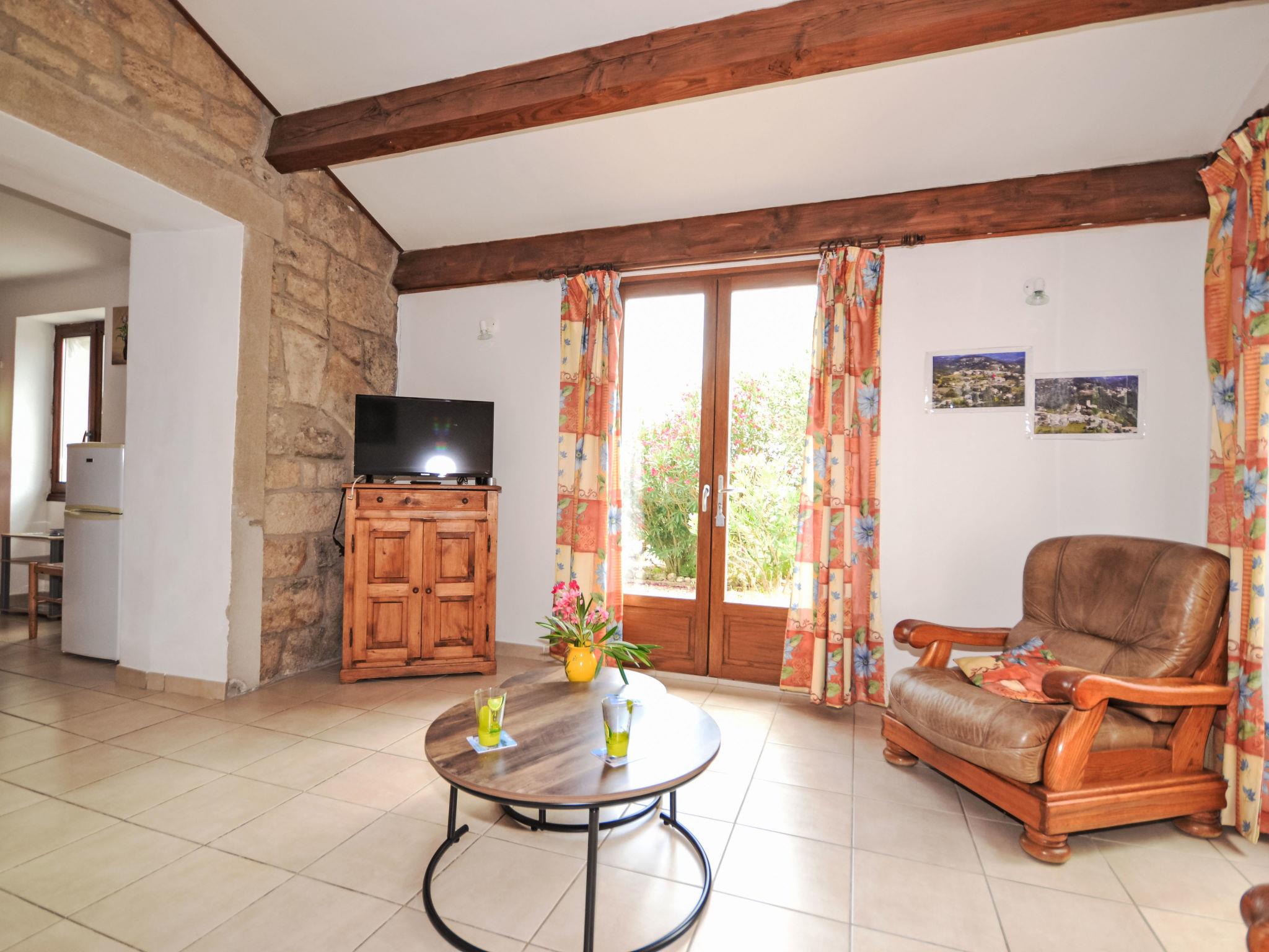 "Les Lauriers Roses", 3-room house 80 m2 on 2 levels. Practical and cosy furnishings: living room with TV (flat screen), CD-player, hi-fi system and fan. Exit to the garden. Kitchen (1 hot plate, oven, dishwasher, 3 gas rings, toaster, kettle, microwave, freezer, electric coffee machine) with dining table and wood-burning stove. Upper floor: 1 open room with 1 french bed (140 cm, length 190 cm), shower/WC. Electric heating. Terrace, patio. Terrace furniture, barbecue, deck chairs (4). Beautiful view of the mountains and the countryside. Facilities: washing machine, children's high chair, baby cot. Please note: non-smoking house. Maximum 2 pets/ dogs allowed. Smoke alarm. Offer by a private individual according to Art. 155, IV of CGI.