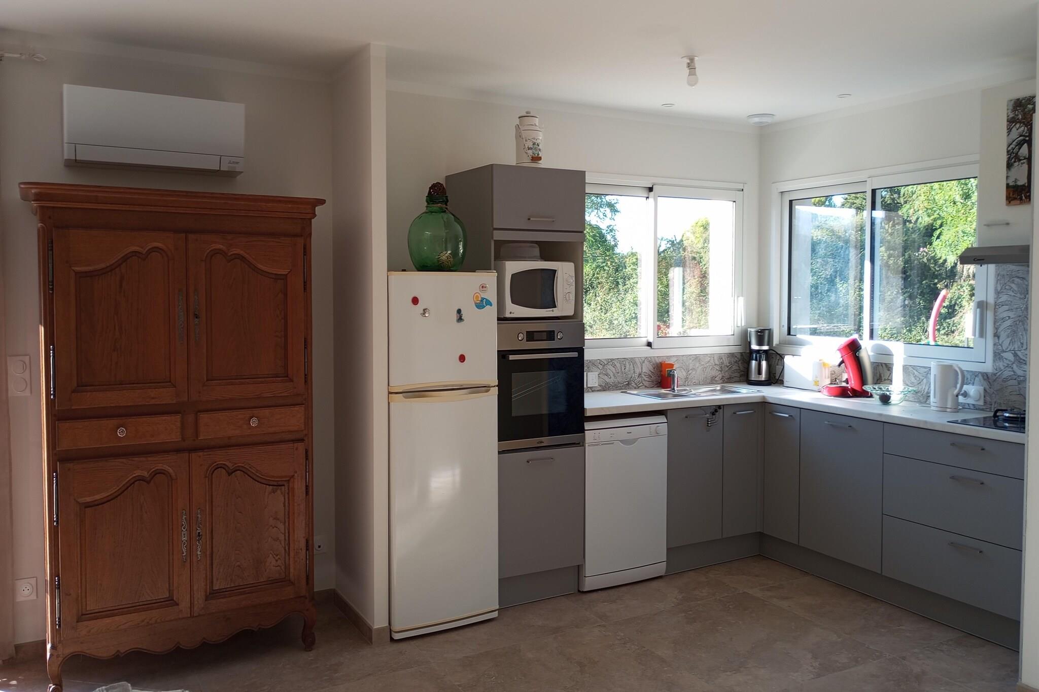 Villa des Figuiers blev bygget i 2024, den er i ét plan og har al den komfort, der ønskes til at tilbringe gode stunder med afslapning, hvad enten det er inde i det pænt dekorerede interiør eller udenfor på terrassen. Largentière ligger i et bjergrigt område, hvilket gør det til en populær destination for vandreture og mountainbiking. Andre lokale attraktioner omfatter "voie verte", en sti for cyklister og fodgængere, der følger forløbet af den gamle jernbanestrækning. Ekstremsportsentusiaster kan tage til Joyeuse, ikke langt fra Largentière, hvor vandsport og udendørsaktiviteter (klatring, grotteture, canyoning, paragliding osv.) garanteret får adrenalinet til at pumpe! I et åbent køkken kan du tilberede lækre måltider og nyde dem på spisebordet i stuen/spisestuen. Soveværelserne er komfortable og perfekte til at give fredelig søvn. Der er en vaskemaskine og parkeringsplads for din bekvemmelighed.