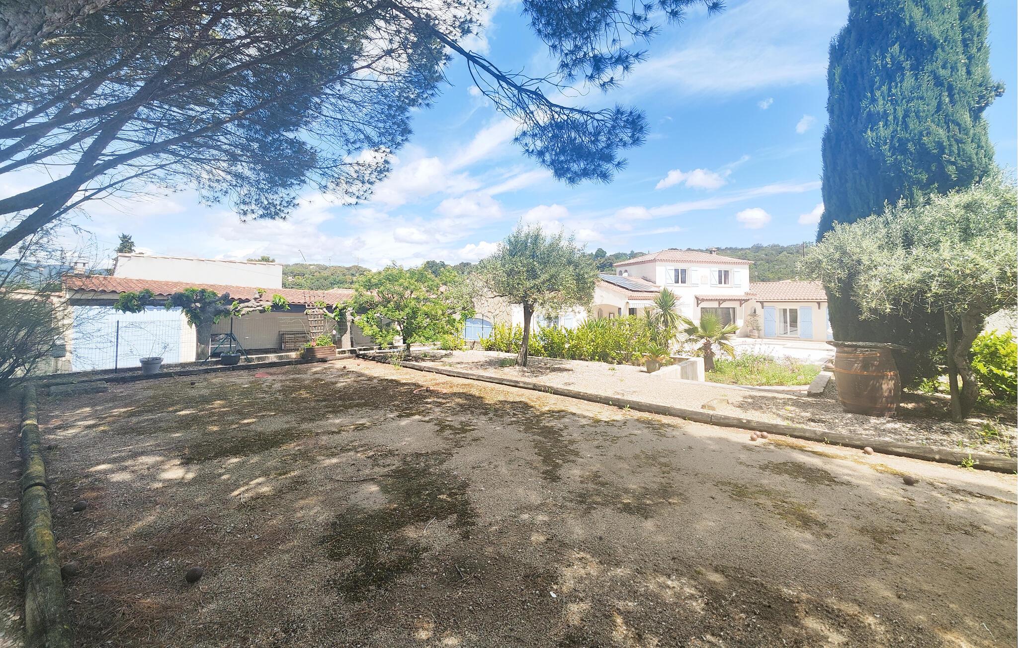 Nyd den overdækkede gårdhave med privat pool til en eftermiddagsforfriskning. Spil et spil petanque under skyggefulde træer eller slap af i den udendørs lounge. Den murstensbelagte grill og det separate udendørskøkken lægger op til at tilbringe hyggelige aftener udendørs. Der er også tænkt på børn – en trampolin giver leg og motion.