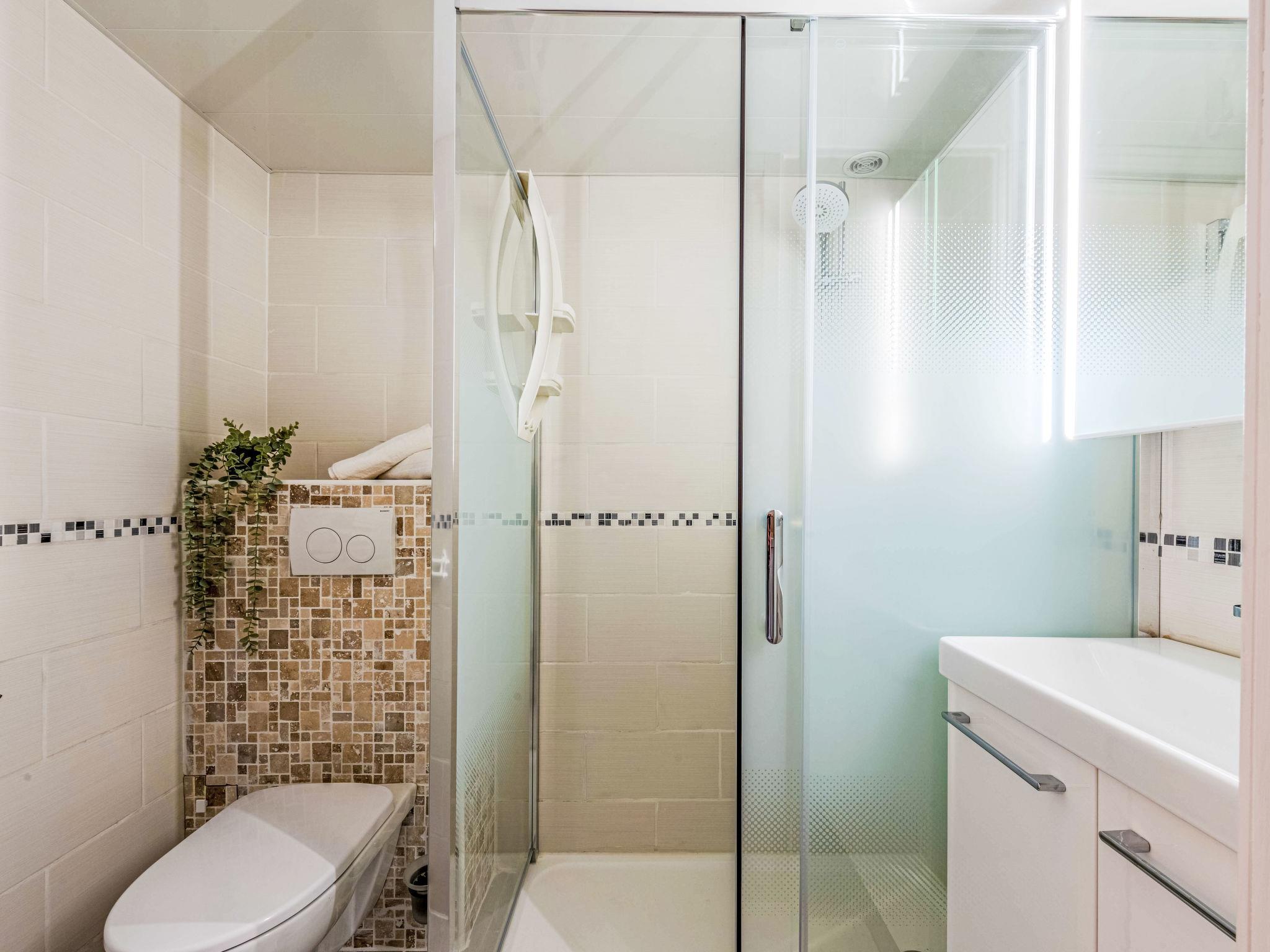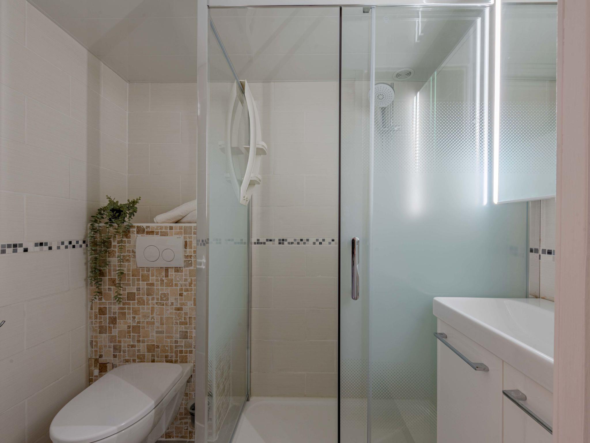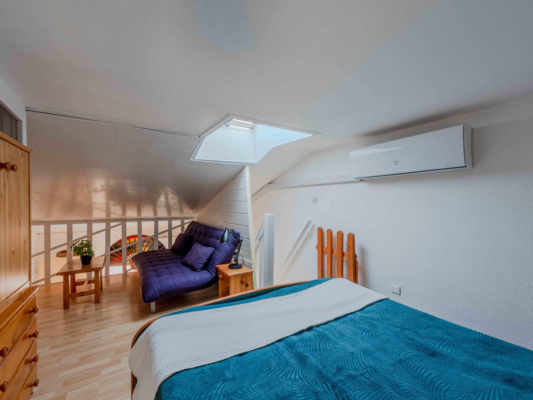 1-room studio 22 m2 on 2 levels. Living/dining room with 1 double sofabed (1 x 140 cm, length 190 cm), TV (flat screen), air conditioning. Exit to the terrace. Open kitchen (mini-oven, dishwasher, 3 ceramic glass hob hotplates, toaster, kettle, microwave, electric coffee machine). Shower/WC. Heating, air-conditioning. Upper floor: open gallery with 1 french bed (1 x 140 cm, length 190 cm), air conditioning. Terrace 15 m2. Terrace furniture, electric barbecue. Facilities: washing machine, dryer, iron. Internet (WiFi, extra). Parking. Please note: smoke alarm. Instead of an enclosed bedroom, some sleeping areas are located in an open-plan area (gallery, alcove, etc.). Offer by a private individual according to Art. 155, IV of CGI.