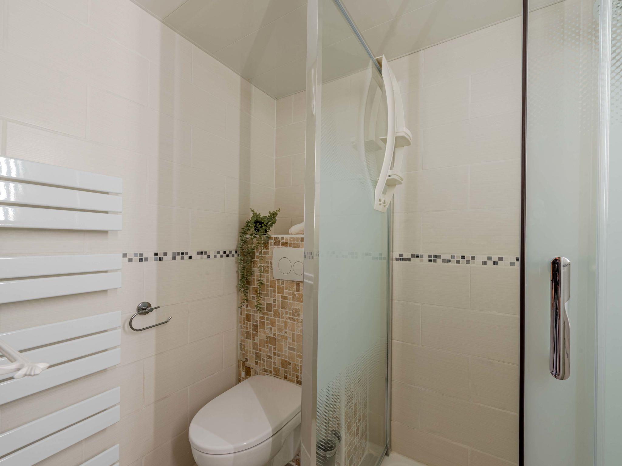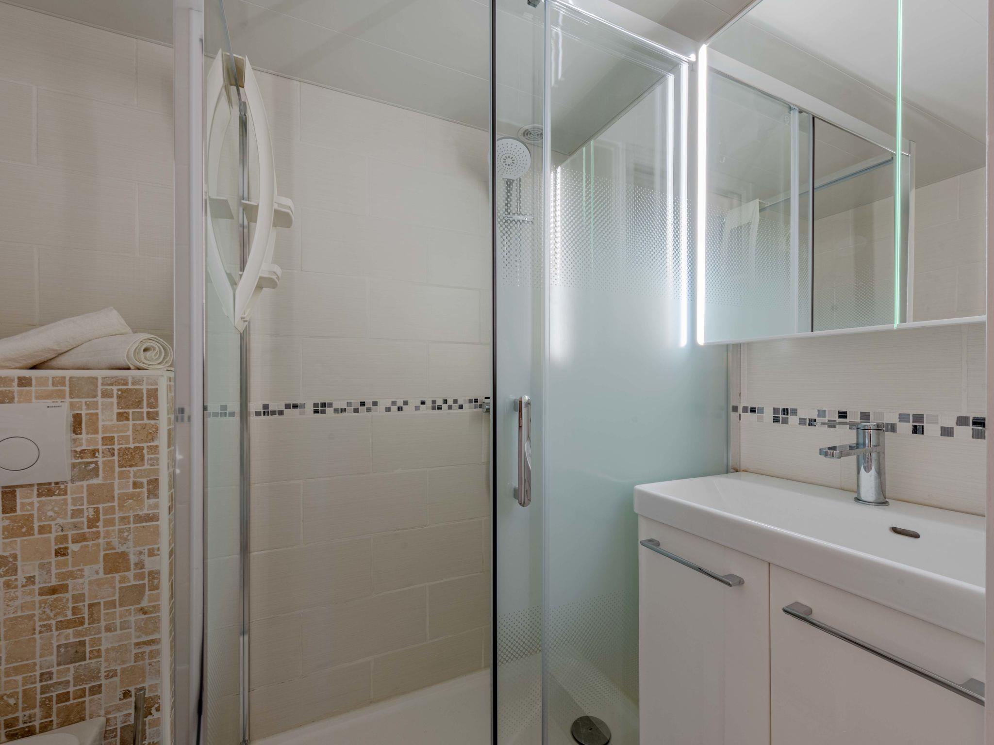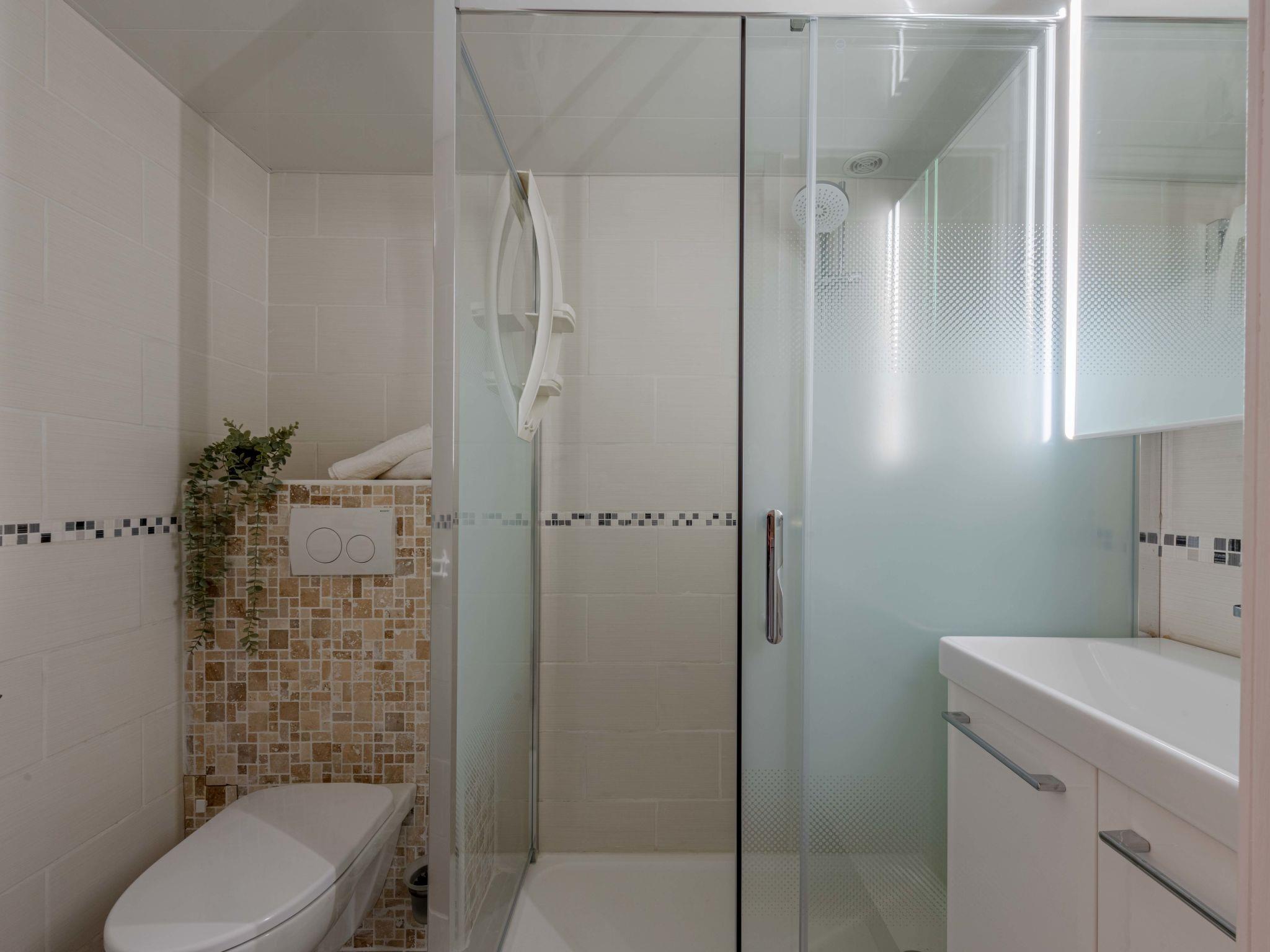 1-room studio 22 m2 on 2 levels. Living/dining room with 1 double sofabed (1 x 140 cm, length 190 cm), TV (flat screen), air conditioning. Exit to the terrace. Open kitchen (mini-oven, dishwasher, 3 ceramic glass hob hotplates, toaster, kettle, microwave, electric coffee machine). Shower/WC. Heating, air-conditioning. Upper floor: open gallery with 1 french bed (1 x 140 cm, length 190 cm), air conditioning. Terrace 15 m2. Terrace furniture, electric barbecue. Facilities: washing machine, dryer, iron. Internet (WiFi, extra). Parking. Please note: smoke alarm. Instead of an enclosed bedroom, some sleeping areas are located in an open-plan area (gallery, alcove, etc.). Offer by a private individual according to Art. 155, IV of CGI.