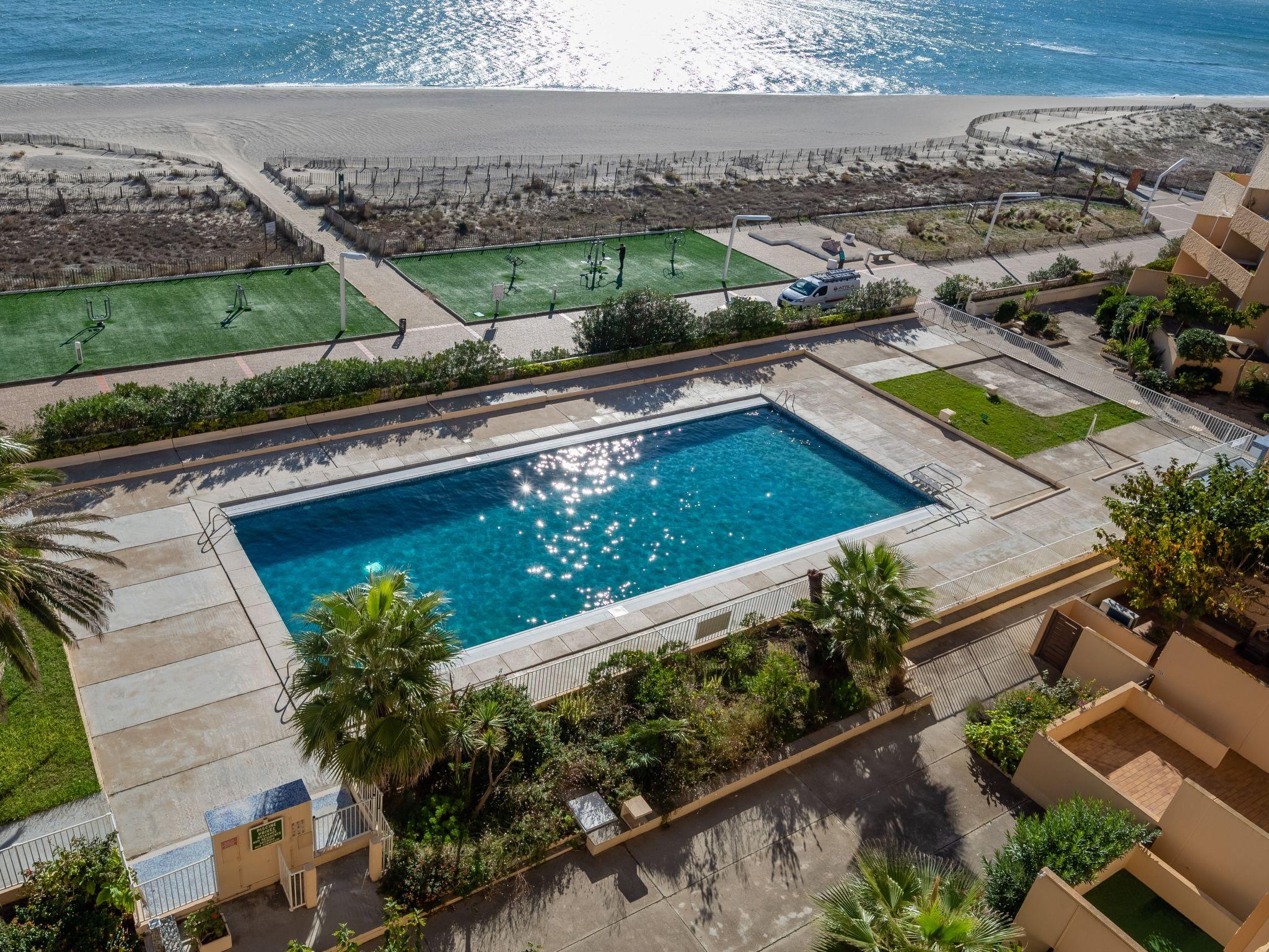 As part of the water restriction measures linked to drought in some of our departments, please note that the rental swimming pool may be closed by prefectural decree. Residence "Les Argonautes", 7 storeys. In the district of La Grande Plage, 50 m from the sea, 2.5 km from the lake, 50 m from the beach, direct access to the beach. For shared use: swimming pool angular (25 x 11 m, depth 150 - 220 cm, seasonal availability: 01.Jun. - 30.Sep.). In the complex: lift. Parking. Shop, grocery 80 m, supermarket 5 km, shopping centre, restaurant, bar, bakery, café 80 m, pedestrian zone 50 m, bicycle rental 80 m, bus stop "Lydia" 100 m, railway station "Perpignan" 22 km, sandy beach 50 m, diving center 5 km, outdoor swimming pool 7 km, nudist beach 10 km. Sports harbour 7 km, surf school 2 km, sailing school 3 km, tennis 3 km, indoor tennis centre 3 km, minigolf 2.5 km, riding stable 12 km. Nearby attractions: Aqualand Port Leucate 5 km, Réserve Africaine de Sigean 41 km, Parcours Aventure 5 km, cinéma 1.4 km, Téleski nautique site des dosses 5 km, Spot de windsurf 4 km. Well-known lakes can easily be reached: Etang de Leucate ou Salses 3 km, Lac de Villeneuve de La Raho 34 km. Hiking paths: Sentier du guetteur 8 km, La forteresse de salses 15 km, Sentier du littoral Collioure 40 km. Please note: entertainment in the season.