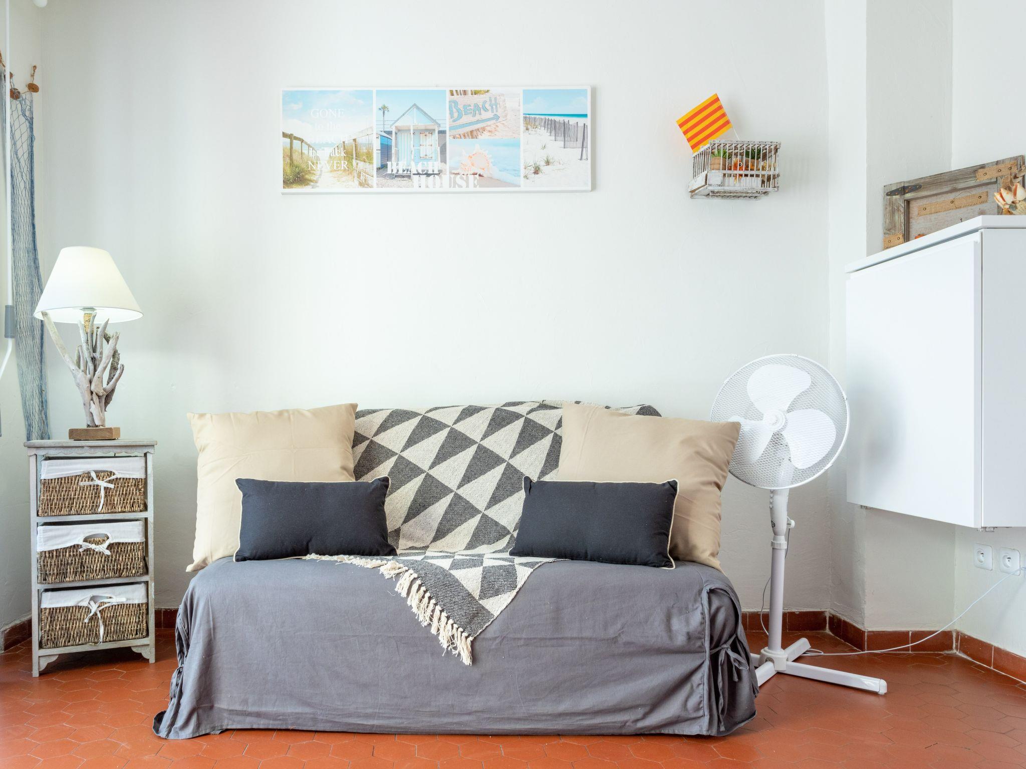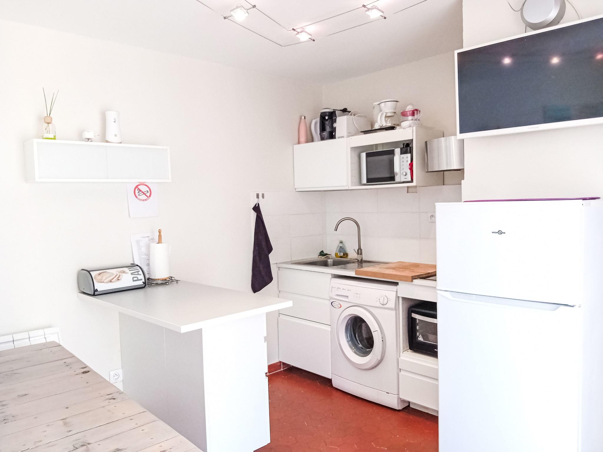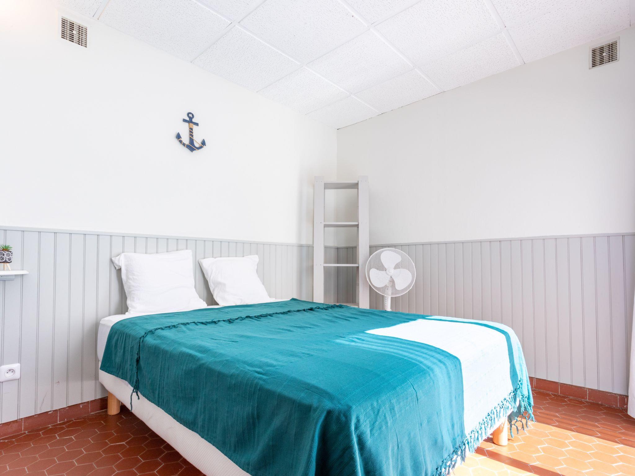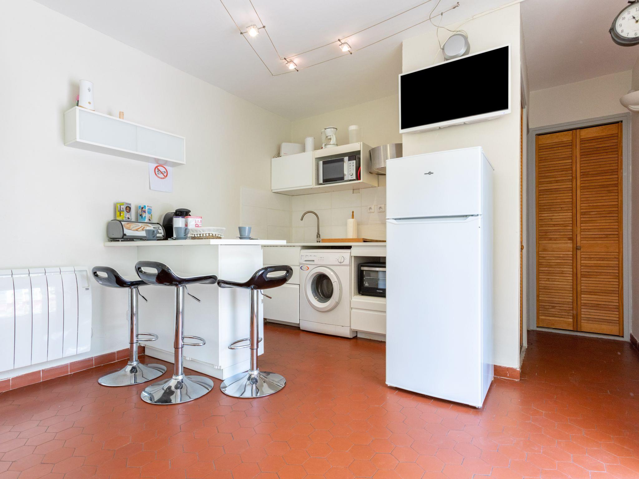 2-room apartment 29 m2, on the ground floor. Simple furnishings: living/dining room with 1 double sofabed (140 cm, length 190 cm), TV (flat screen), fan. Exit to the terrace. 1 room with 1 french bed (140 cm, length 190 cm), fan. Exit to the terrace. Kitchenette (mini-oven, 4 ceramic glass hob hotplates, toaster, microwave, freezer, electric coffee machine). Shower/WC. Electric heating. Terrace 15 m2. Terrace furniture. Facilities: washing machine. Internet (WiFi, extra). Parking space n 116. Please note: smoke alarm. FR6640270.4