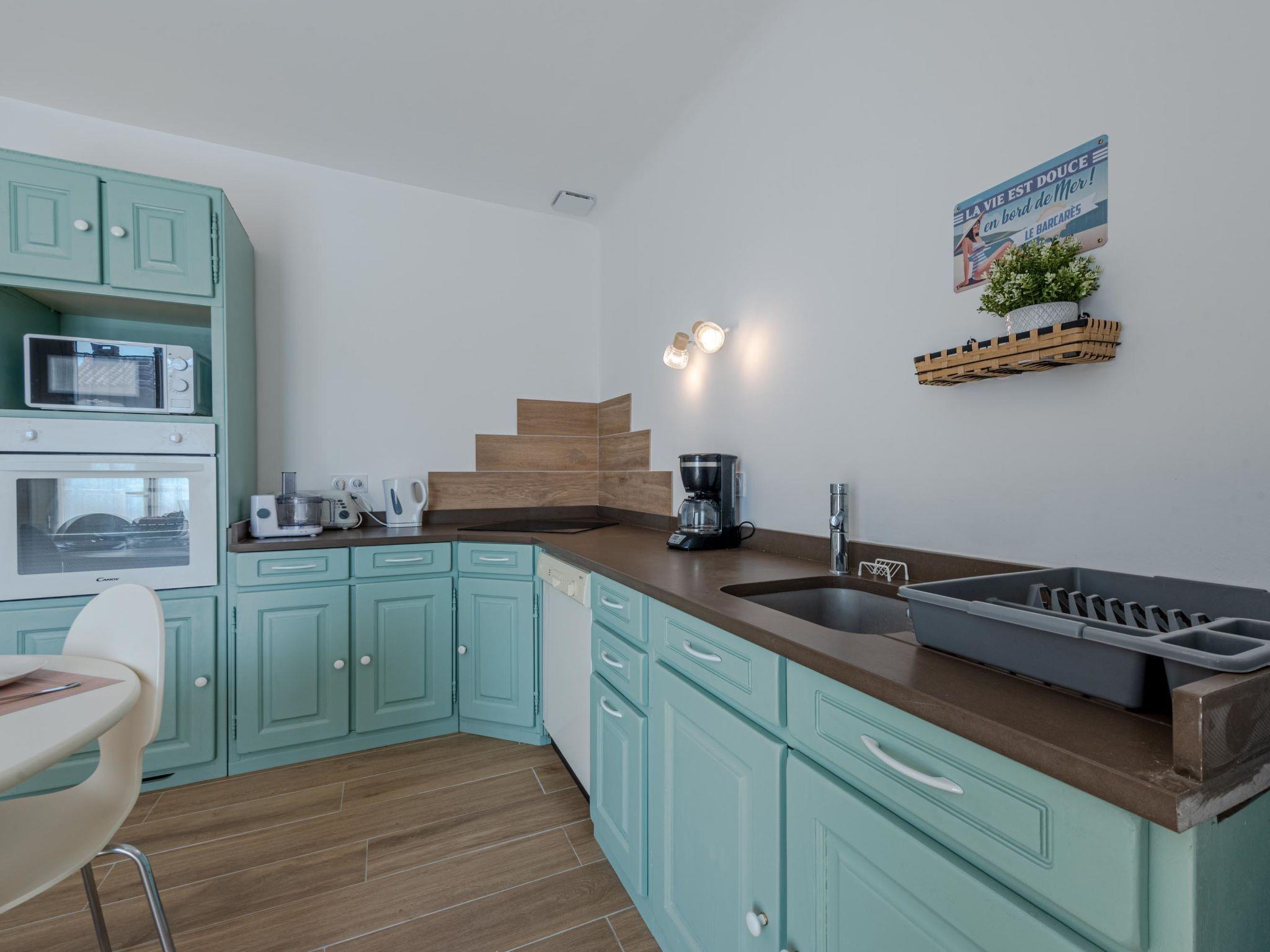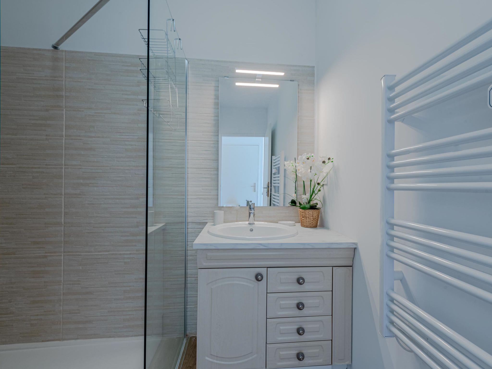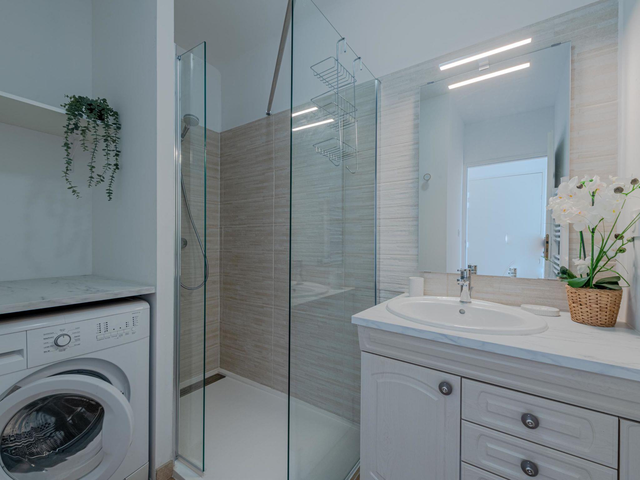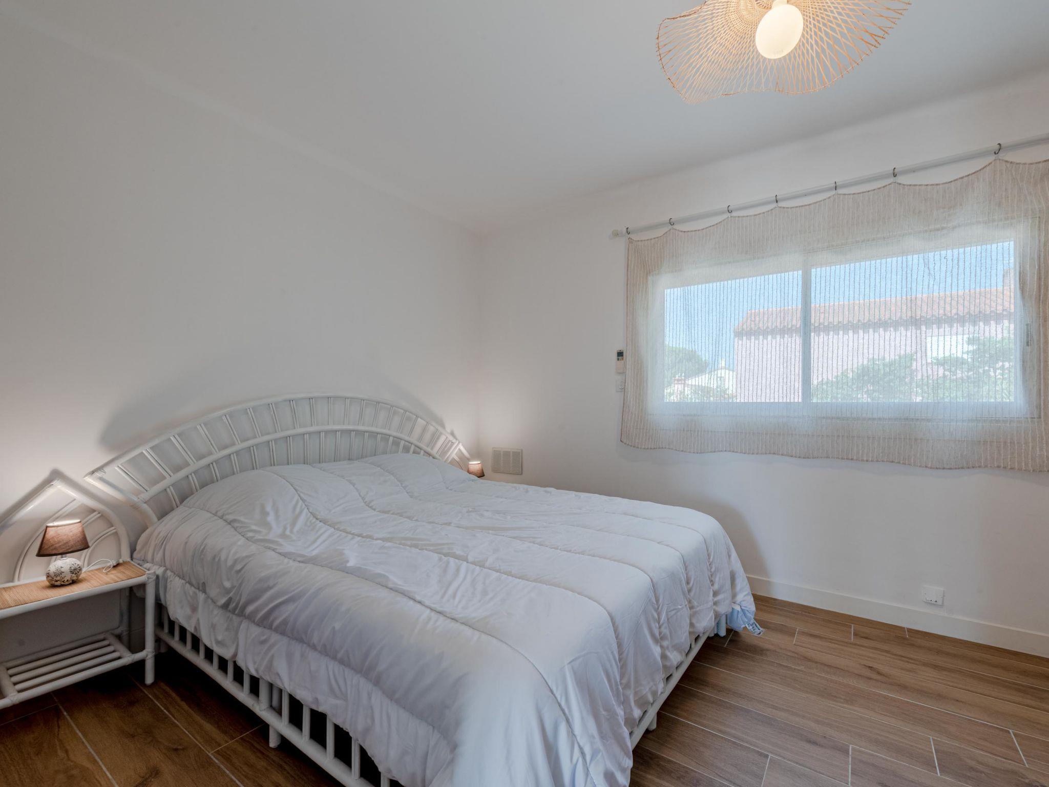 "La Terrasse", 2-room apartment 50 m2 on 1st floor, east facing position. Living/dining room with TV (flat screen). Exit to the terrace. 1 room with 1 x 2 bunk beds (90 cm, length 190 cm), 1 french bed (1 x 160 cm, length 200 cm). Open kitchen (oven, dishwasher, 3 ceramic glass hob hotplates, toaster, kettle, microwave, electric coffee machine). Exit to the terrace. Shower, sep. WC. Air-conditioning. Terrace 15 m2, east facing position. Terrace furniture. Facilities: washing machine. Internet (WiFi, free). Please note: smoke alarm. Offer by a private individual according to Art. 155, IV of CGI.