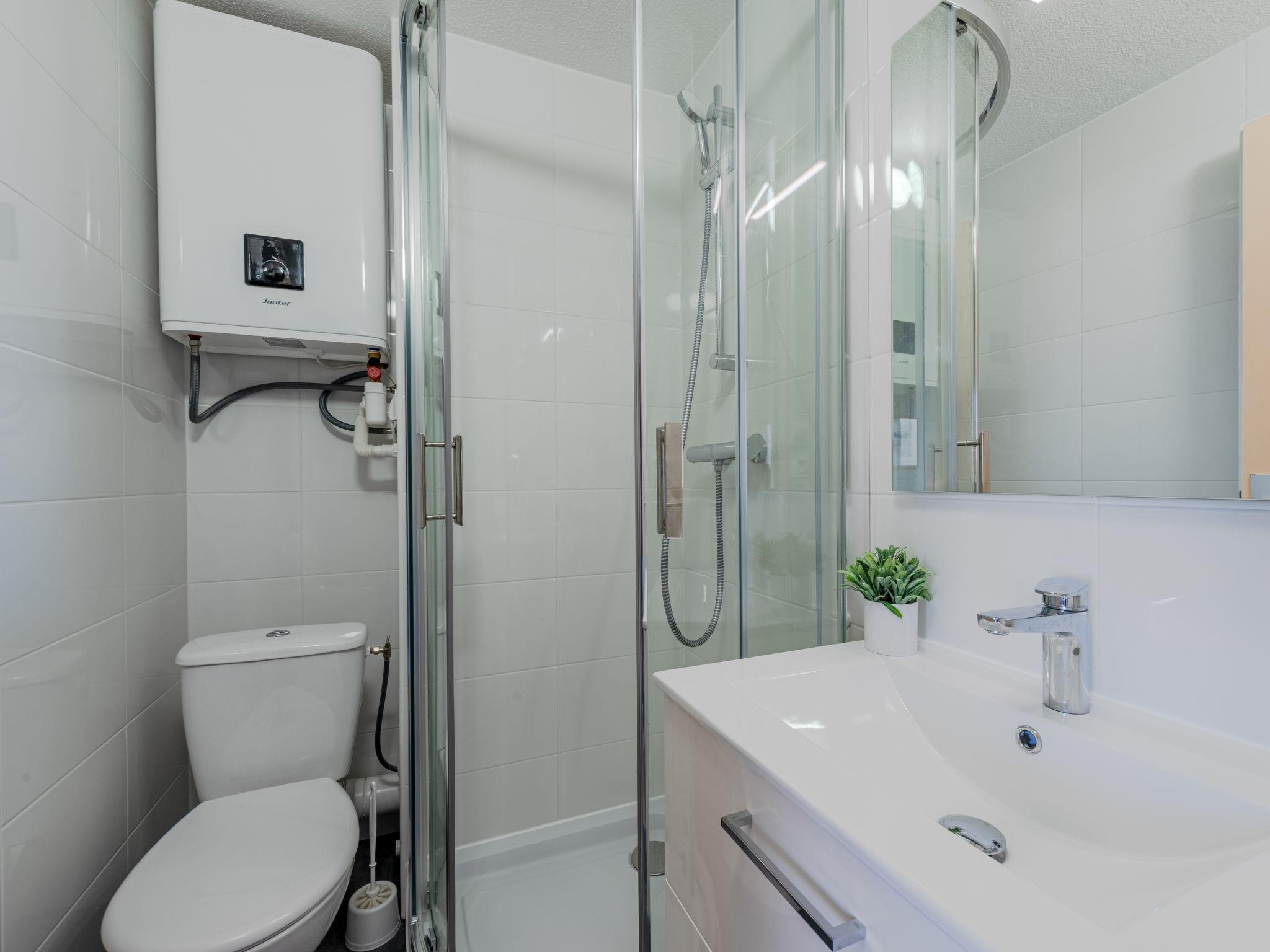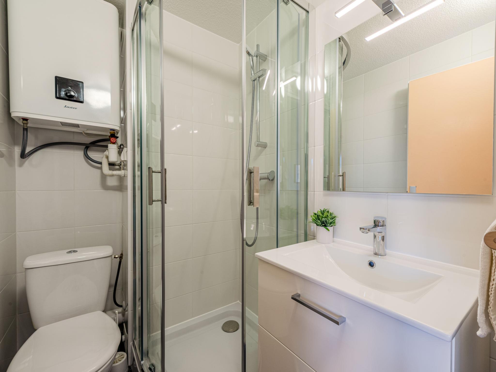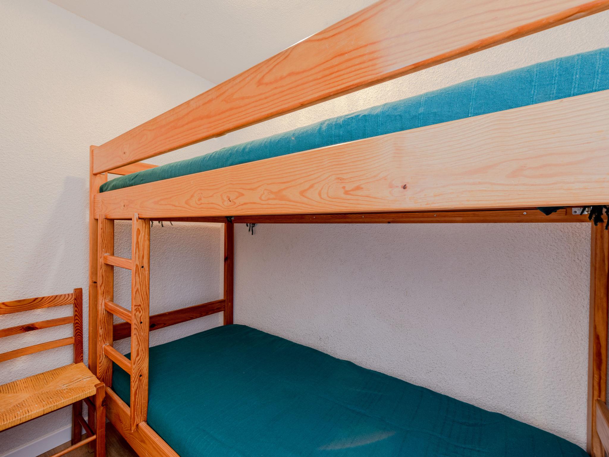 2-room apartment 32 m2 on 3rd floor. Living/dining room with TV. 1 room with 1 french bed (1 x 140 cm). Open sleeping alcove with 1 x 2 bunk beds (80 cm). Kitchenette (2 hot plates, microwave, electric coffee machine). Shower/WC. No heating option. Small balcony 4 m2. Terrace furniture. Beautiful view of the sea. Facilities: Internet (WiFi, extra). Parking. Please note: smoke alarm. Instead of an enclosed bedroom, some sleeping areas are located in an open-plan area (gallery, alcove, etc.).