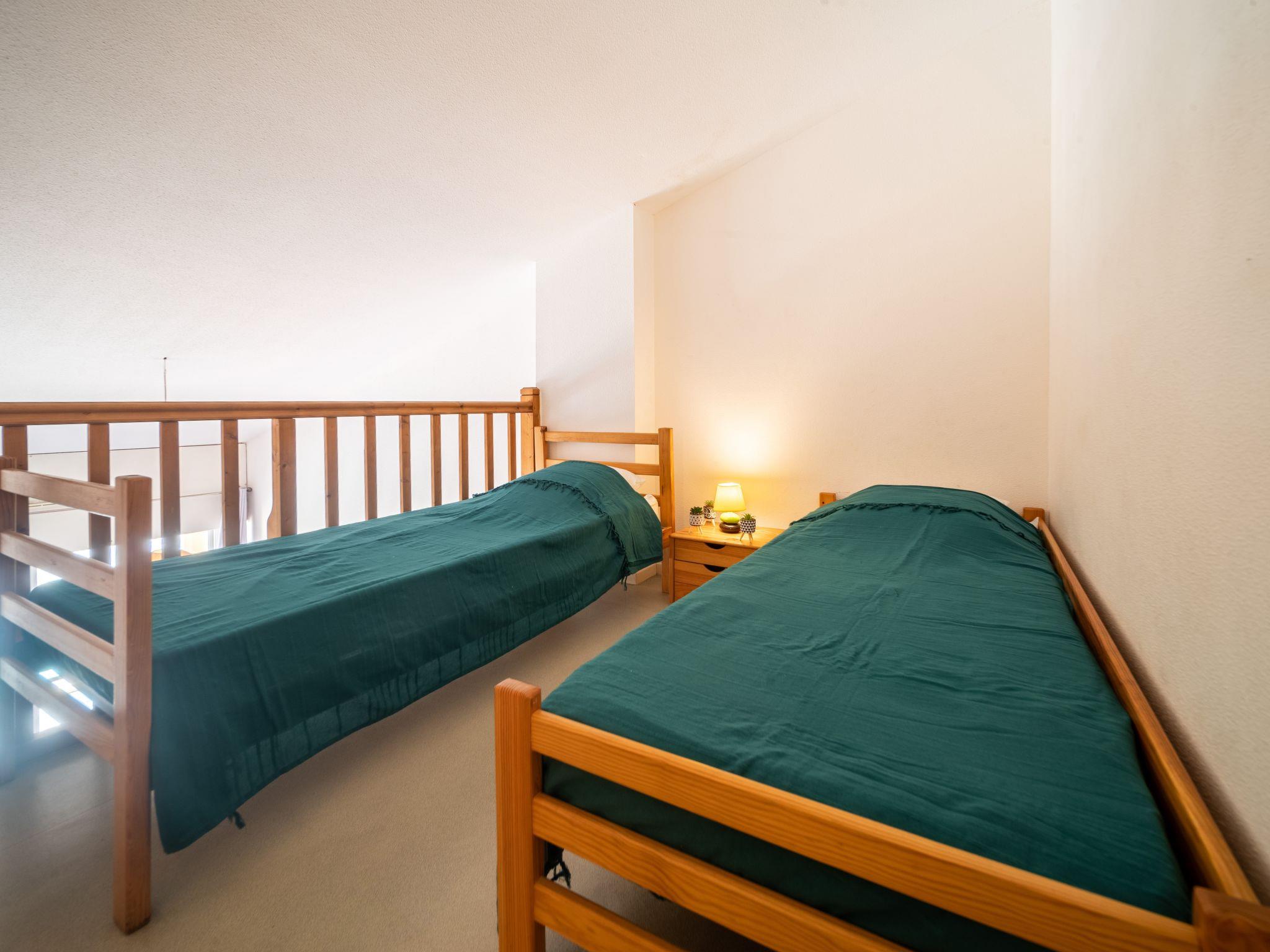 2-room apartment 39 m2 on 3rd floor, south facing position. Practical furnishings: living/dining room with sloping ceilings with 1 double sofabed (1 x 140 cm, length 190 cm), TV (flat screen). Exit to the terrace. 1 room with 2 beds (90 cm, length 190 cm). Open kitchen (4 hot plates, oven, kettle, microwave, electric coffee machine). Shower/WC. Electric heating. Upper floor: gallery with 2 beds (90 cm, length 190 cm). Terrace 10 m2, south facing position. Terrace furniture. Side view of the sea. Facilities: iron. Internet (WiFi, extra). Parking space n 100. Please note: smoke alarm. Instead of an enclosed bedroom, some sleeping areas are located in an open-plan area (gallery, alcove, etc.).