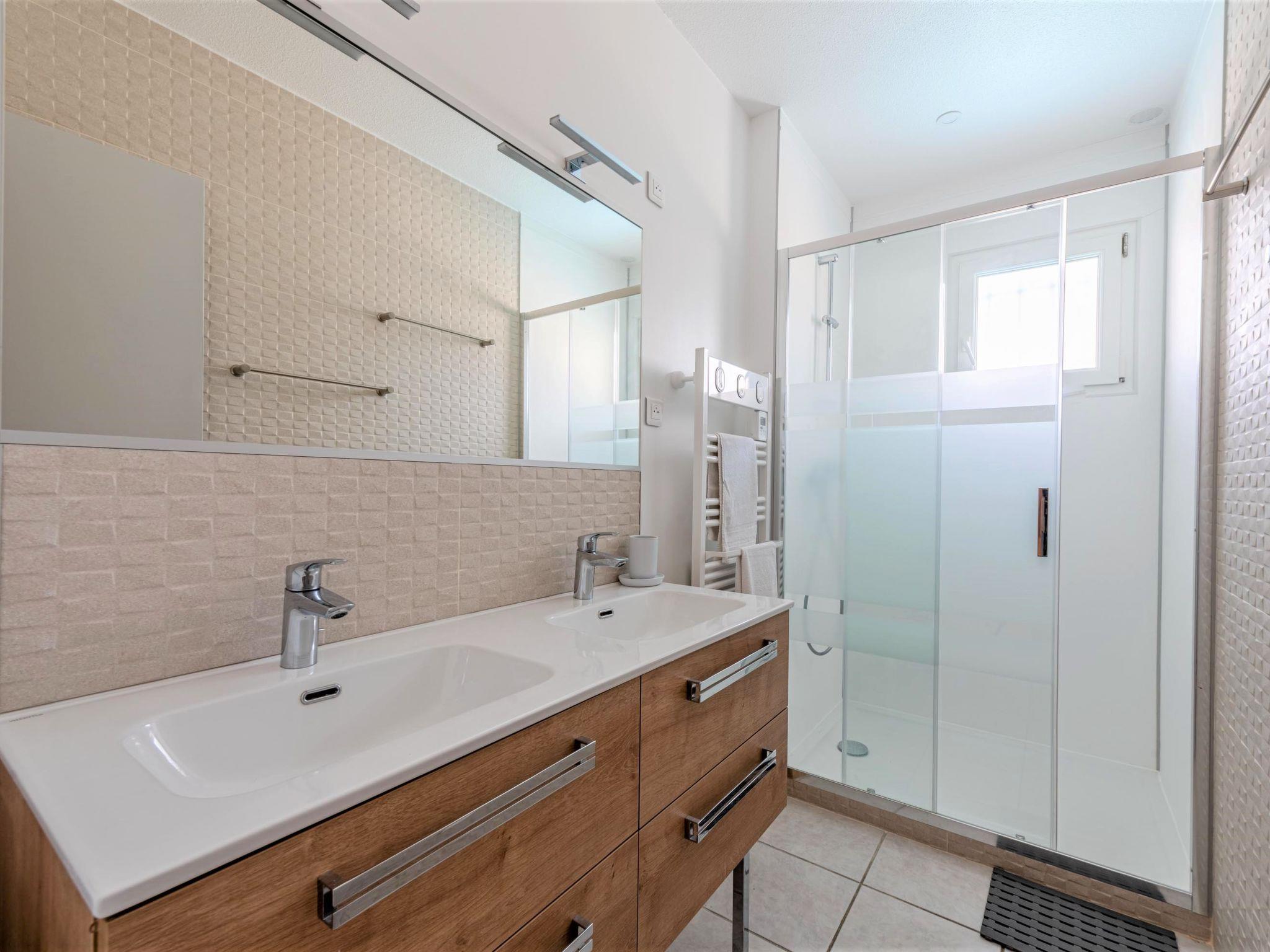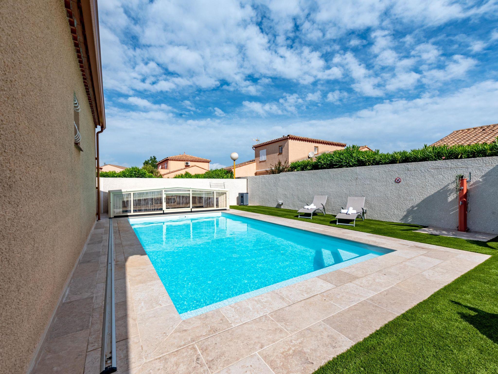 Villa "Ladine". In the centre of Barcarès village, 300 m from the sea, 250 m from the beach. Private: garden, swimming pool angular, heated, fenced (3 x 7 m, depth 120 - 170 cm, seasonal availability: 15.Jun. - 15.Sep.) with internal staircase and salt-electrolysis pool-cleaning system. Outdoor shower, terrace, pool maintenance by the owner/gardener. Shop 100 m, grocery, supermarket 500 m, restaurant, bar 600 m, bakery 500 m, café 600 m, bus stop "Méditerranée" 450 m, railway station "Perpignan" 20 km, nudist beach 16 km. Sports harbour 3 km, tennis 5 km, minigolf 5 km, riding stable 8 km. Nearby attractions: Aqualand de Port Leucate 5 km, Reserve Africaine de Sigean 41 km, Fort de Salses 20 km, parcours aventure 7 km, Téleski nautique site des dosses 7 km, Spot de windsurf 7 km. Well-known lakes can easily be reached: Etang de Leucate ou Salses 7 km, Lac de Villeneuve de La Raho 28 km. Hiking paths: Sentier du guetteur 8 km, la forteresse de salses 15 km, Sentier du littoral Collioure 40 km. Please note: entertainment in the season.