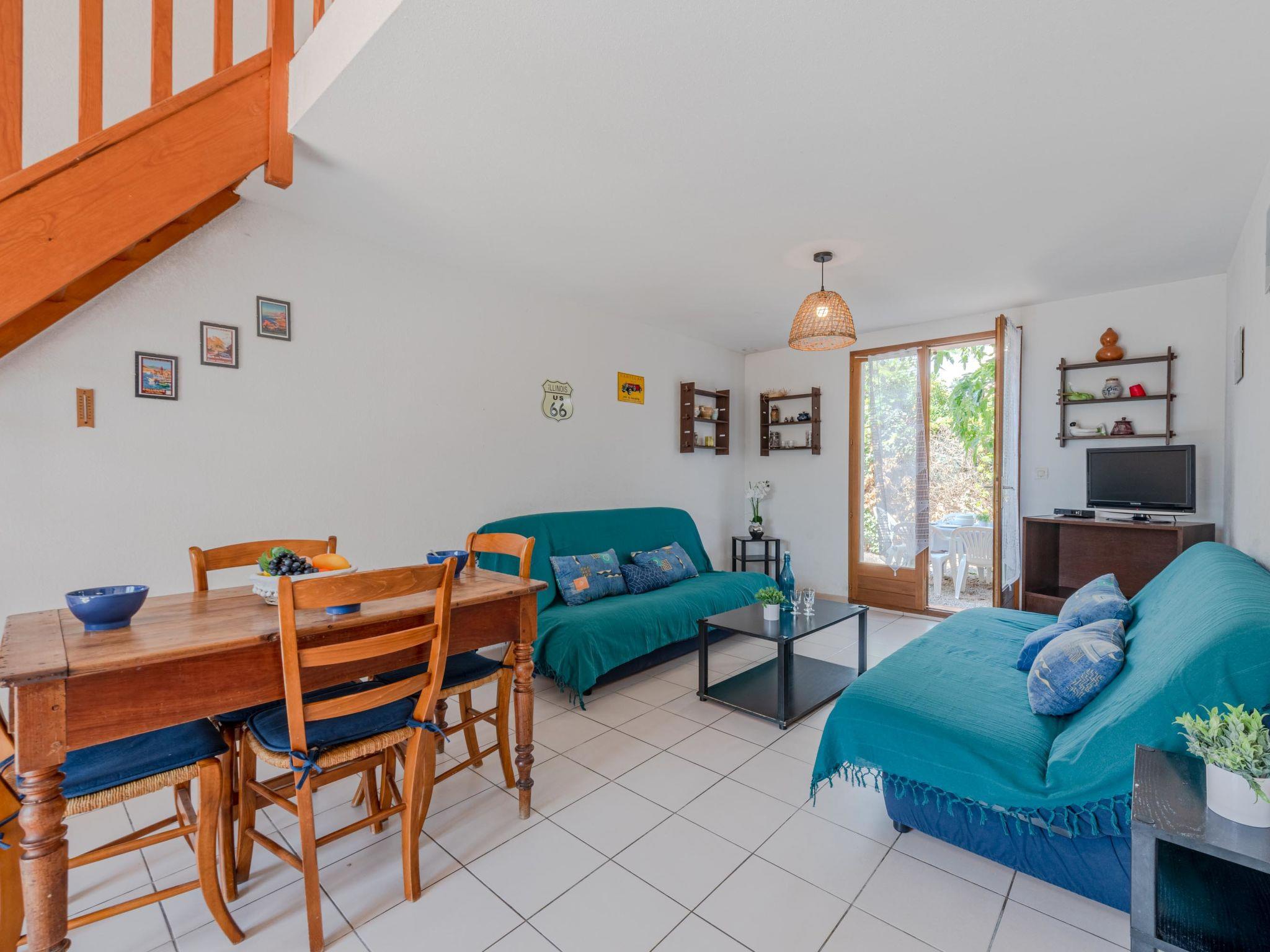 Residence "Hameau des Tamarins". In the district of village, 250 m from the sea, 200 m from the beach. Parking at the house. Grocery 200 m, supermarket 500 m, restaurant, bar, bakery 300 m, bus stop "Le Port" 400 m, railway station "Perpignan" 20 km. Sports harbour 500 m. Nearby attractions: Aqualand Port Leucate 7 km, Réserve Africaine de Sigean 40 km, site des dosses 7 km, parcours aventure 8 km, cinema 7 km. Well-known lakes can easily be reached: Lac de Villeneuve de la Raho 34 km, Etang de Leucate ou salses 11 km. Hiking paths: Sentier du guetteur 8 km, la forteresse de salses 15 km, Sentier du littoral Collioure 40 km.