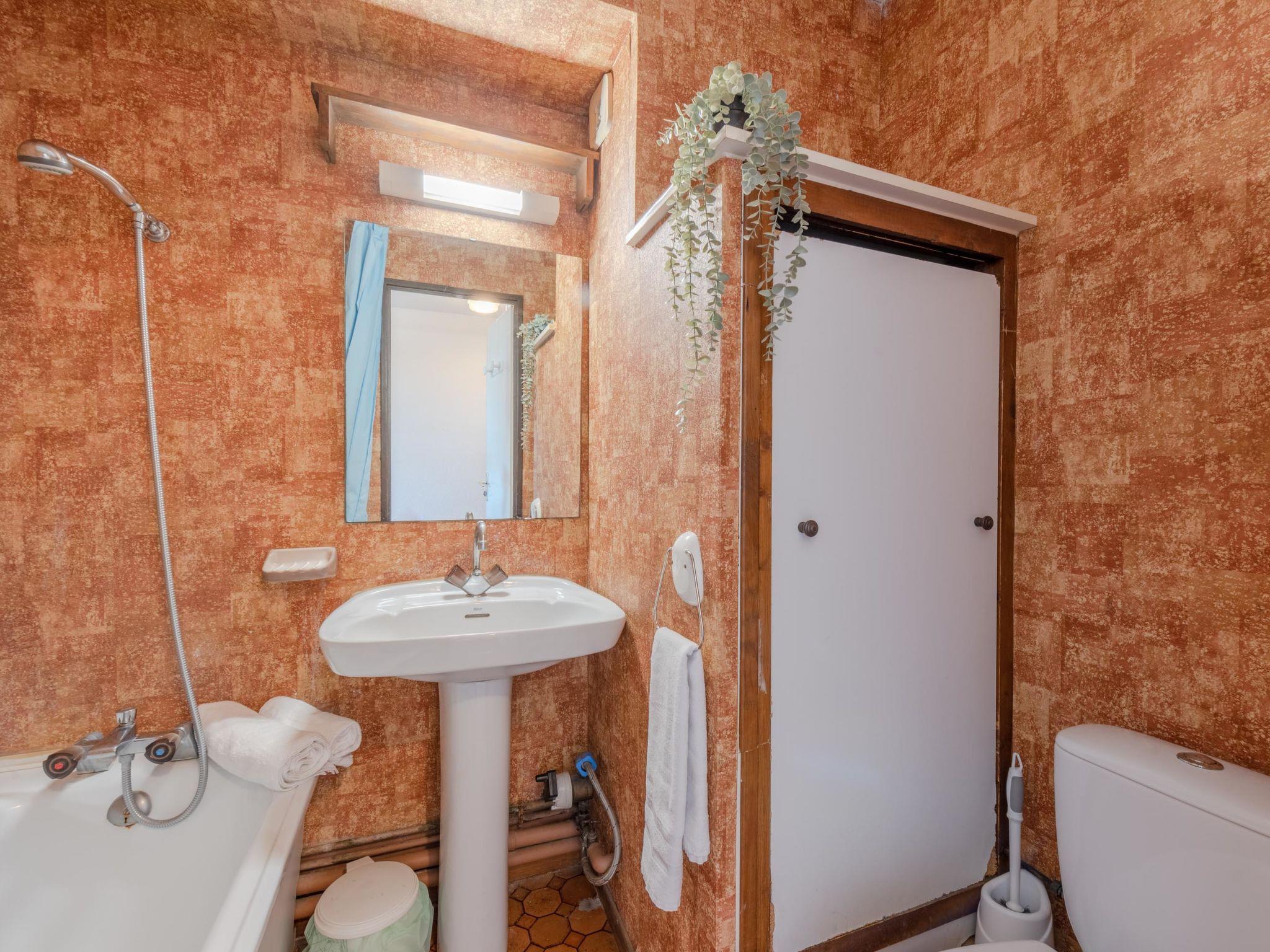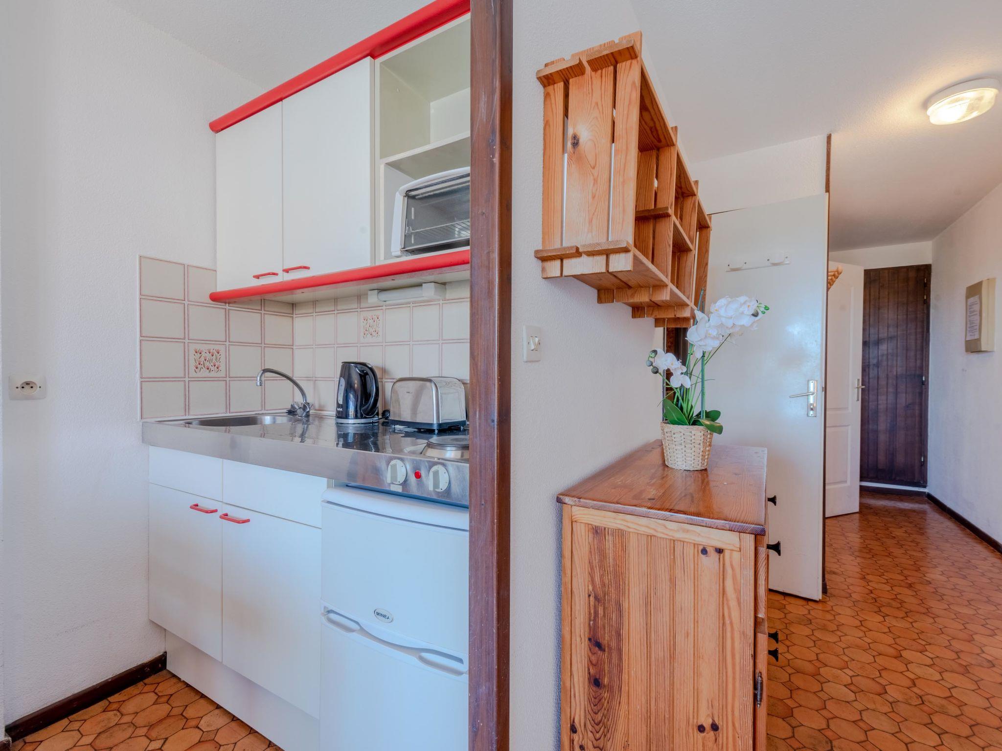 2-room apartment 24 m2 on 2nd floor. Living/dining room with 1 double sofabed and TV. 1 room with 2 beds (80 cm). Kitchenette (2 hot plates, mini-oven, microwave, electric coffee machine). Bath/WC. No heating option. Balcony 4 m2, east facing position. Terrace furniture. View of the swimming pool. Facilities: Internet (WiFi, extra). Parking. Please note: maximum 1 pet/ dog allowed. Smoke alarm.