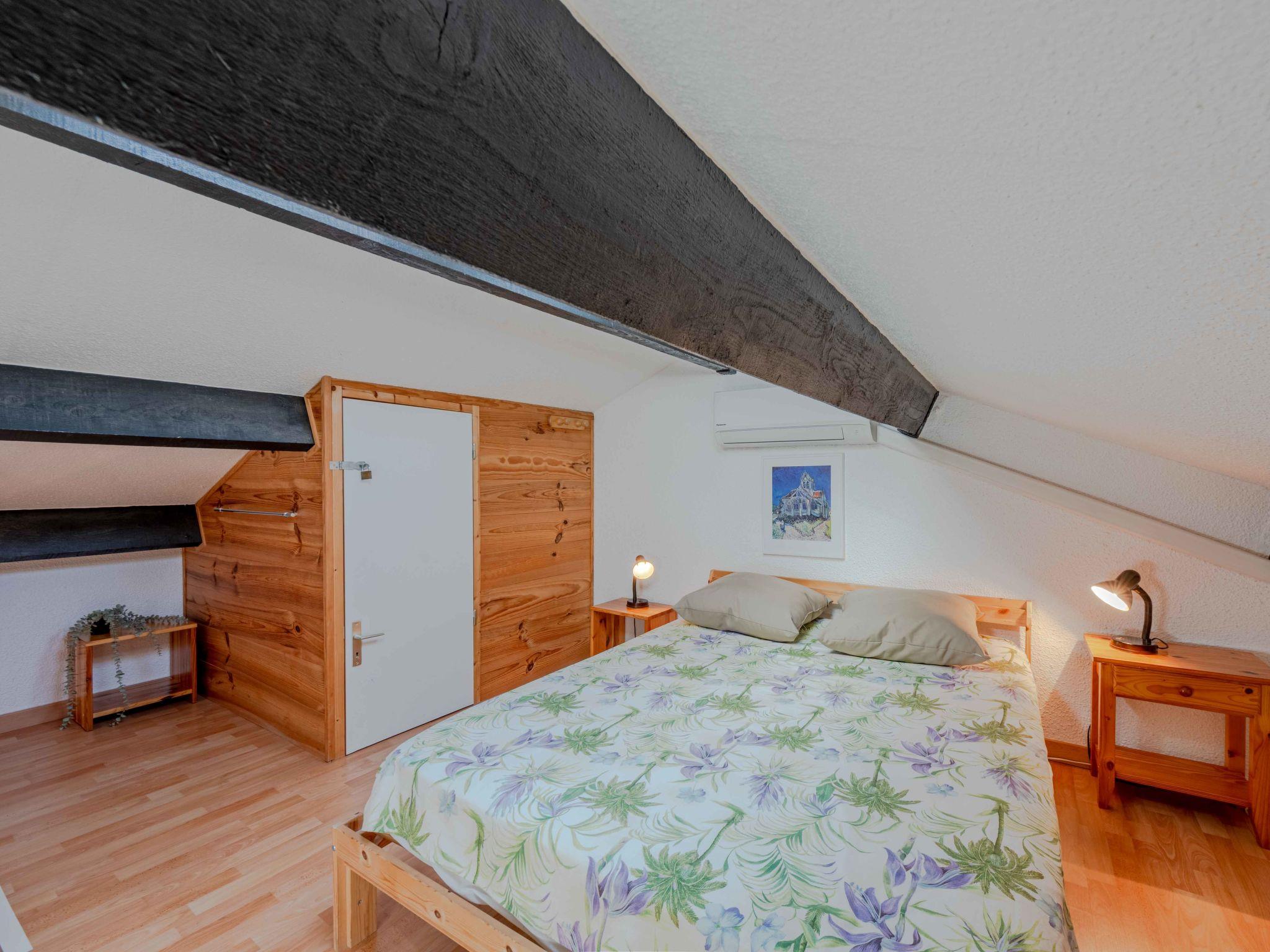 4-room terraced house 60 m2 on 2 levels, on the ground floor, south facing position. Living/dining room with TV (flat screen). Exit to the terrace. Kitchenette (4 hot plates, oven, dishwasher, toaster, kettle, microwave, freezer, electric coffee machine). Sep. WC. Air-conditioning. Upper floor: (spiral staircase), 1 room with 1 french bed (1 x 140 cm, length 190 cm). Exit to the loggia. 1 room with 1 x 2 bunk beds (80 cm, length 190 cm). Bath/WC. Air-conditioning. 2nd upper floor: gallery with 1 french bed (1 x 140 cm, length 190 cm). Terrace 10 m2. Terrace furniture, barbecue. View of the lake and the mountains. Facilities: washing machine. Internet (WiFi, extra). Parking. Please note: smoke alarm. Offer by a private individual according to Art. 155, IV of CGI.