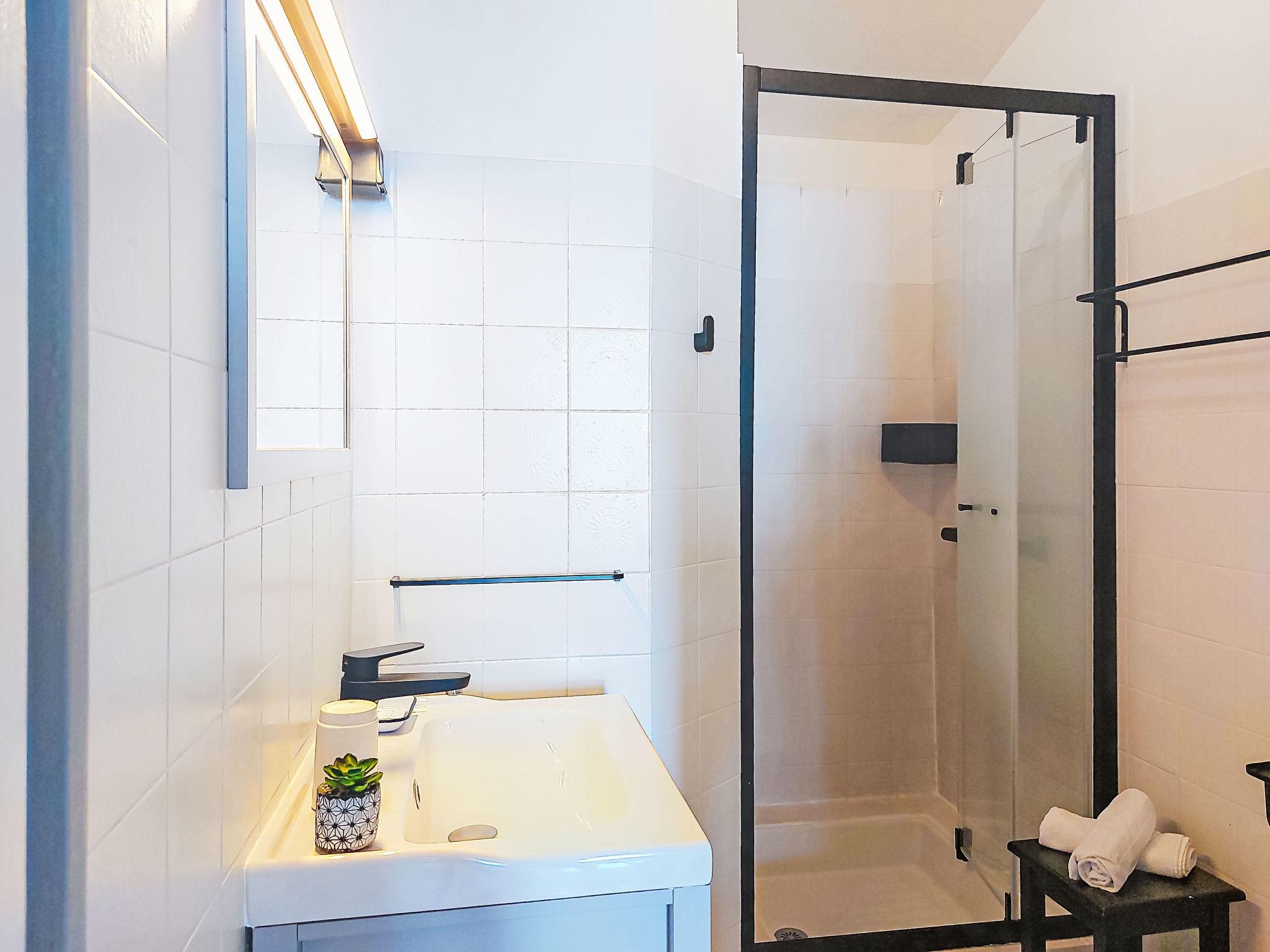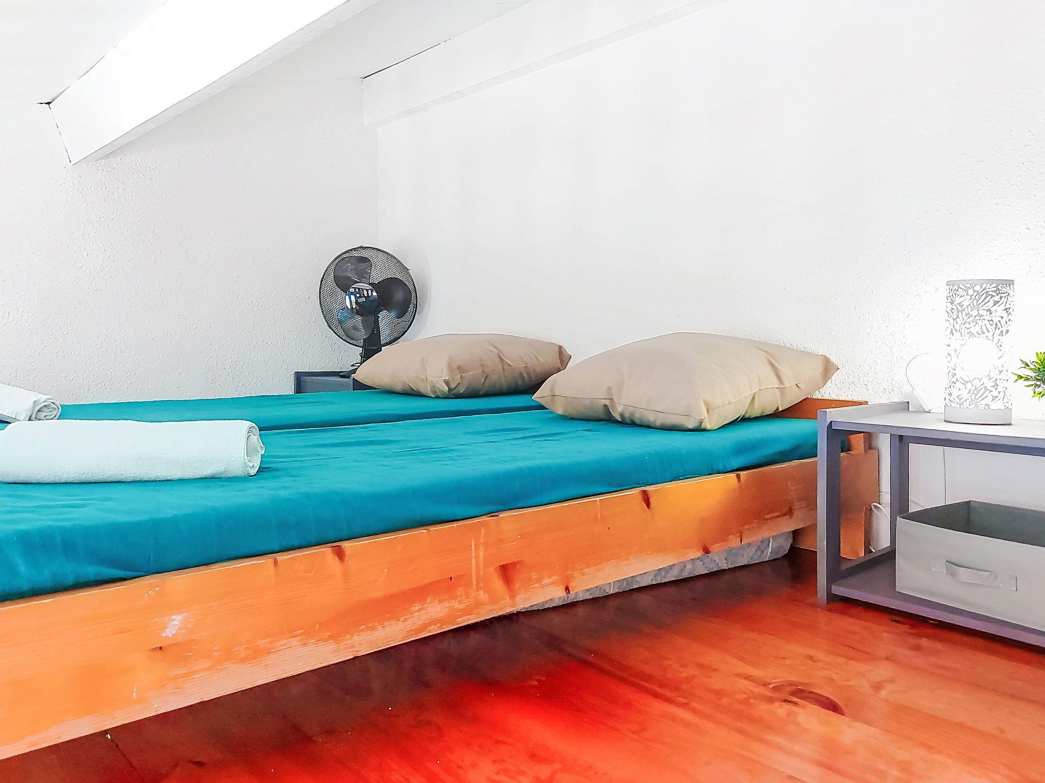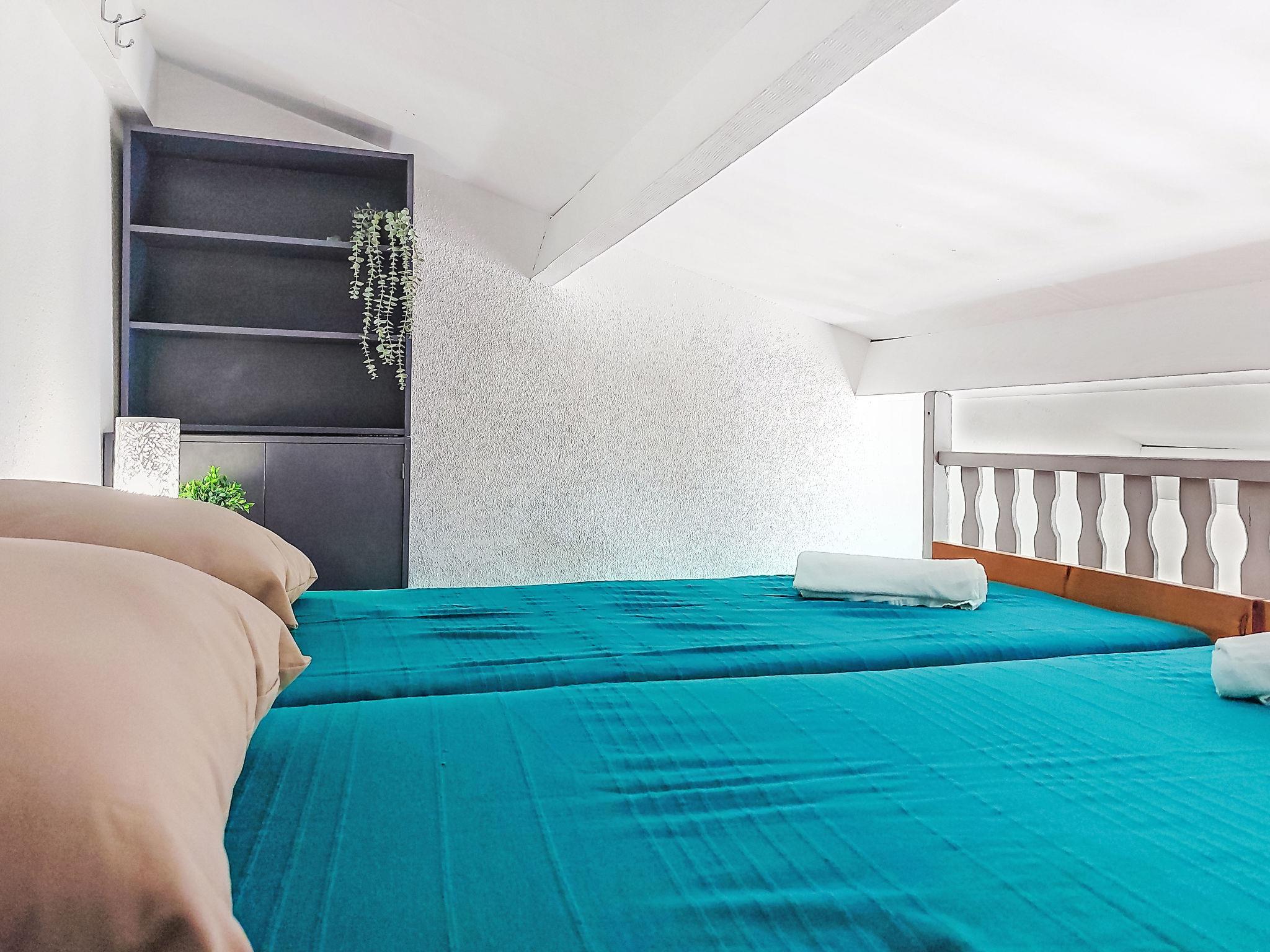 2-room apartment 31 m2 on 2nd floor, south facing position. Living/dining room with TV (flat screen). Exit to the terrace. 1 room with 1 french bed (1 x 140 cm, length 190 cm). Open kitchen (2 ceramic glass hob hotplates, kettle, microwave, grill, electric coffee machine). Shower/WC. Air-conditioning. Upper floor: (steep stair) gallery with 2 beds (90 cm, length 190 cm). Terrace 6 m2. Terrace furniture. Beautiful view of the lake and the mountains. Facilities: washing machine. Internet (WiFi, extra). Parking. Please note: smoke alarm. Offer by a private individual according to Art. 155, IV of CGI.