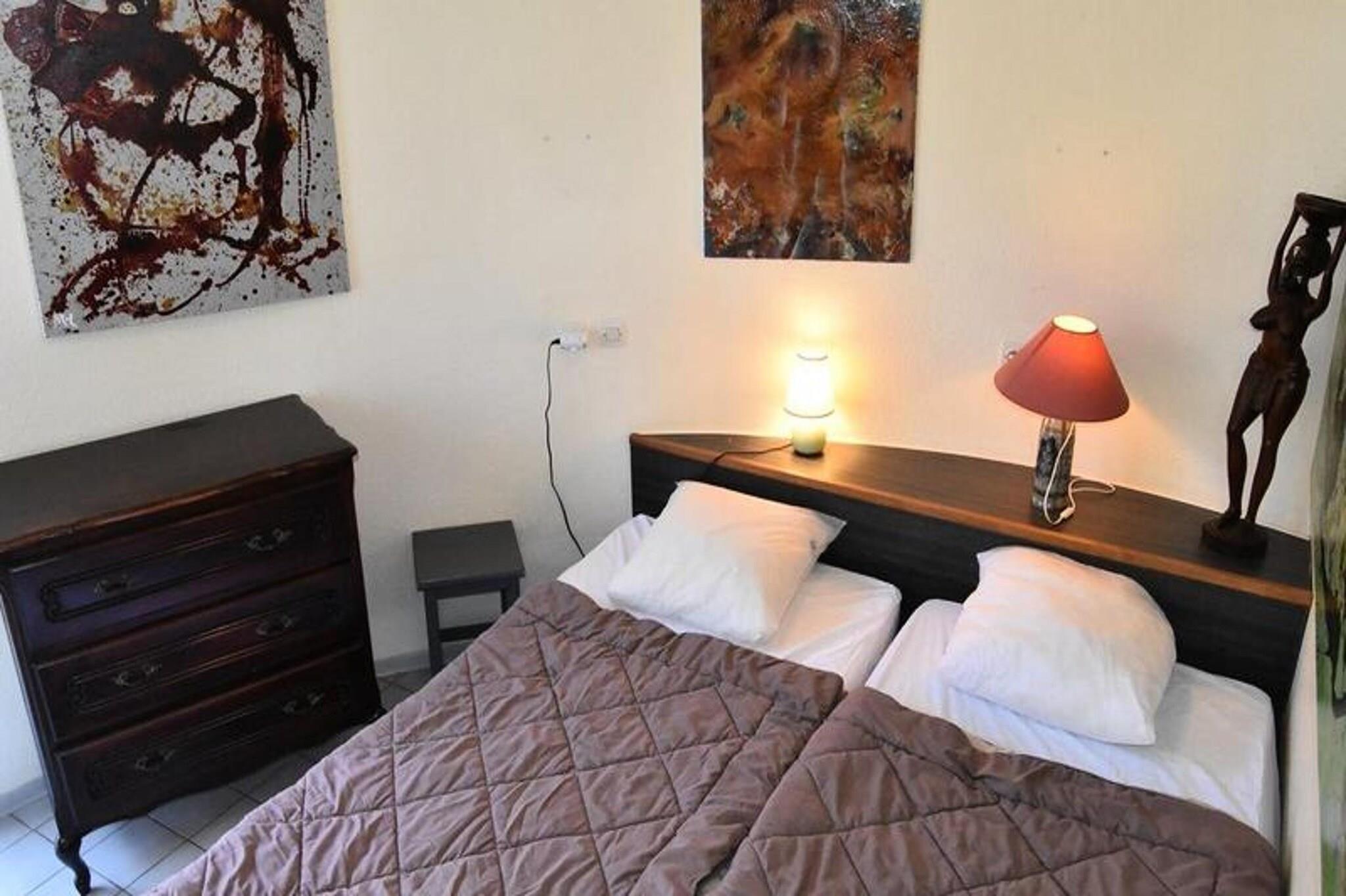 Denne charmerende 3-værelses hyttevilla er perfekt til op til seks gæster, med et soveværelse med dobbeltseng, et soveværelse med to enkeltsenge og en hytte med køjesenge. Ejendommen omfatter væsentlige faciliteter såsom tv, elektrisk kogeplade, ovn, mikroovn, opvaskemaskine og køleskab med fryser. Gæsterne kan nyde det rummelige 41 m² store opholdsareal og slappe af i den omkringliggende have, som spænder over 160 m². Hyttevillaen er ikke-kæledyrsvenlig og giver et behageligt, familievenligt miljø. Ejendommen ligger kun 1 km fra stranden og tilbyder direkte adgang til den fredfyldte marinesø, hvilket gør den ideel for udendørsentusiaster og strandelskere. Inden for komplekset finder du et minimarked til daglige fornødenheder samt caféer og butikker i nærheden. Uanset om du ønsker at udforske lokale attraktioner eller blot nyde en afslappet dag ved vandet, tilbyder denne villa den perfekte base. Villaen har et fuldt udstyret køkken med moderne apparater til at tilberede måltider, mens badeværelset byder på væsentlige bekvemmeligheder. Til afslapning kan gæsterne drage fordel af den fælles swimmingpool (med forbehold for potentielle lukninger på grund af vandrestriktioner) og få adgang til stedets vægtrum. Yderligere bekvemmeligheder inkluderer kollektiv parkering ved boligen, hvilket sikrer nem adgang til ejendommen.