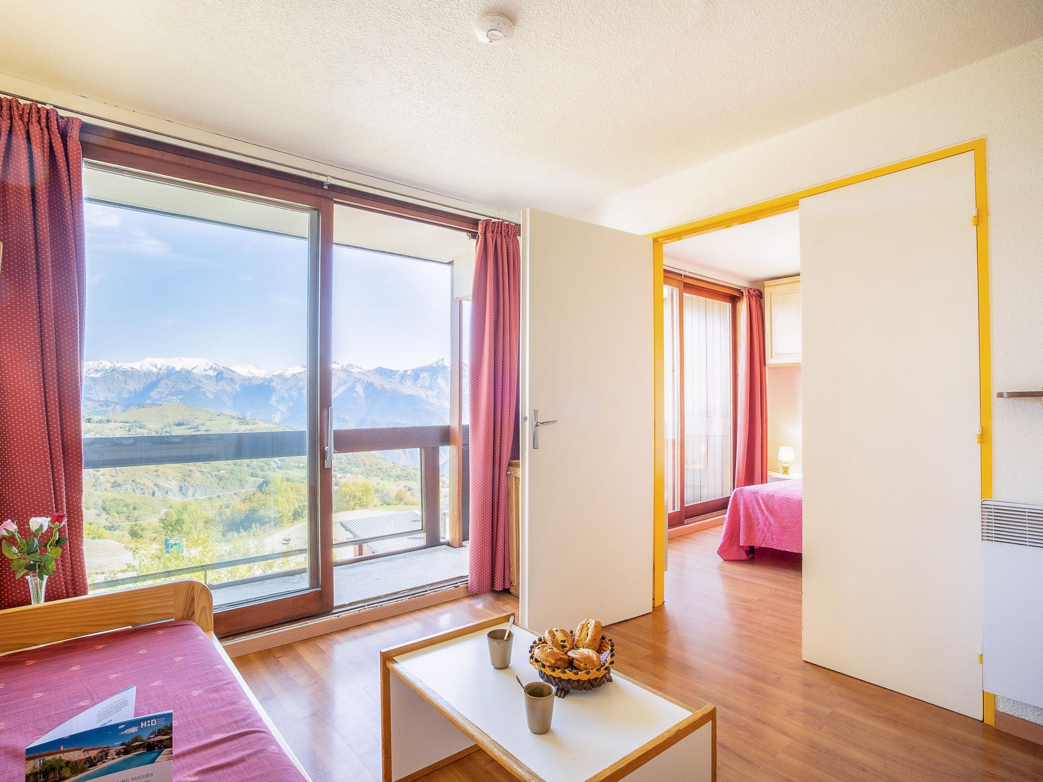 2-room apartment 36 m2 on 5th floor, north facing position. Simple furnishings: living/dining room with 1 pull-out bed (2 pers. 2 x 80 cm, length 190 cm), TV (flat screen). Exit to the balcony, north facing position. 1 room with 1 french bed (140 cm, length 190 cm). Exit to the balcony, north facing position. Alcove with 1 x 2 bunk beds (80 cm, length 190 cm). Kitchenette (2 hot plates, mini-oven, microwave, electric coffee machine, raclette grill). Bathroom, sep. WC. Electric heating. Parquet floors. Balcony 9 m2, north facing position. View of the mountains and the valley. Facilities: iron, hair dryer. Internet (WiFi, extra). Please note: maximum 1 pet/ dog allowed. Smoke alarm. Instead of an enclosed bedroom, some sleeping areas are located in an open-plan area (gallery, alcove, etc.). Offer by a private individual according to Art. 155, IV of CGI.