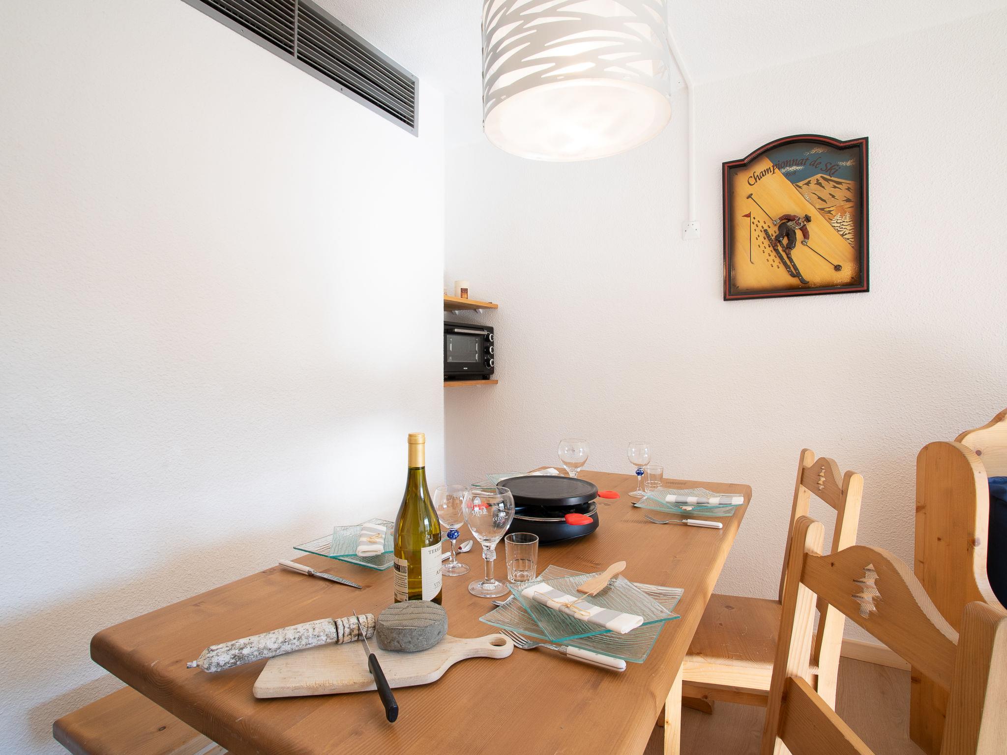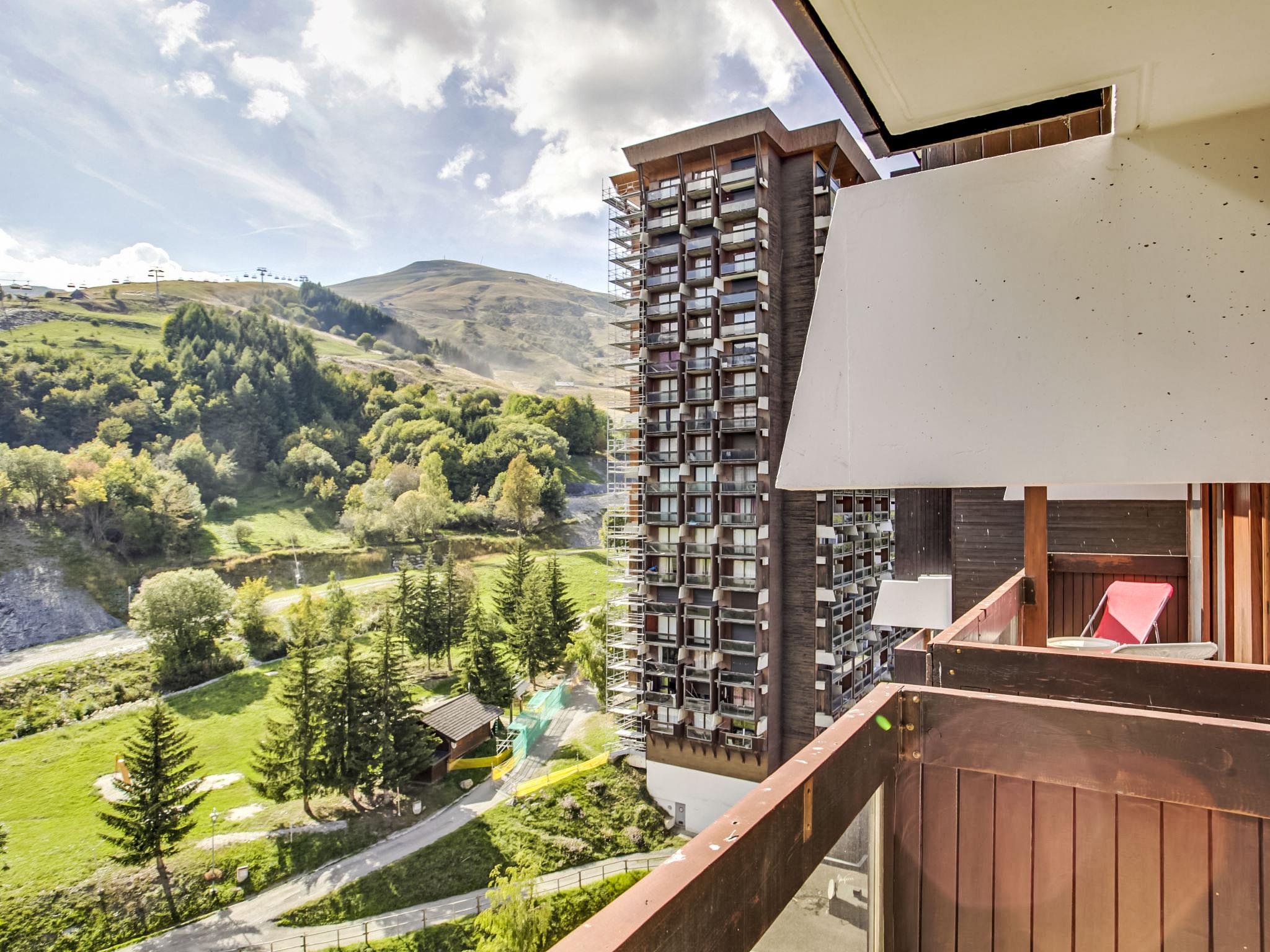 1-room studio 28 m2 on 14th floor, south facing position. Comfortable and beautiful furnishings: living/dining room with 1 pull-out bed (2 pers. 2 x 80 cm, length 190 cm), TV (flat screen). Exit to the balcony, south facing position. Alcove with curtain with 1 double bed (140 cm, length 190 cm). Kitchenette (2 hot plates, mini-oven, dishwasher, toaster, kettle, microwave, freezer, electric coffee machine, Capsules for coffee machine (SENSEO), raclette grill). Bathroom, sep. WC, double hand-basin. Heating. Parquet floors. Balcony 4 m2, south facing position. Deck chairs (2). View of the ski run. Facilities: iron, hair dryer. Internet (WiFi, extra). Please note: non-smokers only. Maximum 1 pet/ dog allowed. Smoke alarm. Instead of an enclosed bedroom, some sleeping areas are located in an open-plan area (gallery, alcove, etc.). Offer by a private individual according to Art. 155, IV of CGI.