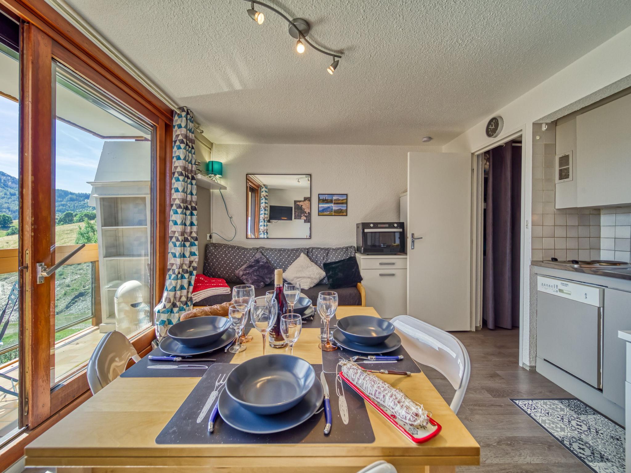 2-room apartment 33 m2 on 7th floor. Simple and beautiful furnishings: living/dining room with 1 pull-out bed (2 pers. 2 x 80 cm, length 190 cm), TV (flat screen). Exit to the balcony, east facing position. 1 room, north facing position with 1 x 1 bunk beds (90 cm, length 200 cm), 1 french bed (140 cm, length 200 cm). Open kitchen (2 hot plates, dishwasher, toaster, kettle, freezer, electric coffee machine, Capsules for coffee machine (dolce gusto) extra, raclette grill, combination microwave, fondue Set (cheese)). Bathroom, sep. WC. Electric heating. Parquet floors. Balcony 4 m2, east facing position. Balcony furniture, deck chairs (2). View of the valley and the ski run. Facilities: washing machine, iron, baby cot for up to 2 year olds, hair dryer. Internet (WiFi, extra). Please note: non-smokers only. Smoke alarm. Offer by a private individual according to Art. 155, IV of CGI.