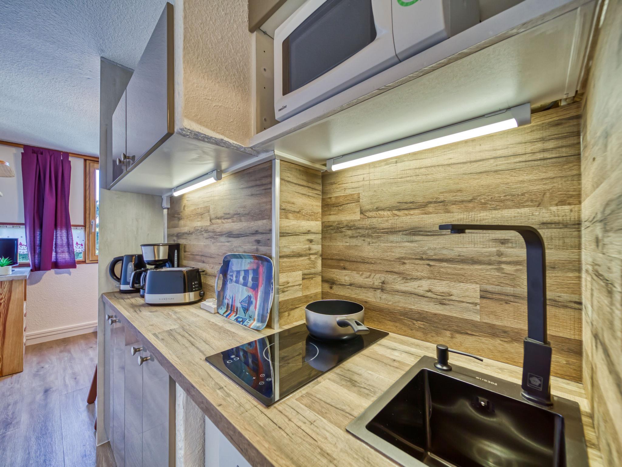 1-room studio 16 m2 on 3rd floor. Renovated in 2023, beautiful furnishings: living/sleeping room with 1 double sofabed (140 cm, length 190 cm), TV (flat screen), hi-fi system. Kitchenette in the entrance (2 induction hot plates, toaster, kettle, microwave, electric coffee machine). Shower/WC. Electric heating. Parquet floors. North facing position. View of the valley. Facilities: hair dryer. Internet (WiFi, extra). Please note: non-smokers only. Smoke alarm. Offer by a private individual according to Art. 155, IV of CGI.