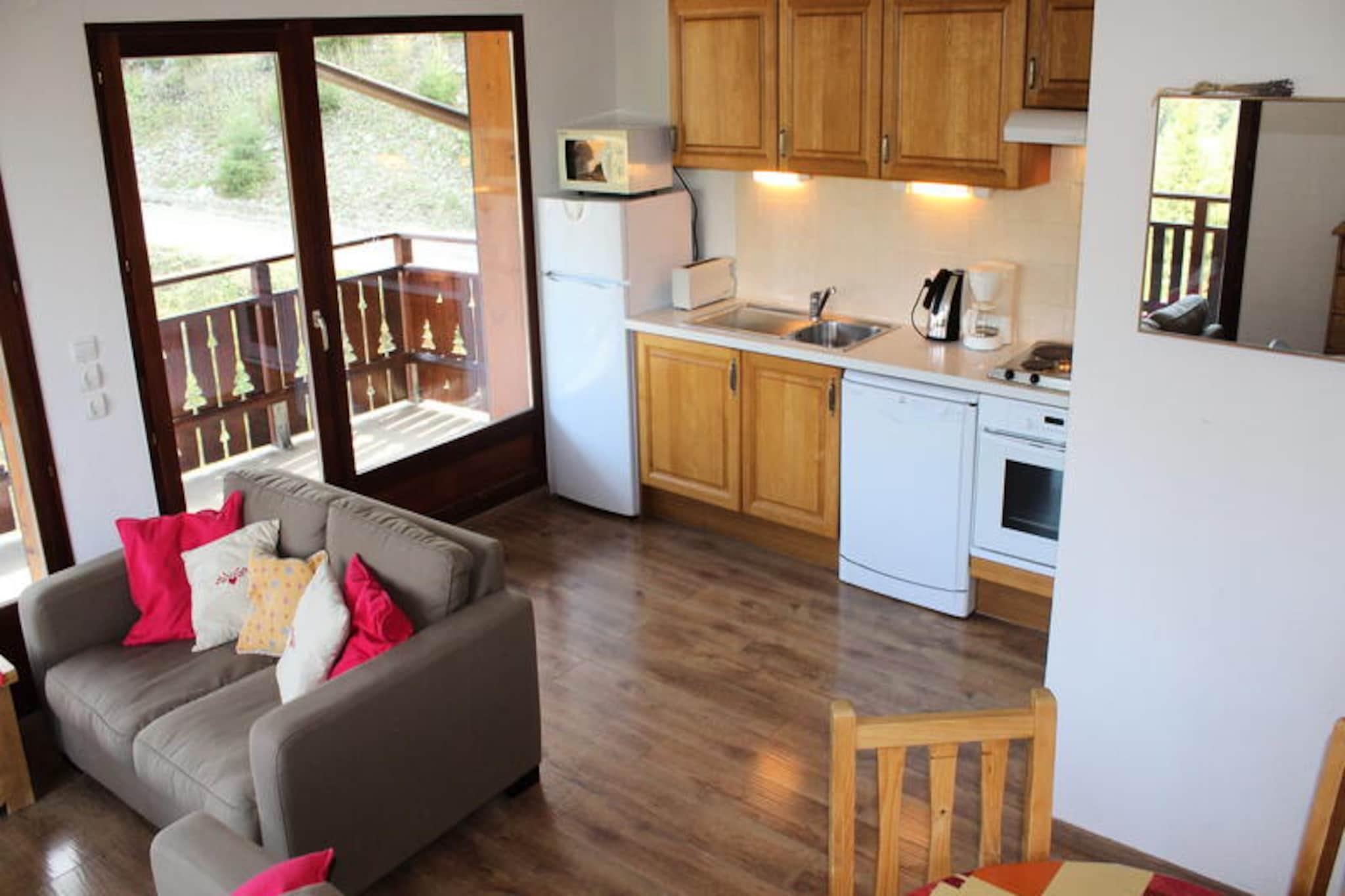 Højt over det charmerende feriested tilbyder denne luksuriøse duplexlejlighed et roligt alpint tilflugtssted med betagende udsigt over bjergene og direkte adgang til ski-in/ski-out. Forestil dig at træde ud på din private dobbeltterrasse, den friske bjergluft fylder dine lunger, mens du kigger ud over de snedækkede tinder. Uanset om du er her for spændingen ved skiløb eller roen i bjergene, lover denne bolig et uforglemmeligt ophold i hjertet af de franske alper. \n\nLejligheden er designet til komfort og bekvemmelighed og har plads til op til syv gæster fordelt på tre soveværelser og en hyggelig hytte. Stueetagen har et fuldt udstyret køkken med opvaskemaskine, ovn, mikrobølgeovn og et stort køleskab, perfekt til at tilberede solide måltider efter en dag på pisterne. Stuen indbyder til afslapning med sin bløde sofa og tv, mens balkonen tilbyder et solrigt sted at slappe af. Ovenpå finder du to rummelige soveværelser og en charmerende hytte, alle omhyggeligt møbleret med rigelig opbevaringsplads. Moderne faciliteter som gratis parkering, et privat skirum og en underjordisk parkeringsplads sikrer en problemfri oplevelse.\n\nBeliggende kun 500 meter fra feriestedets centrum har du nem adgang til butikker, restauranter og den berømte ESF-skiskole. Det omkringliggende område byder på uendelige muligheder for eventyr, fra skiløb og snowboarding om vinteren til vandreture og mountainbiking i de varmere måneder. Efter en dag med udforskning kan du vende tilbage til komforten i din alpine oase, hvor hver eneste detalje er designet til at forbedre dit ophold.\n\nUanset om du søger adrenalinpumpende aktiviteter eller fredelige øjeblikke omgivet af naturen, er denne duplexlejlighed den perfekte base for din bjergferie. Med sin førsteklasses beliggenhed, fantastiske udsigt og luksuriøse faciliteter er det et sted, hvor minder skabes og værdsættes i mange år fremover.