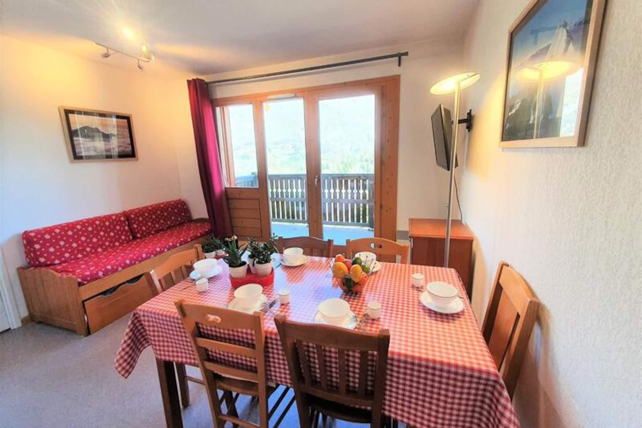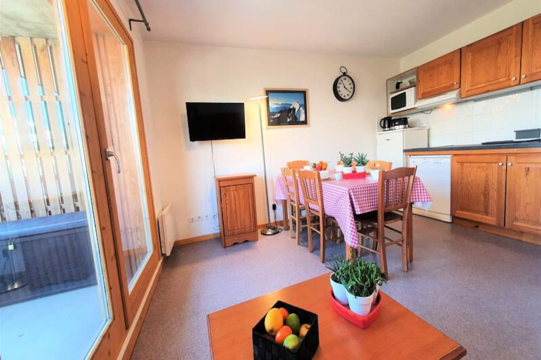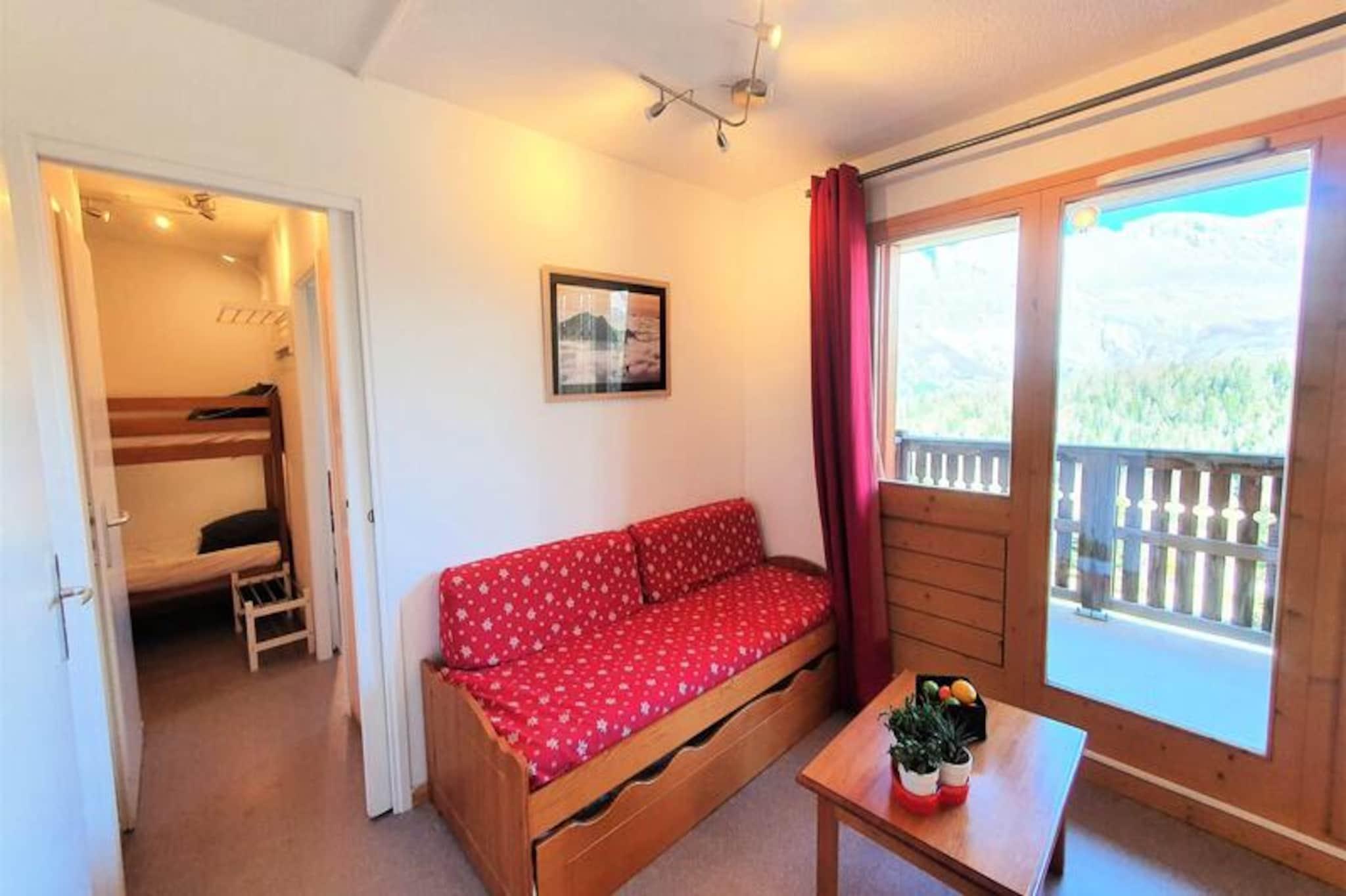I de franske alpers fredfyldte omfavnelse tilbyder residensen 'Les Chaumettes' en charmerende alpin oase med betagende udsigt over den majestætiske Pic de Bure. Beliggende kun 80 meter fra gangbroen, der forbinder til skiløjperne og turistkontoret, er denne ejendom et paradis for både vintersportsentusiaster og naturelskere. Forestil dig at vågne op til solopgangens gyldne nuancer over bjergene, træde ud på din sydøstvendte balkon og indånde den friske alpine luft, inden du begiver dig ud på en dag med eventyr. \n\nDenne hyggelige 2-værelses lejlighed, beliggende på 3. sal, har komfortabel plads til op til seks gæster. Stuen har en udtrækssovesofa, mens en sovealkove med køjesenge og et separat soveværelse med en dobbeltseng giver ekstra sovepladser. Det fuldt udstyrede køkken har moderne bekvemmeligheder såsom køleskab, opvaskemaskine, mikrobølgeovn og både Nespresso- og filterkaffemaskine, hvilket sikrer et praktisk og behageligt ophold. Efter en dag på pisterne kan du slappe af i opholdsstuen med et tv eller nyde den fantastiske udsigt over bjergene fra din private balkon.\n\nResidensen tilbyder gratis parkering omkring ejendommen, og der kan lejes overdækkede parkeringspladser. Skiløjperne ligger kun 100 meter væk, hvilket giver direkte adgang via den nærliggende gangbro. For ekstra bekvemmelighed er der mulighed for at leje linned og få rengøring ved opholdet, og kæledyr er velkomne mod et mindre gebyr.\n\nUanset om du er her for at grave dig gennem uberørt sne, udforske de naturskønne stier eller blot slappe af midt i de franske alpers skønhed, lover 'Les Chaumettes' et uforglemmeligt alpint tilflugtssted. Med sin førsteklasses beliggenhed og indbydende faciliteter er dette den perfekte base for dit næste bjergeventyr.