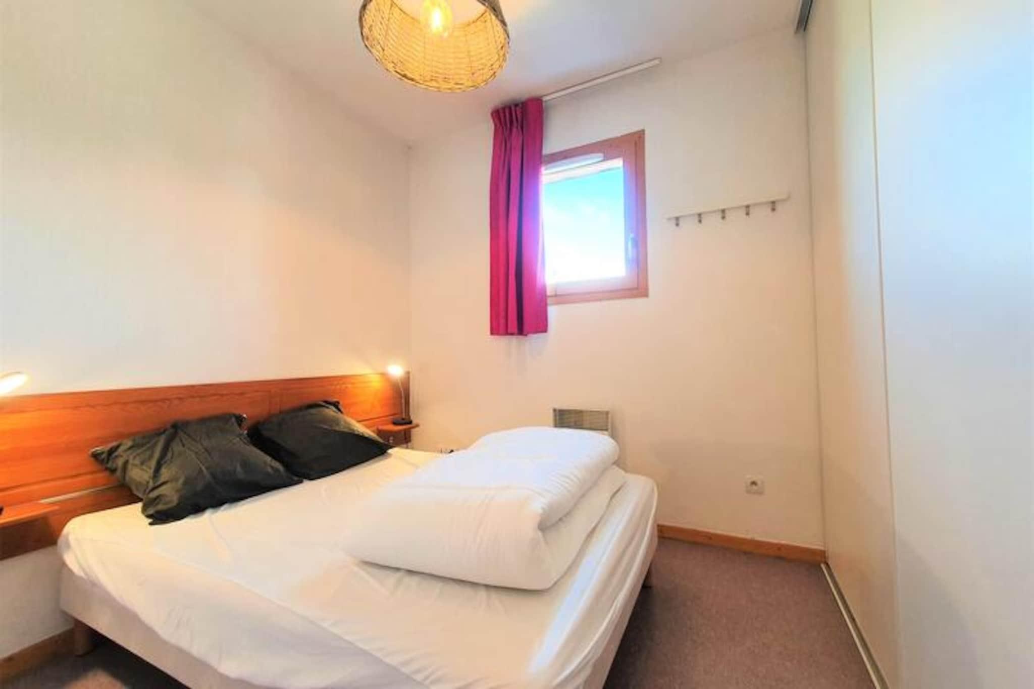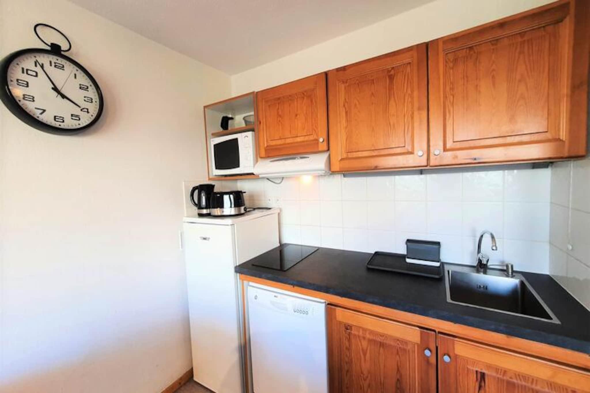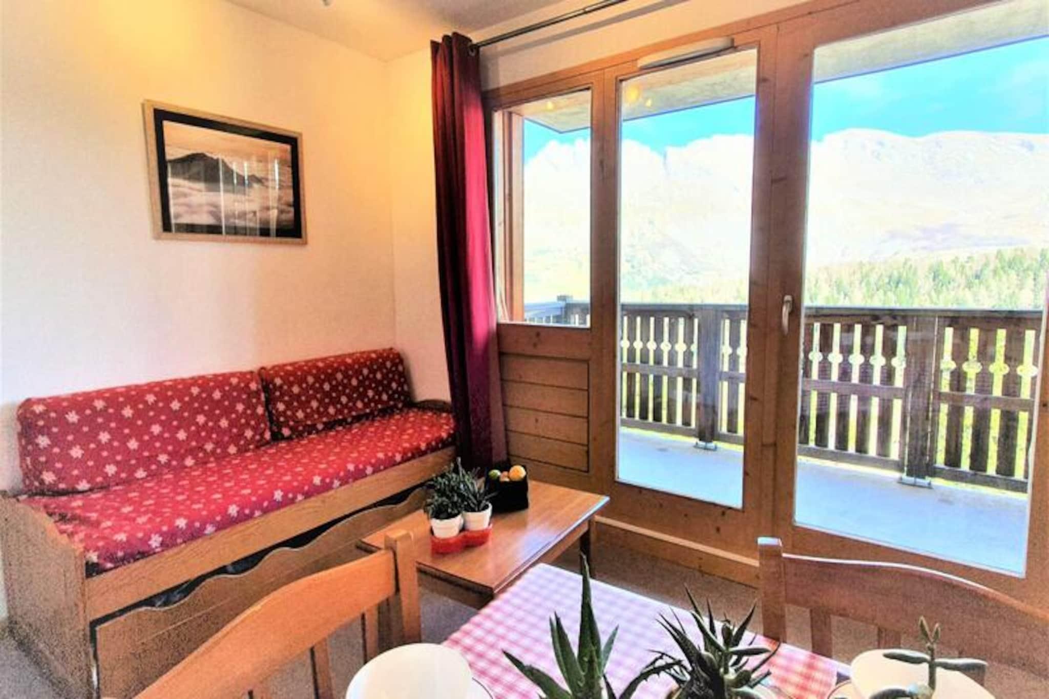 I de franske alpers fredfyldte omfavnelse tilbyder residensen 'Les Chaumettes' en charmerende alpin oase med betagende udsigt over den majestætiske Pic de Bure. Beliggende kun 80 meter fra gangbroen, der forbinder til skiløjperne og turistkontoret, er denne ejendom et paradis for både vintersportsentusiaster og naturelskere. Forestil dig at vågne op til solopgangens gyldne nuancer over bjergene, træde ud på din sydøstvendte balkon og indånde den friske alpine luft, inden du begiver dig ud på en dag med eventyr. \n\nDenne hyggelige 2-værelses lejlighed, beliggende på 3. sal, har komfortabel plads til op til seks gæster. Stuen har en udtrækssovesofa, mens en sovealkove med køjesenge og et separat soveværelse med en dobbeltseng giver ekstra sovepladser. Det fuldt udstyrede køkken har moderne bekvemmeligheder såsom køleskab, opvaskemaskine, mikrobølgeovn og både Nespresso- og filterkaffemaskine, hvilket sikrer et praktisk og behageligt ophold. Efter en dag på pisterne kan du slappe af i opholdsstuen med et tv eller nyde den fantastiske udsigt over bjergene fra din private balkon.\n\nResidensen tilbyder gratis parkering omkring ejendommen, og der kan lejes overdækkede parkeringspladser. Skiløjperne ligger kun 100 meter væk, hvilket giver direkte adgang via den nærliggende gangbro. For ekstra bekvemmelighed er der mulighed for at leje linned og få rengøring ved opholdet, og kæledyr er velkomne mod et mindre gebyr.\n\nUanset om du er her for at grave dig gennem uberørt sne, udforske de naturskønne stier eller blot slappe af midt i de franske alpers skønhed, lover 'Les Chaumettes' et uforglemmeligt alpint tilflugtssted. Med sin førsteklasses beliggenhed og indbydende faciliteter er dette den perfekte base for dit næste bjergeventyr.