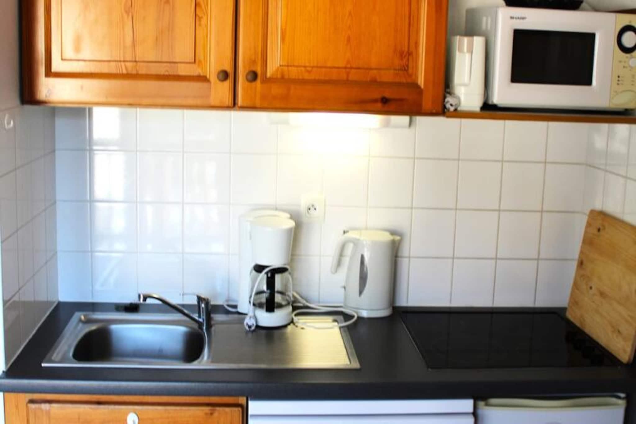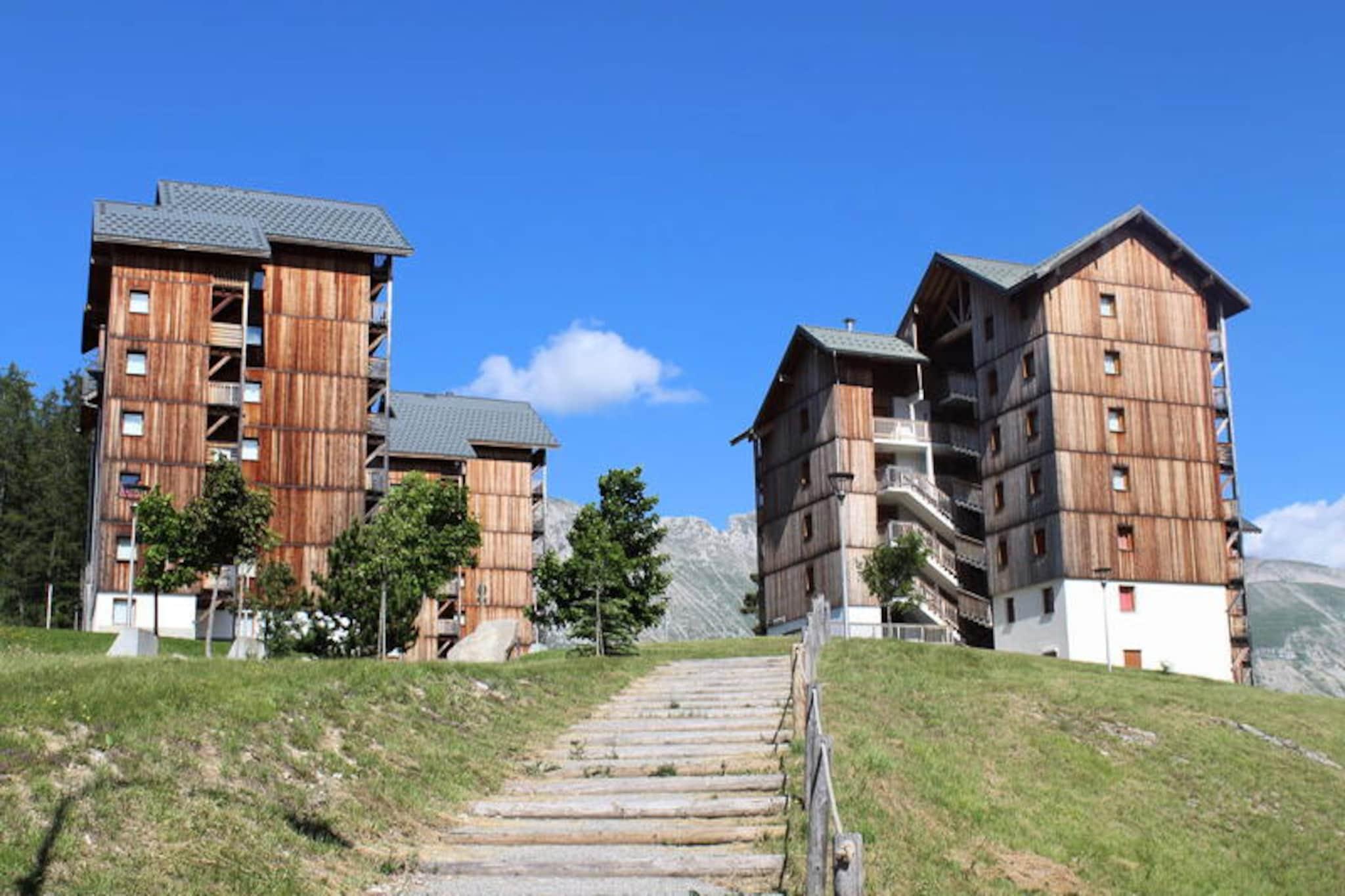 Med den majestætiske Pic de Bure som baggrund tilbyder denne charmerende alpine lejlighed et hyggeligt tilflugtssted for op til fire gæster. Beliggende på 6. sal i en chalet-stil bolig, tilbyder den et varmt og indbydende sted at slappe af efter en dag med bjergeventyr. Den sydvendte balkon inviterer dig til at sole dig, mens du nyder den betagende udsigt over de omkringliggende tinder, hvilket skaber en rolig atmosfære, der er perfekt til afslapning. Kun 200 meter fra pisterne, butikkerne og de vigtigste tjenester, er dette den ideelle base for din alpine ferie. \n\nIndvendigt er lejligheden omhyggeligt designet til komfort og bekvemmelighed. Stuen har en sovesofa og et veludstyret tekøkken med moderne apparater, herunder køleskab, komfur, opvaskemaskine, mikrobølgeovn og mere. En alkove med køjesenge tilbyder ekstra soveplads, hvilket gør den til et godt valg for familier eller små grupper. Badeværelset og det separate toilet sikrer privatliv og praktisk anvendelighed, mens dyner og valgfri linnedudlejning øger din komfort. \n\nSelve boligen kan prale af fremragende faciliteter, herunder private skibokse og gratis udendørs parkering, med overdækket parkering tilgængelig efter reservation. Kæledyr er velkomne mod et mindre gebyr, og slutrengøring kan arrangeres for din bekvemmelighed. Uanset om du er her for at køre på pisterne, udforske stierne eller blot nyde den alpine charme, tilbyder denne lejlighed alt, hvad du behøver for et mindeværdigt ophold. \n\nMed sin uovertrufne beliggenhed nær pisterne og sin fantastiske udsigt over Pic de Bure er denne lejlighed et paradis for både naturelskere og eventyrlystne. Book dit ophold i dag, og oplev magien i de franske alper i enhver sæson.