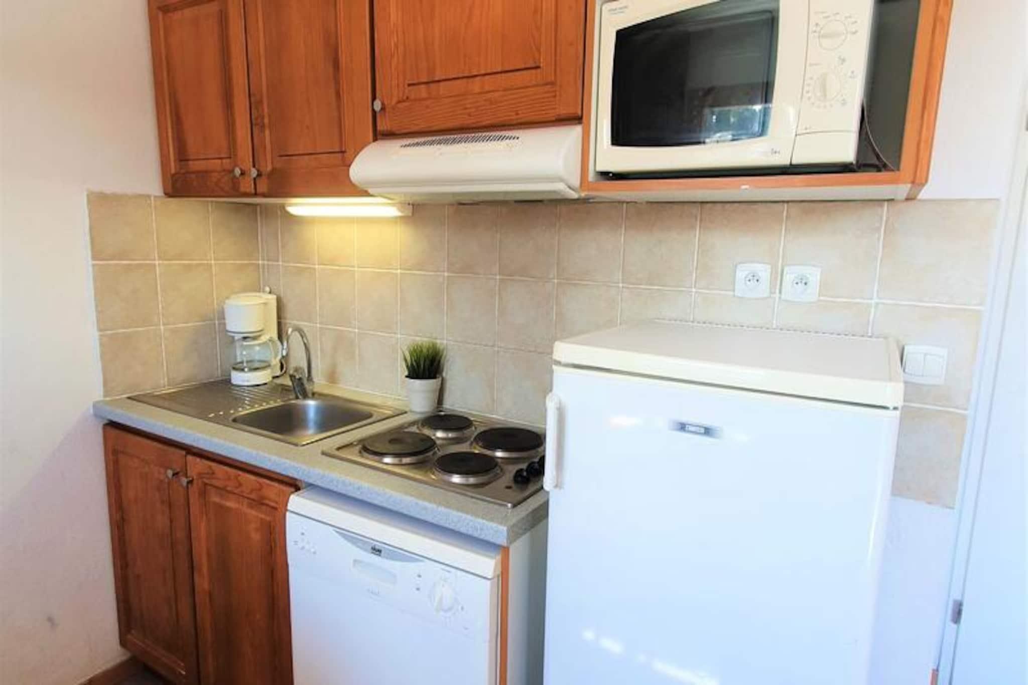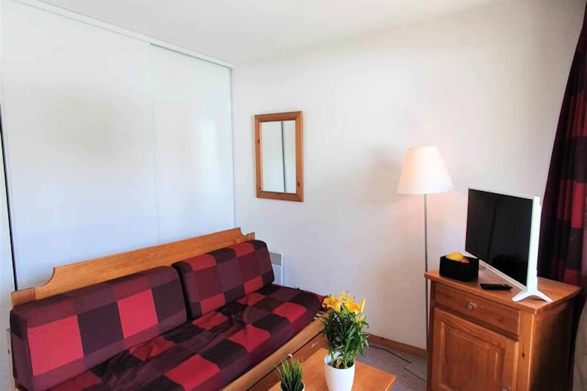 Højt over Superdévoluys fredfyldte landskaber tilbyder denne charmerende lejlighed et hyggeligt tilflugtssted med en betagende udsigt over den majestætiske Pic de Bure. Forestil dig at vågne op til solens gyldne nuancer, der reflekteres i de omkringliggende tinder, træde ud på din sydvendte balkon for at indånde den friske alpeluft og forberede dig på en dag med eventyr i hjertet af de franske alper. Uanset om du besøger stedet for vintersport eller sommervandreture, lover denne bolig et uforglemmeligt ophold. \n\nLejligheden er designet til op til seks gæster og kan prale af en gennemtænkt planløsning med en komfortabel stue med en udtrækssovesofa, et privat soveværelse med en blød dobbeltseng og en hyggelig alkove med køjesenge. Det veludstyrede tekøkken inkluderer opvaskemaskine, mikrobølgeovn, filterkaffemaskine, brødrister og elkedel, hvilket sikrer alle hjemmets bekvemmeligheder. Moderne bekvemmeligheder såsom et tv og et skiskab på samme etage bidrager til bekvemmeligheden, mens elevatoren gør adgangen ubesværet. \n\nBoligen ligger kun 100 meter fra pisterne og tilbyder direkte adgang via en gangbro, hvilket gør den ideel for skientusiaster. Gratis parkering omgiver ejendommen, og der kan lejes overdækket parkering. I nærheden finder du vigtige faciliteter som turistkontoret, der sikrer et problemfrit og behageligt ophold. Kæledyr er velkomne, og yderligere tjenester som leje af linned og slutrengøring er tilgængelige for at forbedre din oplevelse. \n\nUanset om du søger spændende nedkørsler, naturskønne stier eller blot en rolig flugt i bjergene, er denne lejlighed din port til Superdévoluys vidundere. Lad skønheden i Pic de Bure og charmen i de franske alper skabe minder, der vil vare livet ud.