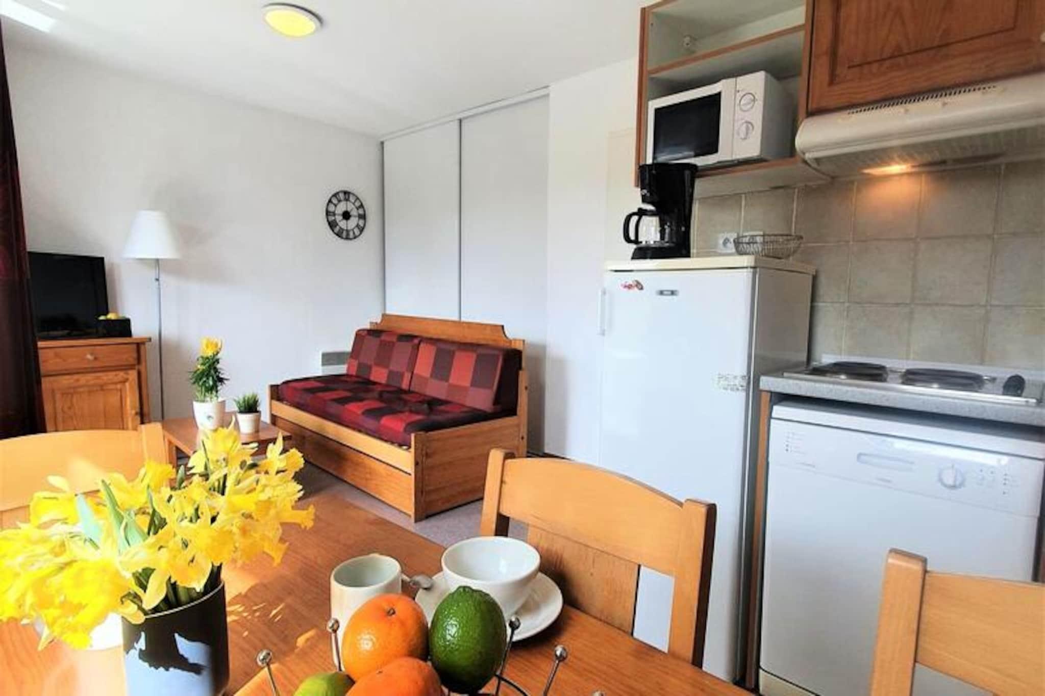 Højt over de fredfyldte dale i Hautes-Alpes inviterer denne charmerende lejlighed dig til at opleve det perfekte alpine tilflugtssted. Med en betagende udsigt over den majestætiske Pic de Bure og direkte adgang til pisterne kun 100 meter væk, er hvert øjeblik her fyldt med magien ved bjerglivet. Uanset om du ser solnedgangen fra din sydvendte balkon eller gør dig klar til en dag på ski, tilbyder denne bolig en problemfri blanding af komfort og eventyr. Dens beliggenhed, forbundet med en bekvem gangbro til turistkontoret, sikrer, at du altid er tæt på hjertet af begivenhederne. \n\nLejligheden er designet til op til seks gæster og har en hyggelig stue med en dobbelt udtræksseng, et roligt soveværelse med en blød dobbeltseng (160x200 cm) og en køjeseng, der er perfekt til børn eller venner. Det fuldt udstyrede tekøkken inkluderer opvaskemaskine, vaskemaskine, køleskab, mikrobølgeovn og endda en raclettegrill til autentiske franske spiseoplevelser. Moderne bekvemmeligheder som et tv og dyner sikrer, at dit ophold er lige så behageligt, som det er mindeværdigt. For ekstra bekvemmelighed er der gratis parkering omkring boligen, og der kan lejes overdækket parkering. \n\nUd over pisterne byder regionen på uendelige muligheder for udforskning. Fra naturskønne vandrestier til charmerende lokale markeder er Hautes-Alpes et paradis for både naturelskere og eventyrere. Kæledyr er velkomne, så dine pelsede venner kan være med på det sjove. Der tilbydes udlejning af sengelinned og slutrengøring for at gøre din ferie stressfri. \n\nUanset om du er her for at stå på ski, vandre eller blot slappe af midt i fantastiske alpine udsigter, er denne lejlighed din port til uforglemmelige minder i de franske alper.