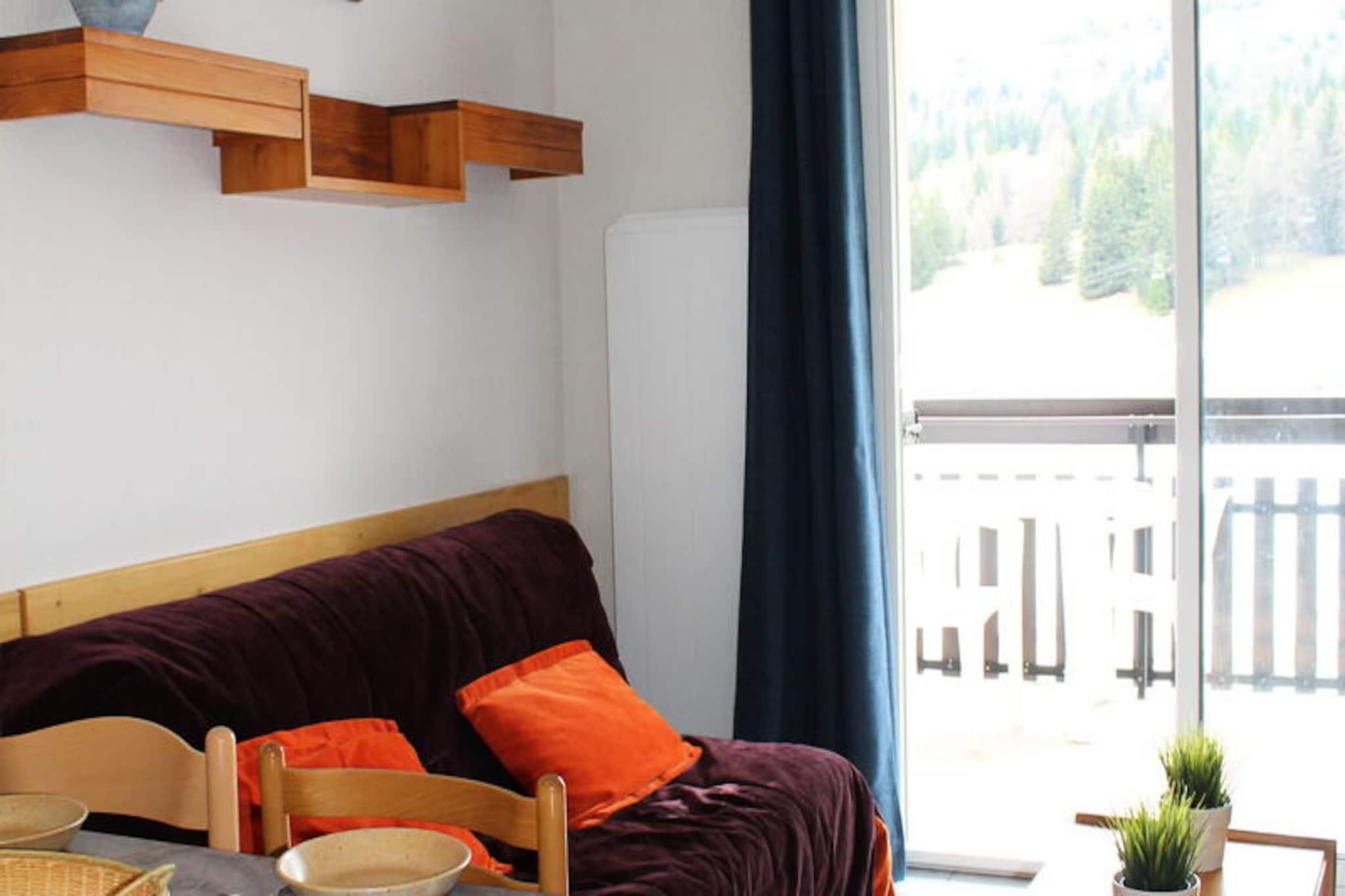 Højt over den fredfyldte alpine dal tilbyder denne indbydende lejlighed i Les Issarts Residence en plads på første række til de betagende pister i Superdévoluy og den majestætiske Pic de Bure. Forestil dig at træde ud på din sydvendte balkon hver morgen, mødt af panoramaudsigt over de snedækkede tinder og det pulserende skiområde, mens den friske bjergluft forfrisker dine sanser. Uanset om du er her for vintersport eller sommervandreture, lover denne ejendom en uforglemmelig flugt ind i naturens storhed. \n\nLejligheden er designet til op til fire gæster og har en hyggelig stue med sovesofa og et separat soveværelse med køjesenge, hvilket sikrer komfort for familier eller små grupper. Det fuldt udstyrede køkken inkluderer moderne apparater såsom opvaskemaskine, vaskemaskine, ovn og mikrobølgeovn, hvilket gør madlavning ubesværet efter en dag med eventyr. Et rummeligt badeværelse med badekar og toilet bidrager til bekvemmeligheden, mens tv'et og det varme interiør skaber et indbydende rum at slappe af. For ekstra bekvemmelighed kan sengelinned lejes, og kæledyr er velkomne mod et mindre gebyr. \n\nBeliggende ved foden af ??pisterne tilbyder denne lejlighed uovertruffen adgang til Superdévoluys skiområde, med butikker og tjenester, der er bekvemt forbundet internt med Bois d'Aurouze. Overdækket parkering er tilgængelig efter reservation, og det omkringliggende område byder på rigelig udendørs parkeringsmuligheder. Om sommeren forvandles regionen til et paradis for vandrere og naturelskere med stier, der fører til ærefrygtindgydende udsigter og skjulte alpine skatte. \n\nUanset om du er tiltrukket af spændingen ved skiløb, roen i bjerglandskaber eller charmen ved et hyggeligt alpint tilflugtssted, er denne lejlighed din port til det bedste af Superdévoluy. Lad skønheden i Pic de Bure og pisterne inspirere dit næste eventyr.