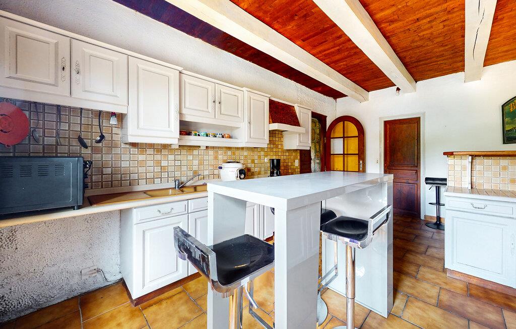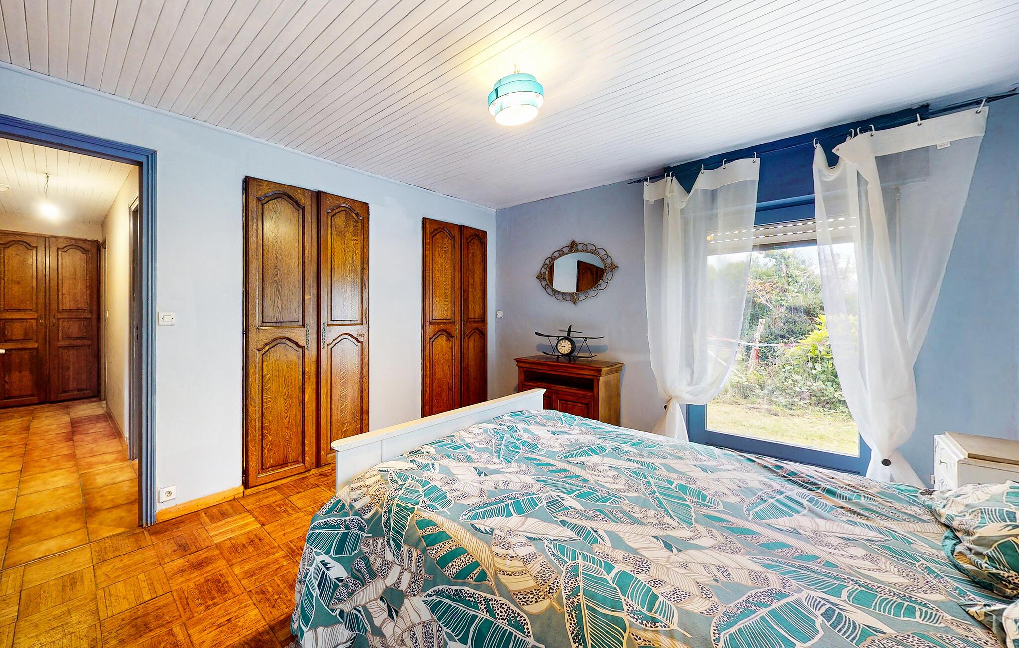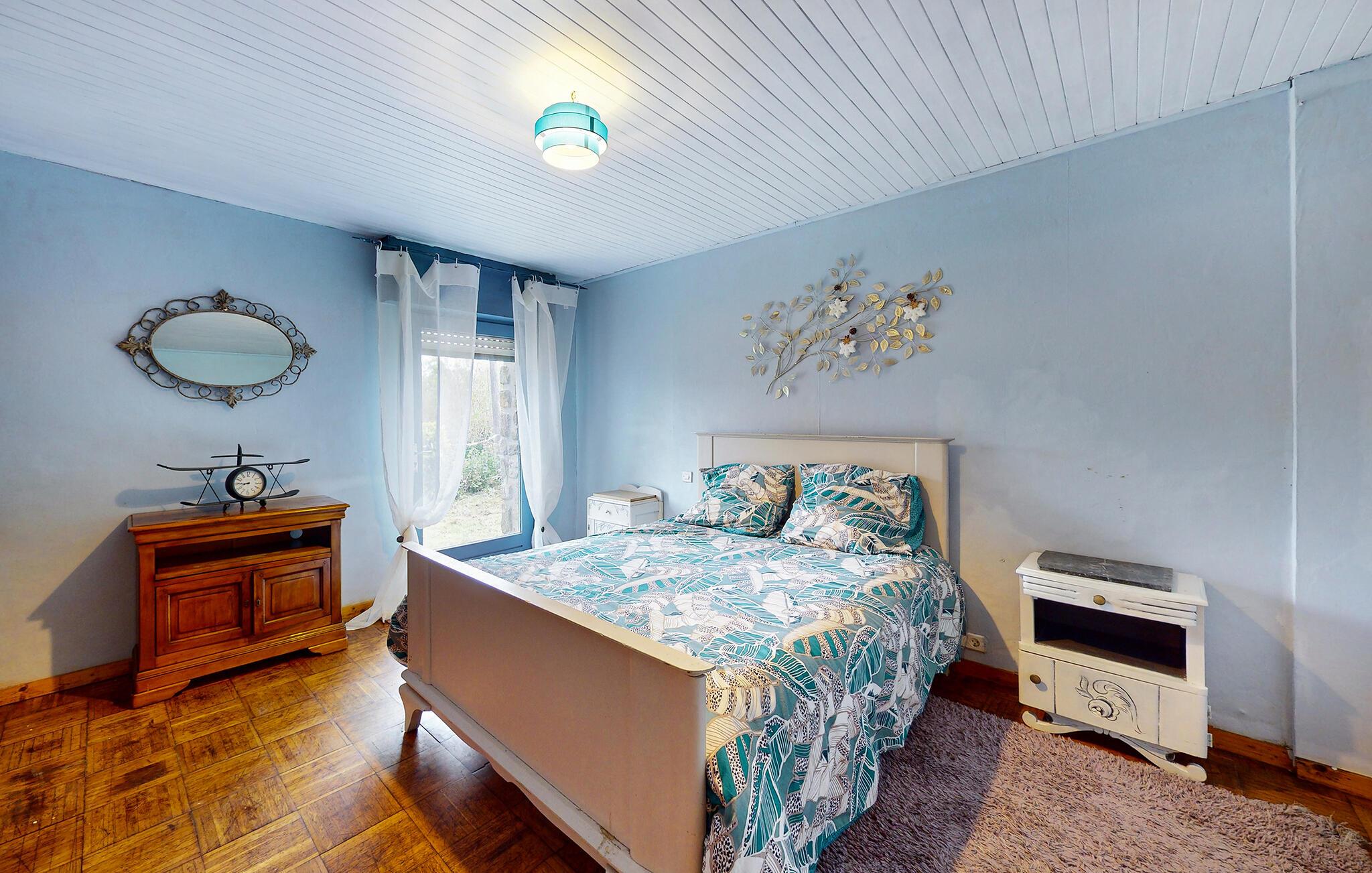 Oplev en uforglemmelig ferie i dette bretonske stenhus i Le Faouët. Interiøret udstråler en rustik hygge takket være den store brændeovn, fritlagte stenvægge og det åbne galleri soveværelse. Træstemningen med synlige bjælker og varme toner skaber en hyggelig atmosfære, der lægger op til at slappe af.